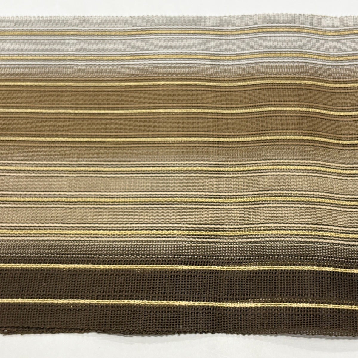 【美品】 袋帯 秀品 やまと 縞 金銀糸 焦茶色 全通 正絹