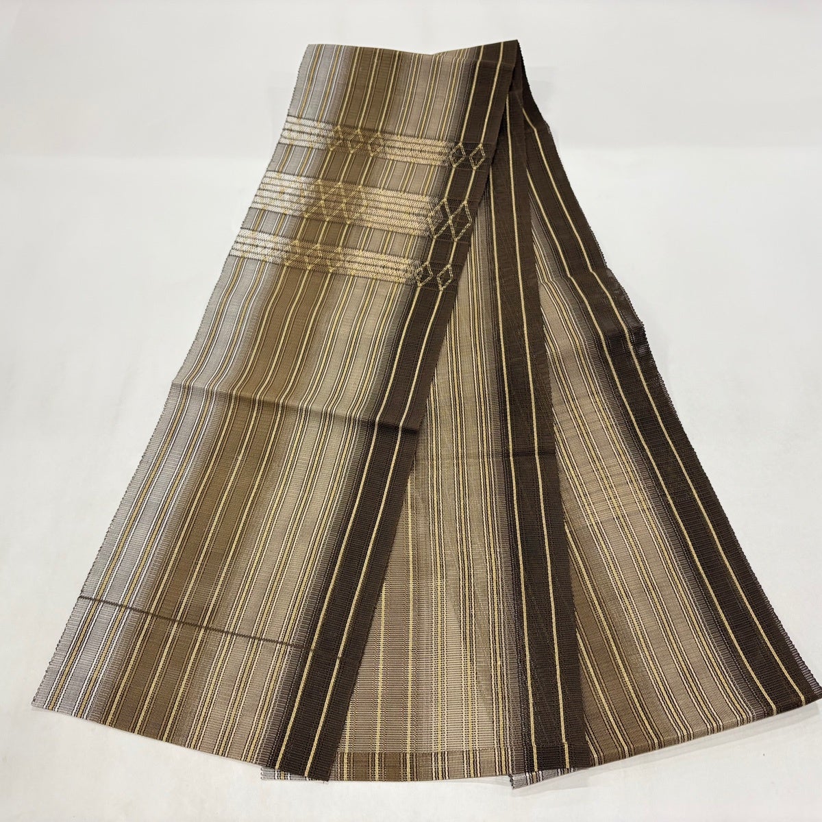 半幅帯 秀品 証紙あり 本場筑前博多織 縞 花菱 焦茶色 正絹