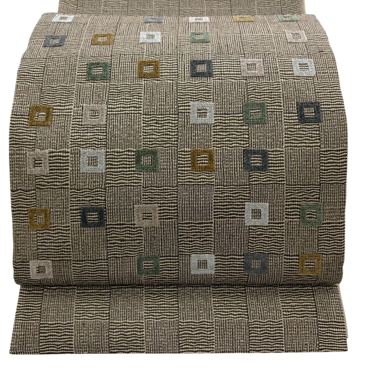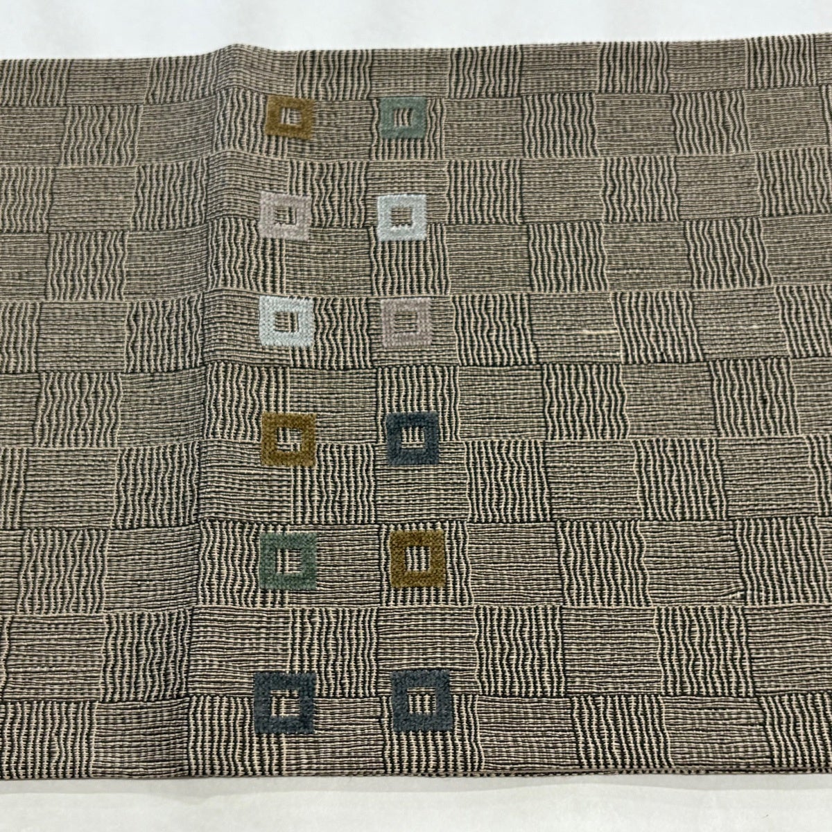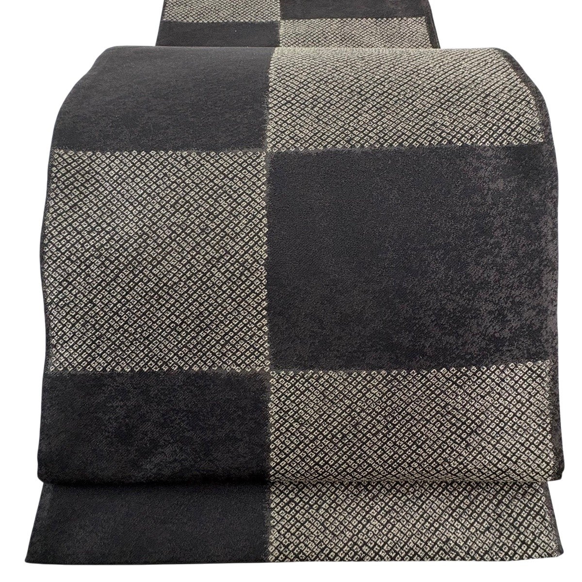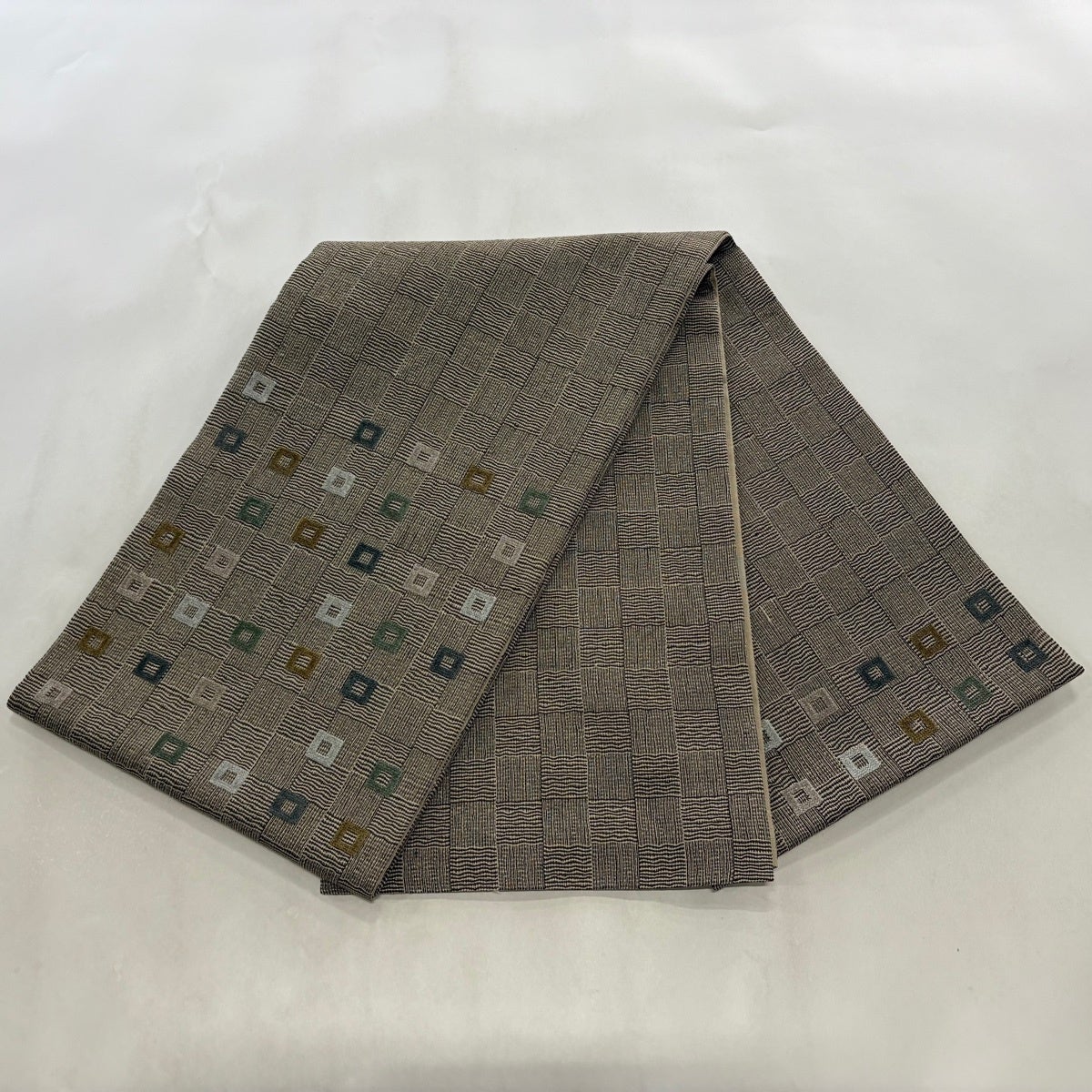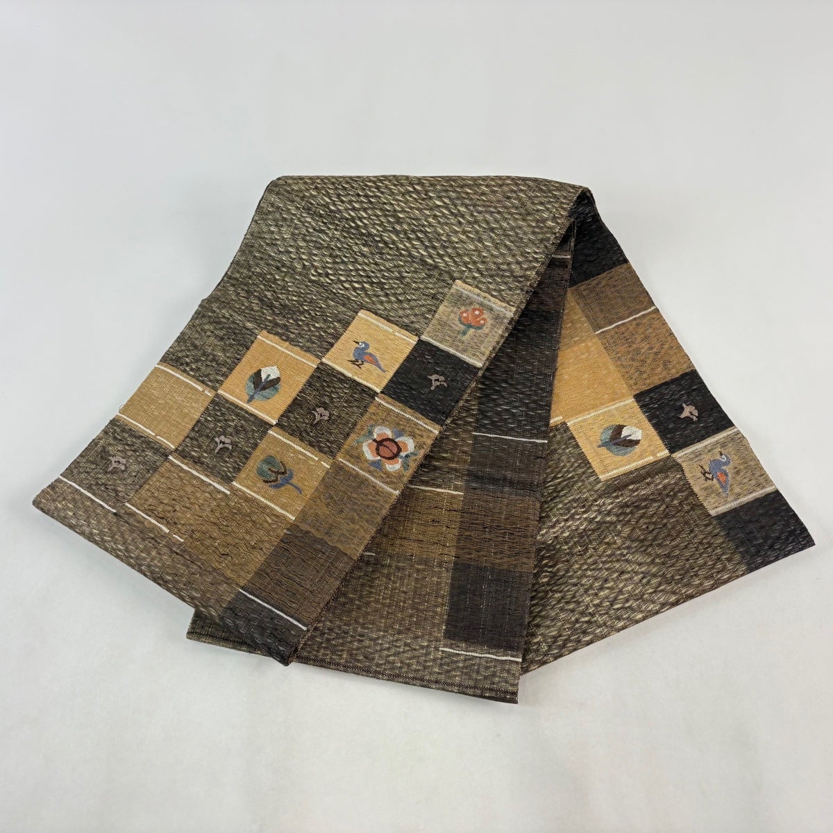 【美品】 袋帯 名品 四角 変わり市松 焦茶色 お太鼓柄 正絹
