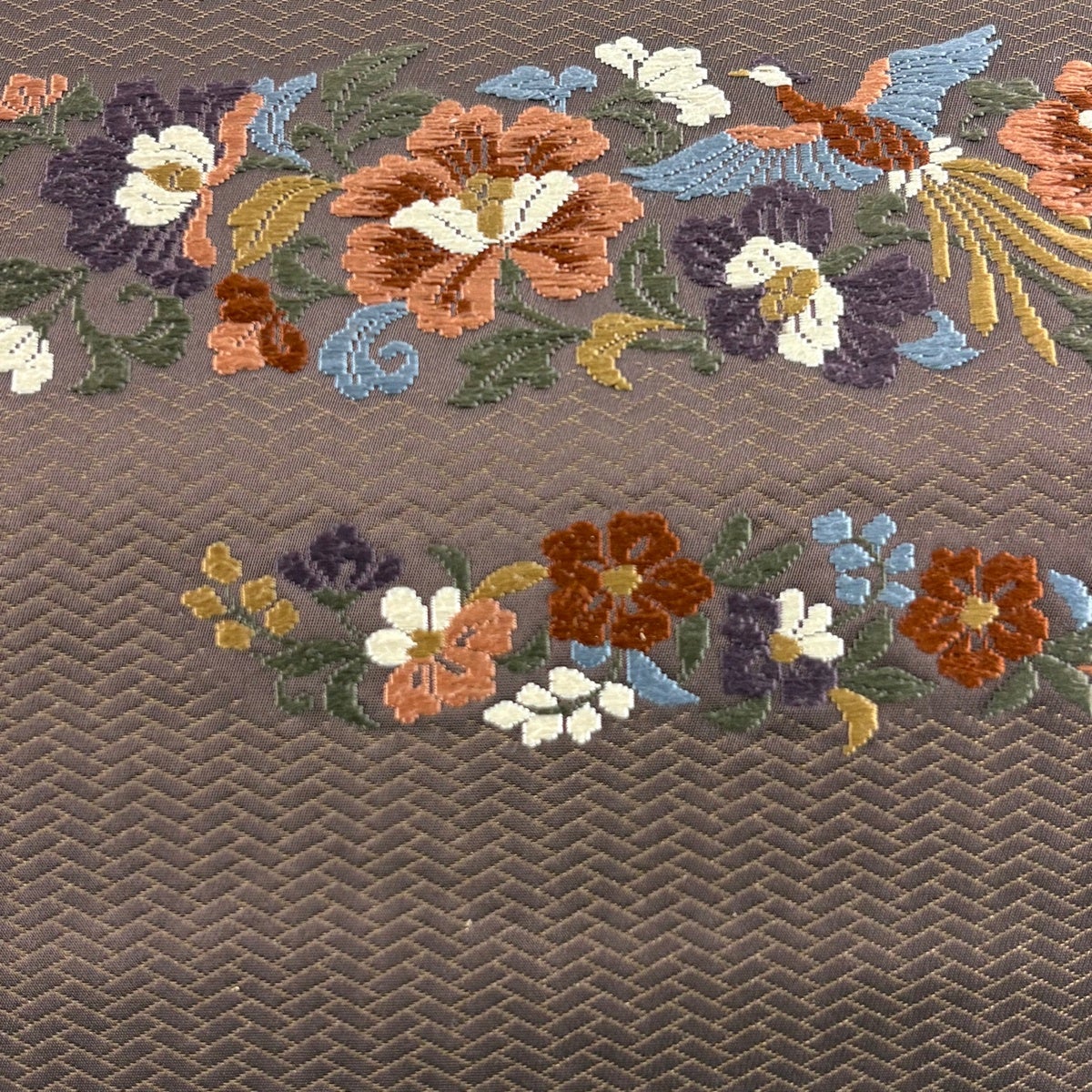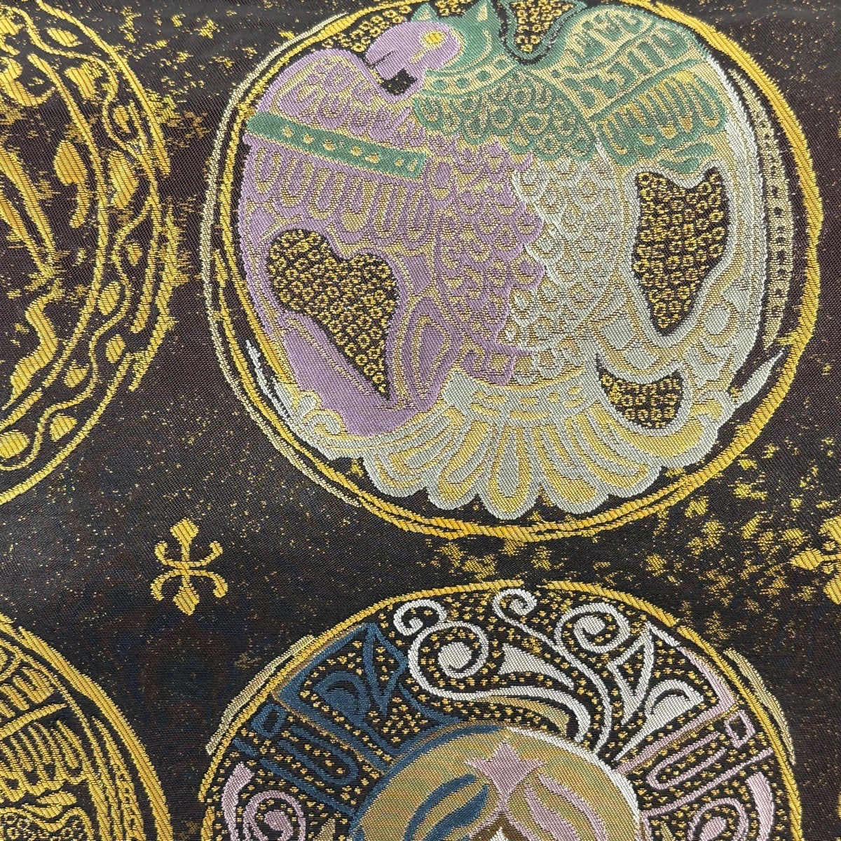 袋帯 秀品 向かい鳥 菱 金銀糸 刺繍 焦茶色 六通 正絹