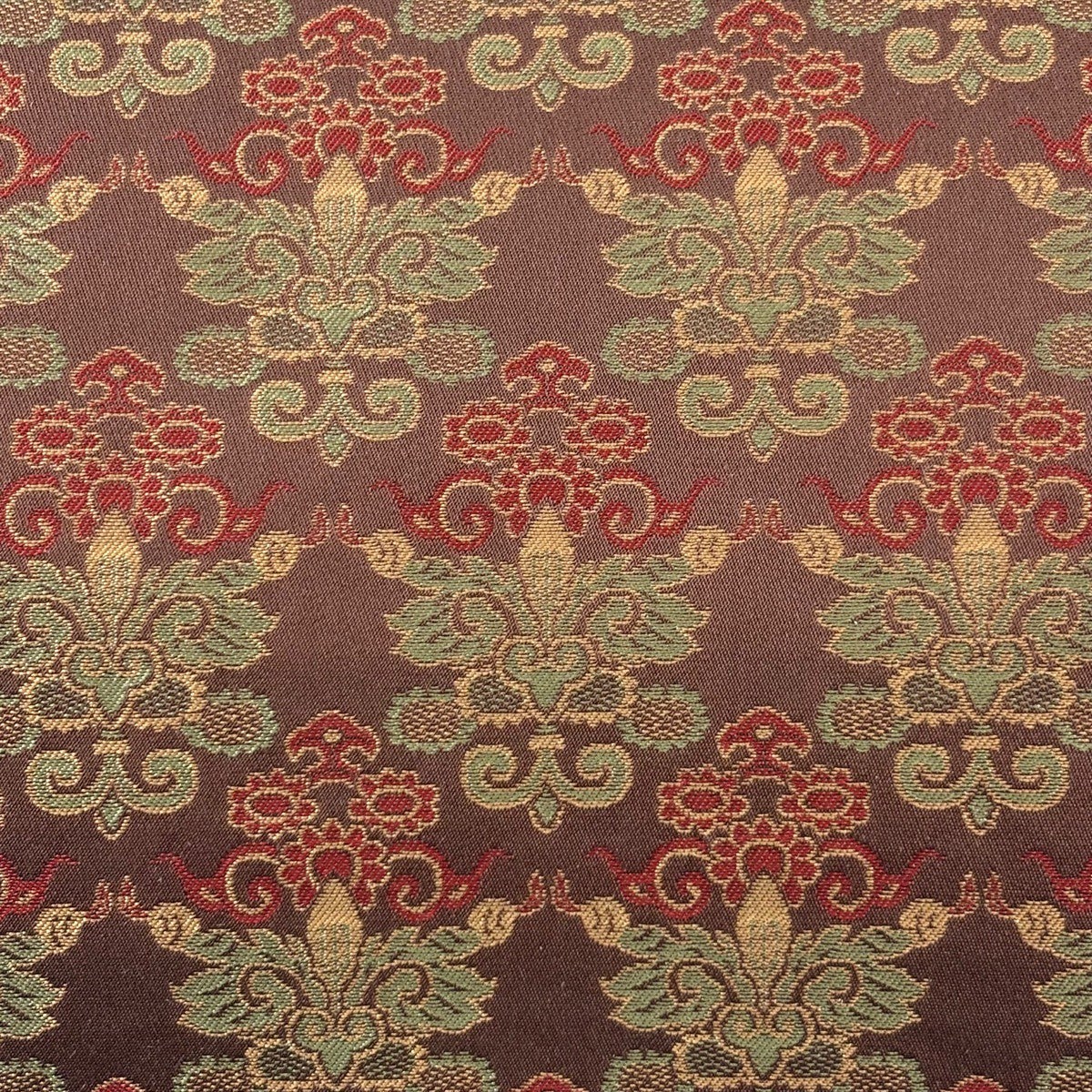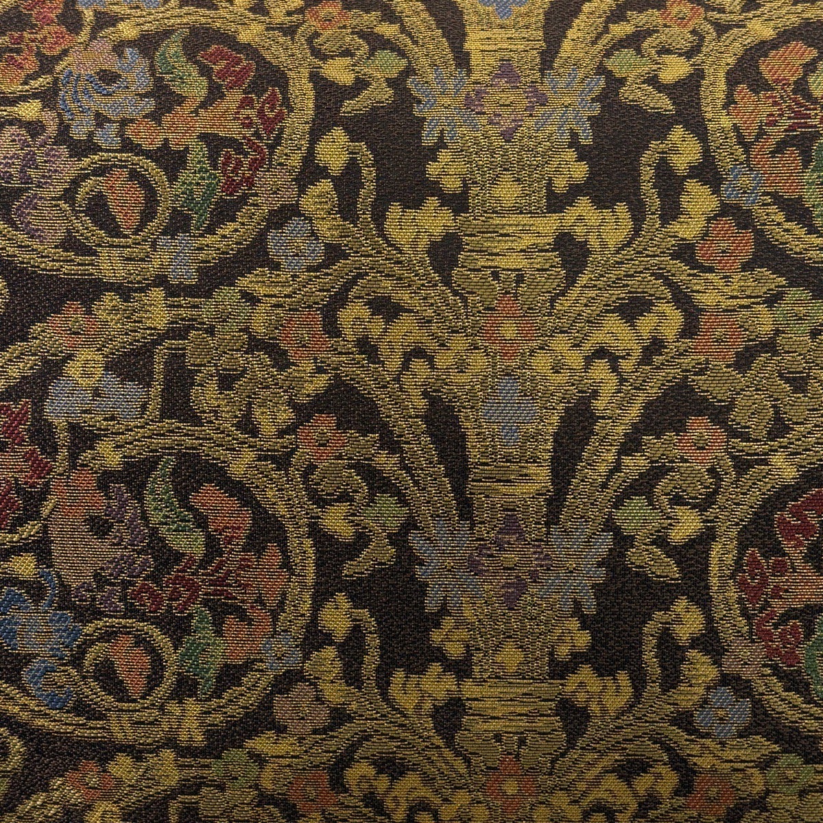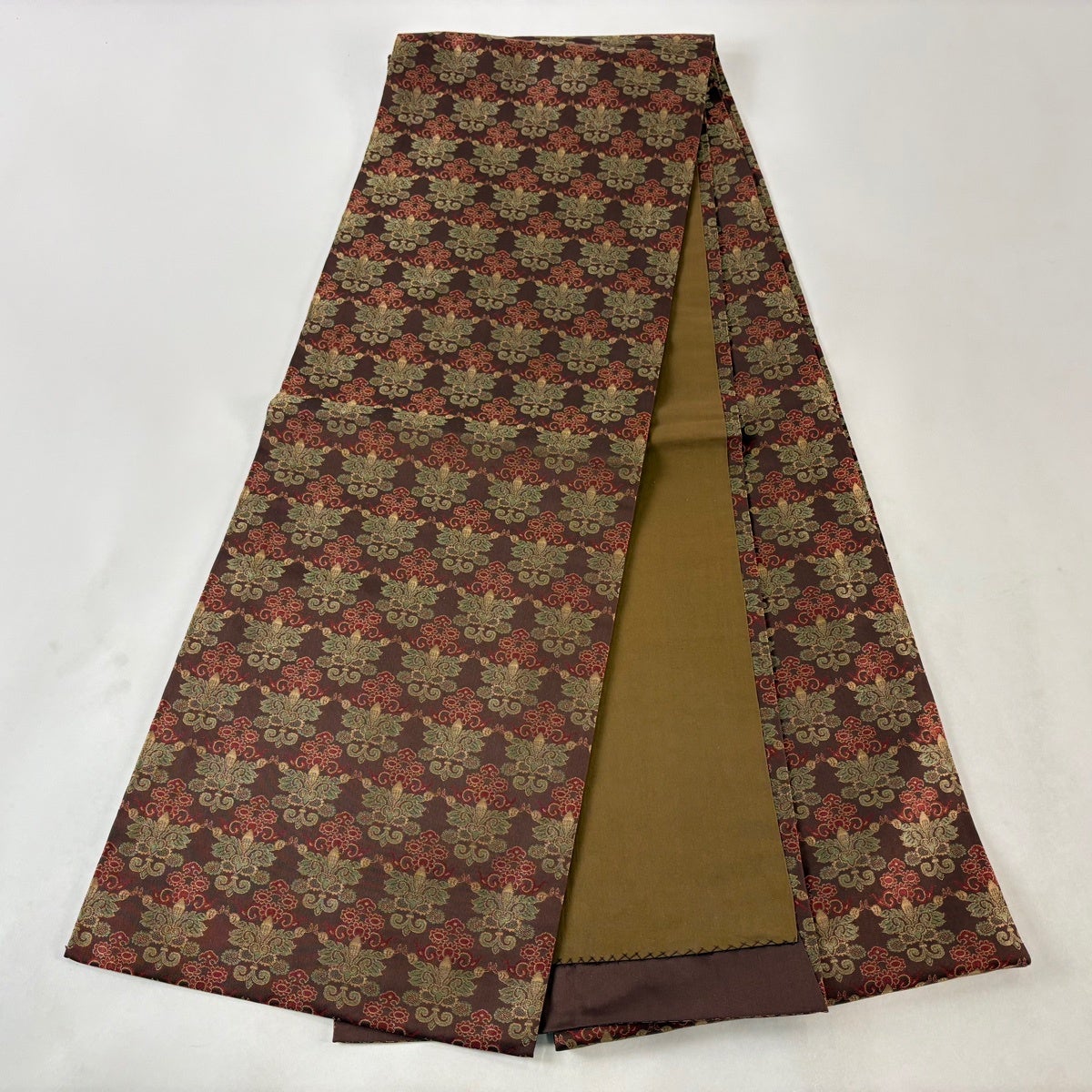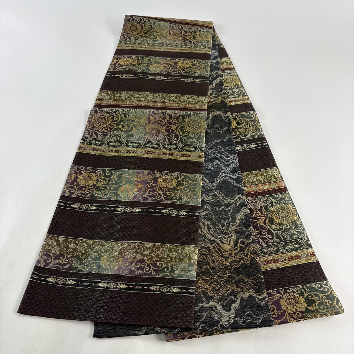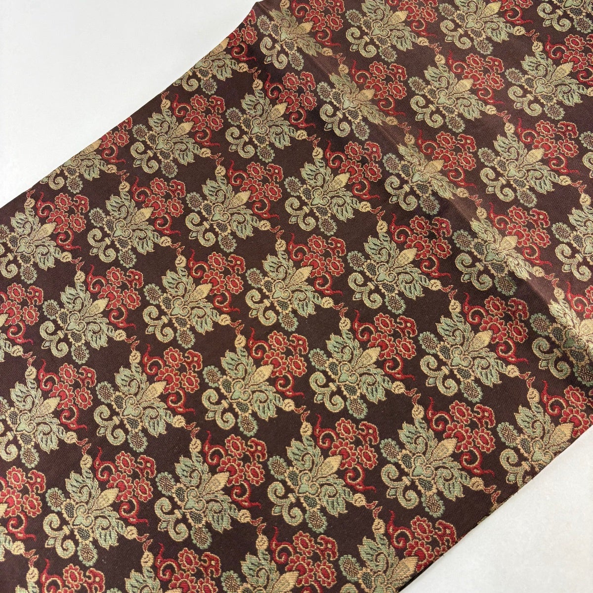 【美品】 袋帯 名品 華文 花唐草 金糸 焦茶色 全通 正絹
