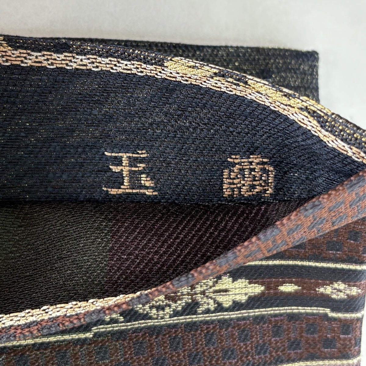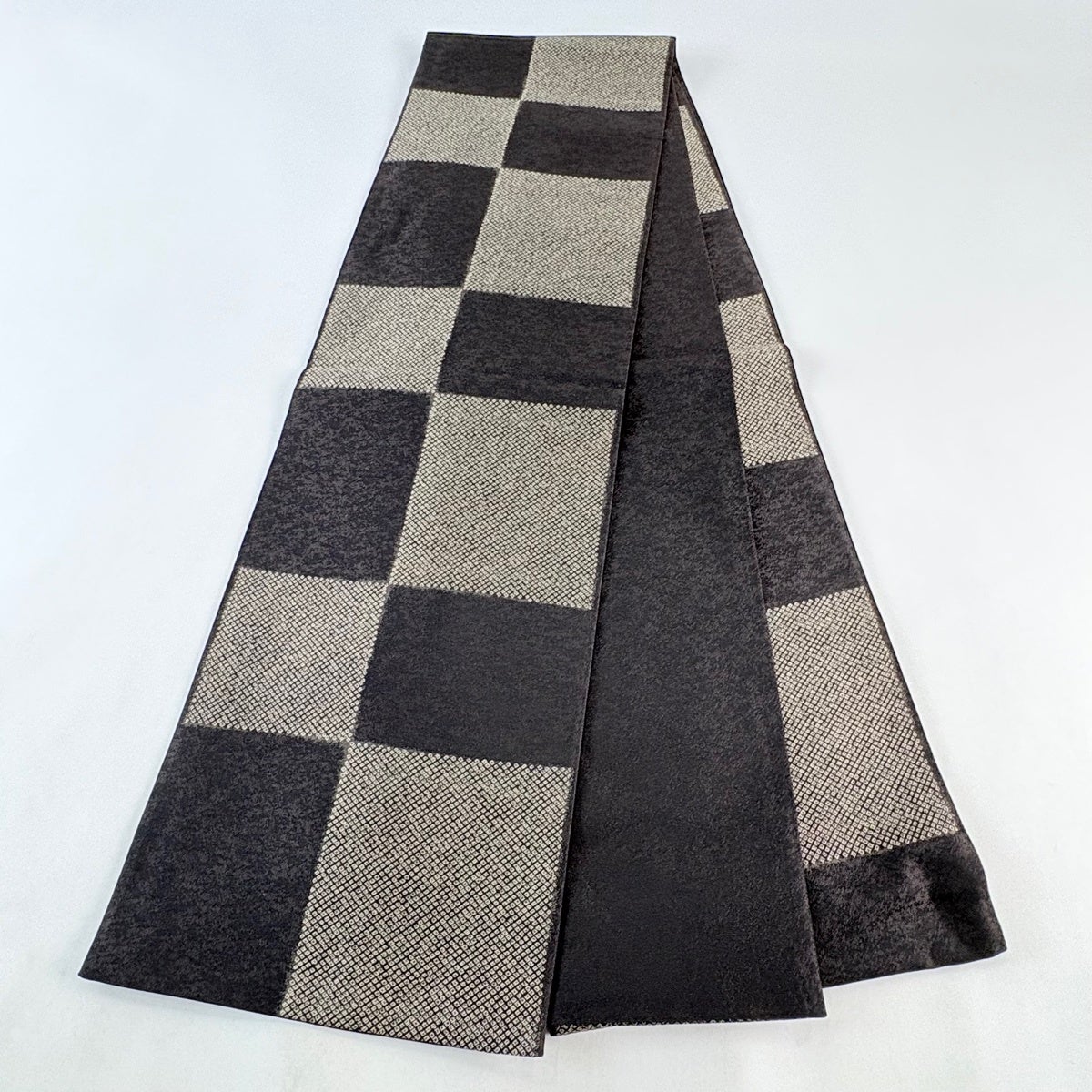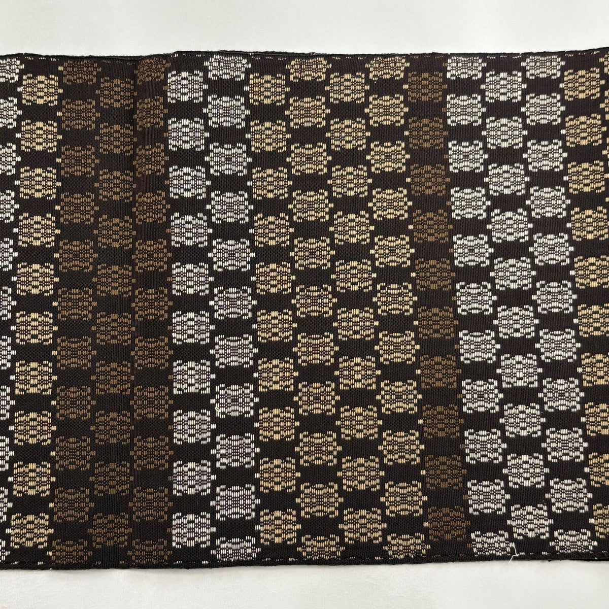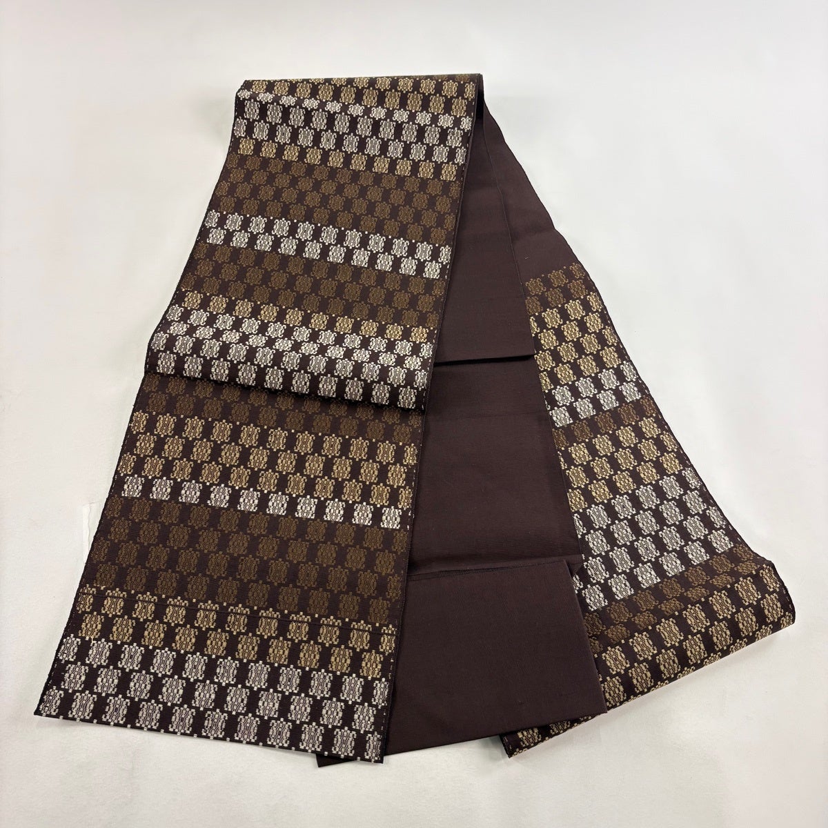 【美品】 袋帯 名品 疋田 変わり市松 焦茶色 全通 正絹