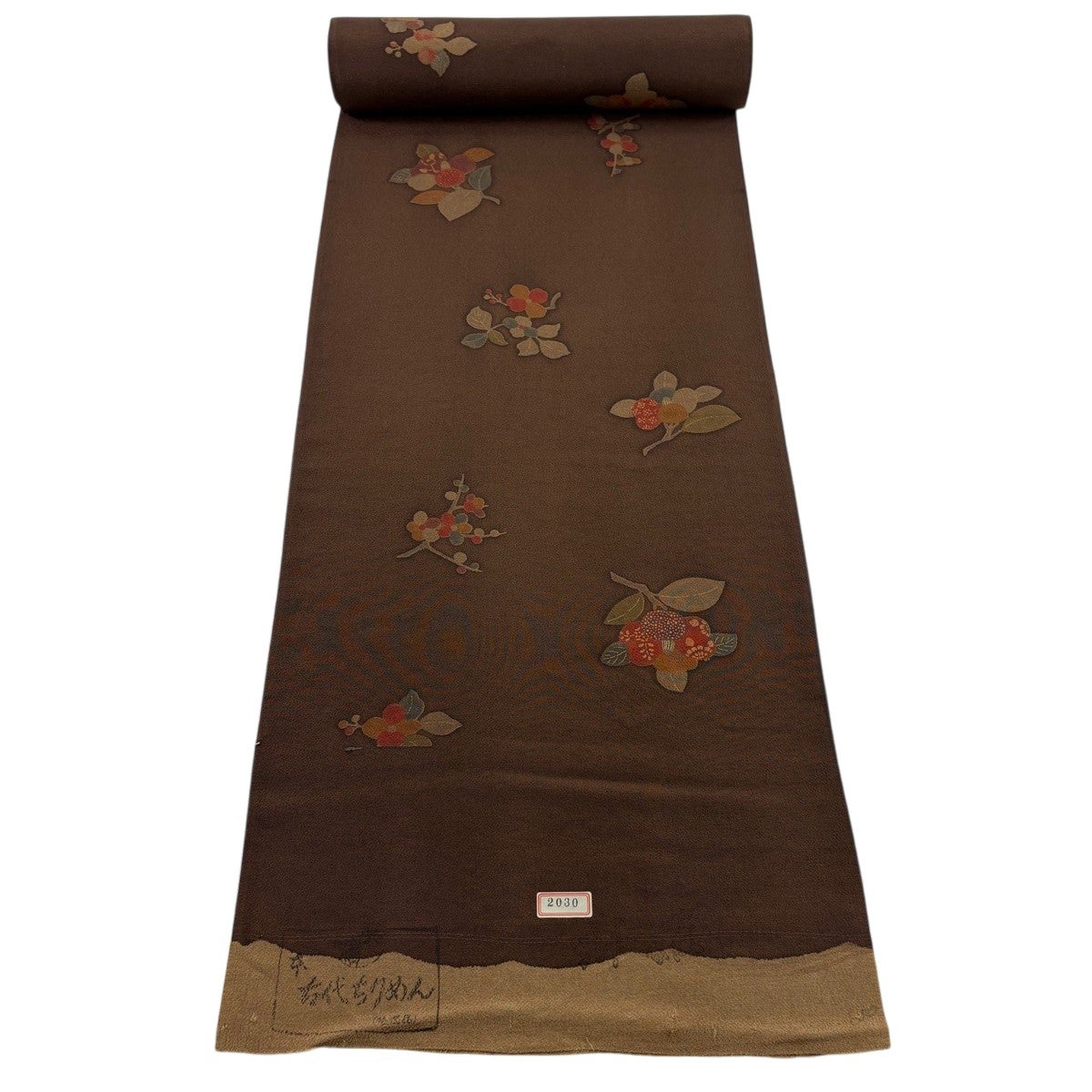 50%OFF 反物 秀品 紬 縞 草花 焦茶色 正絹 K50