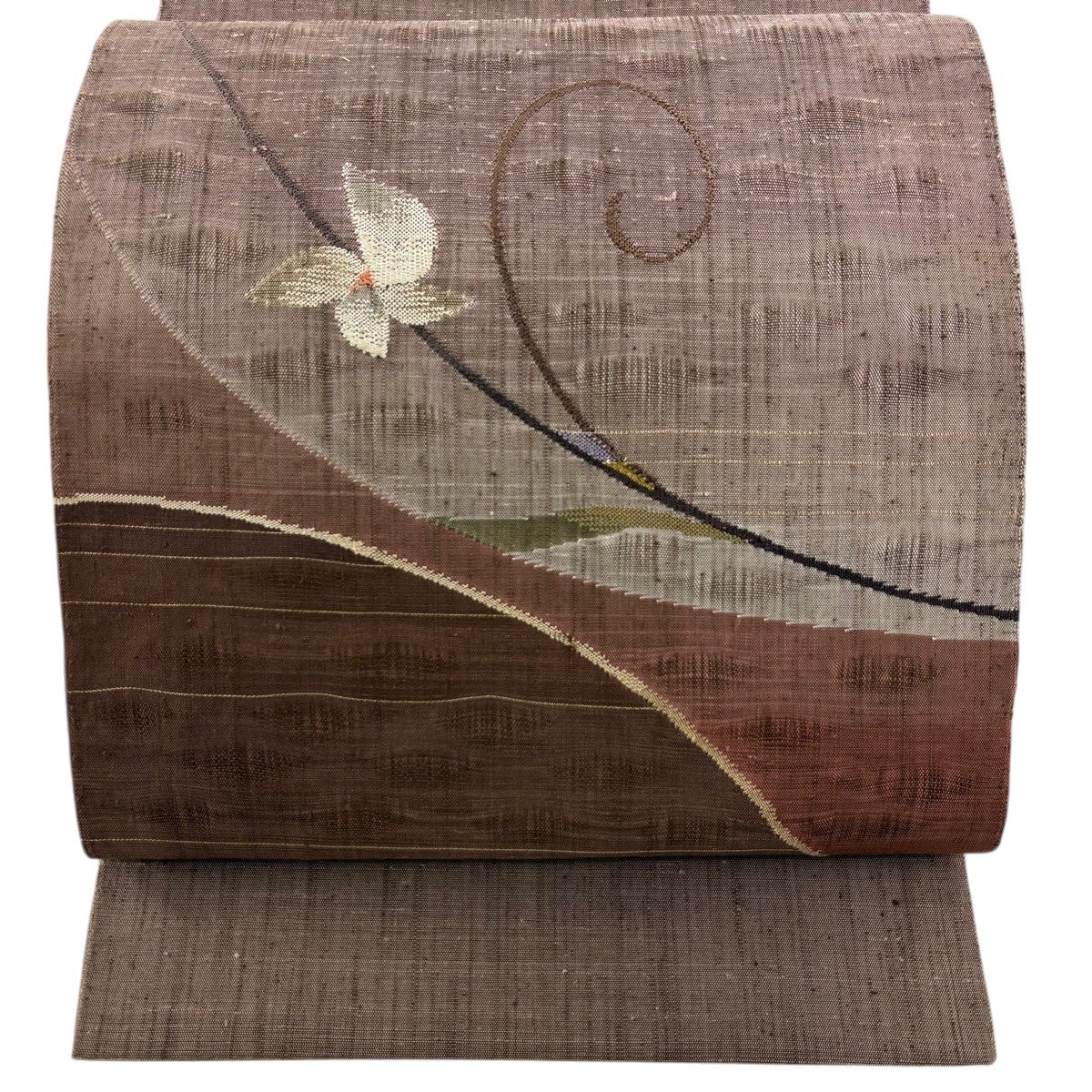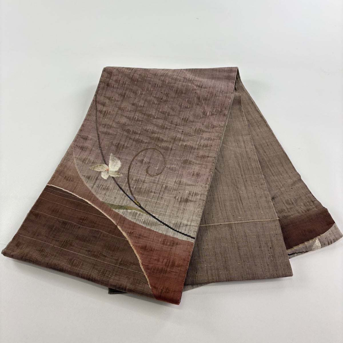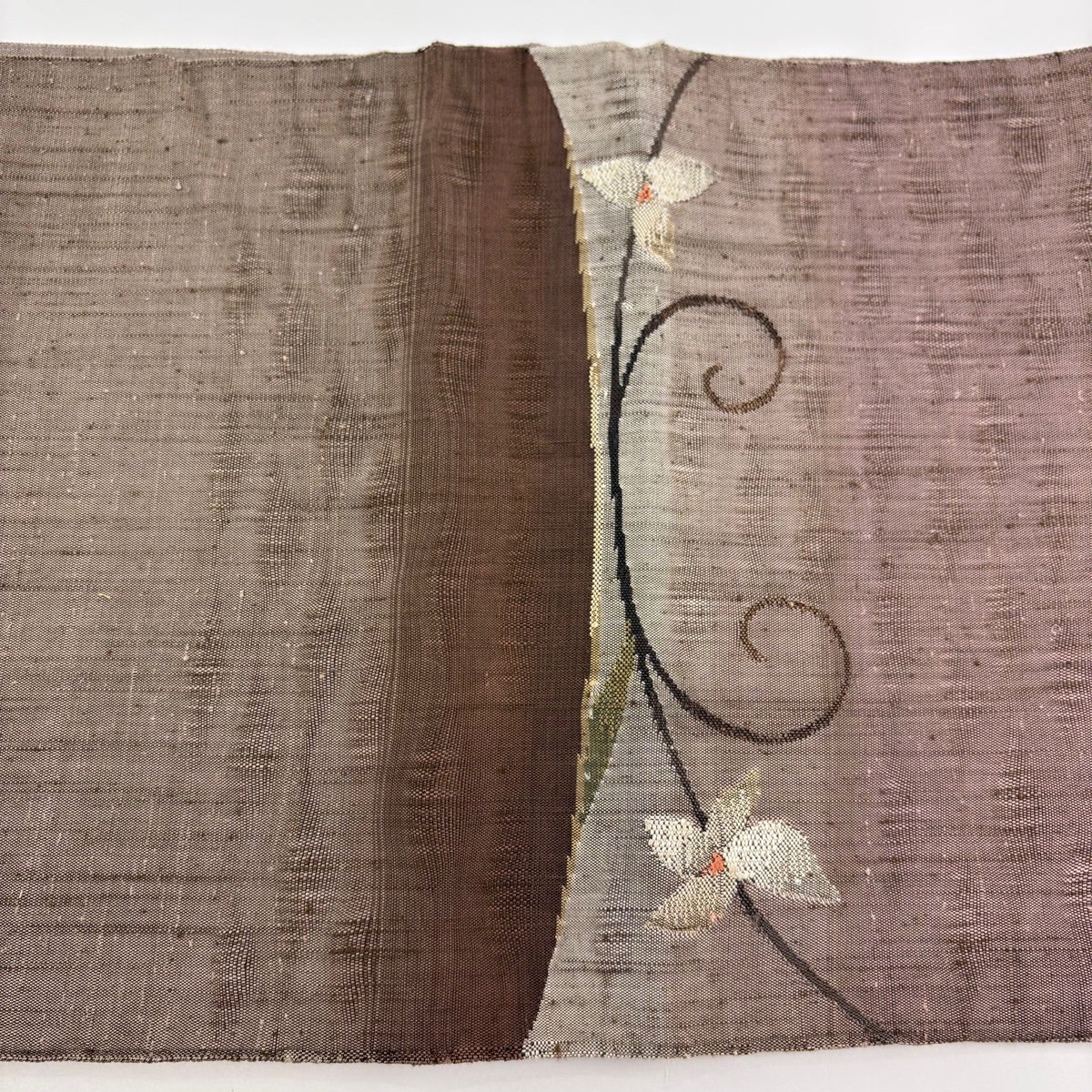 名古屋帯 秀品 夏帯 八寸名古屋帯 松葉仕立て 草花 焦茶色 正絹