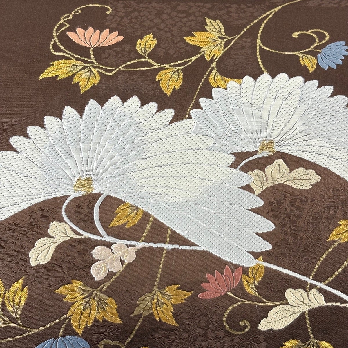 【美品】 袋帯 秀品 菊唐草 金糸 箔 焦茶色 六通 正絹