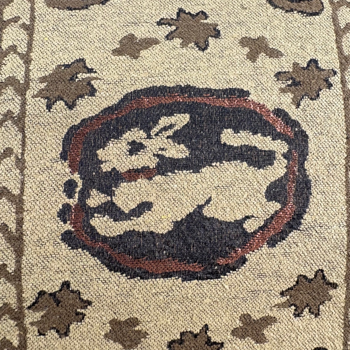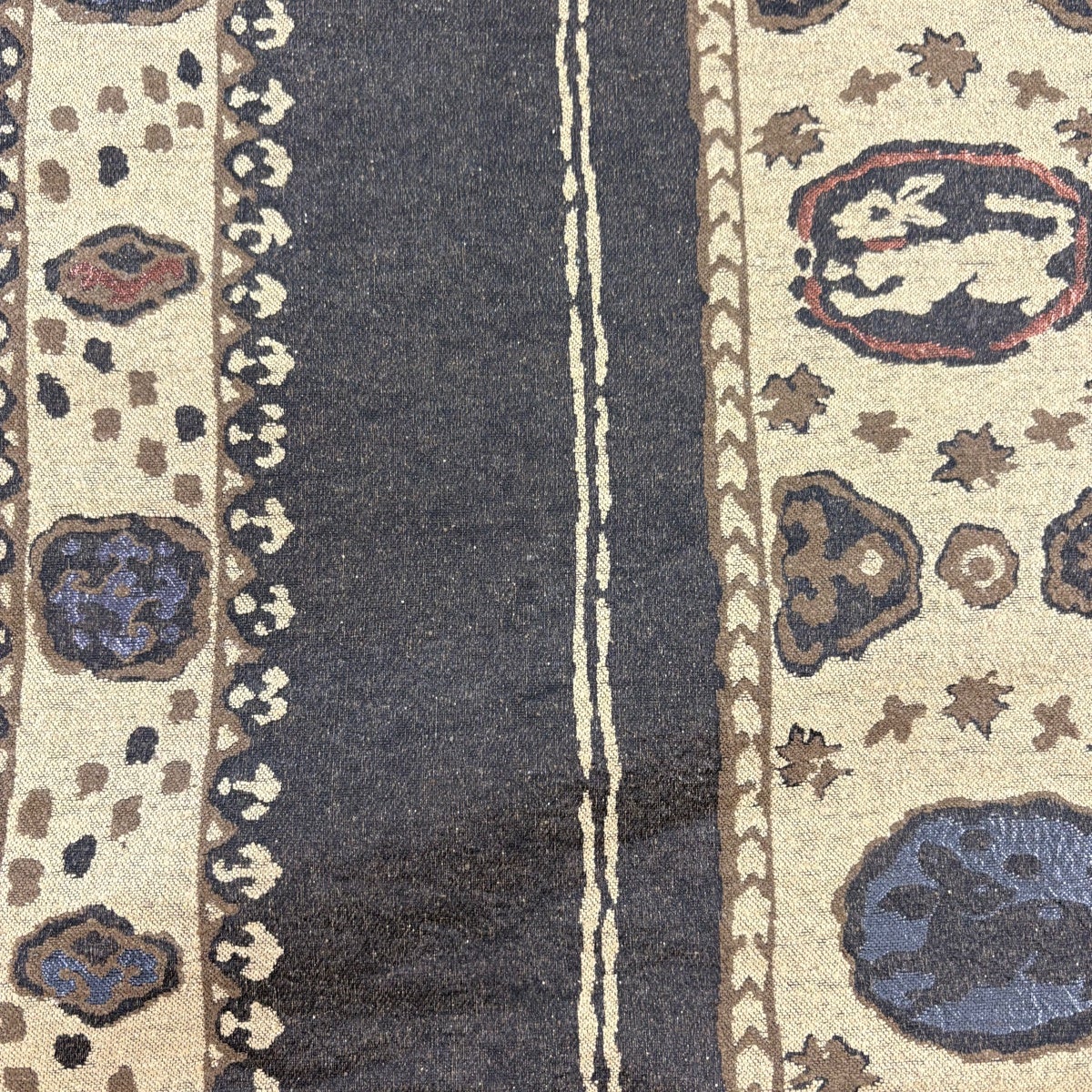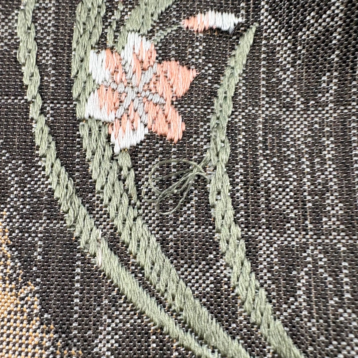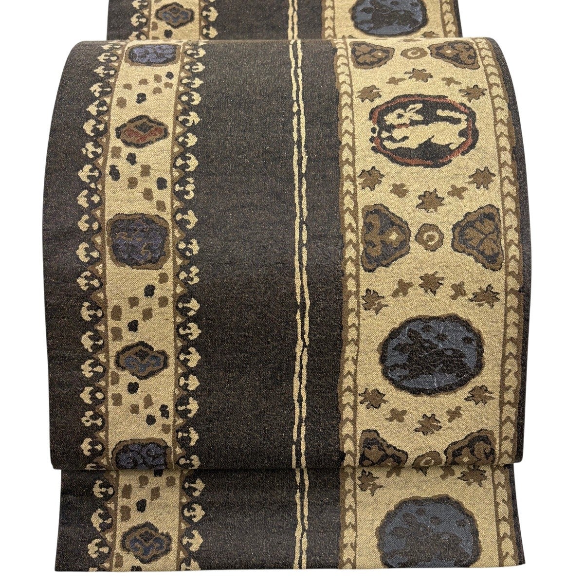 【美品】 名古屋帯 秀品 花うさぎ 格子 刺繍 焦茶色 正絹