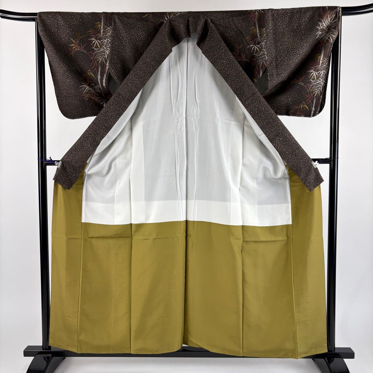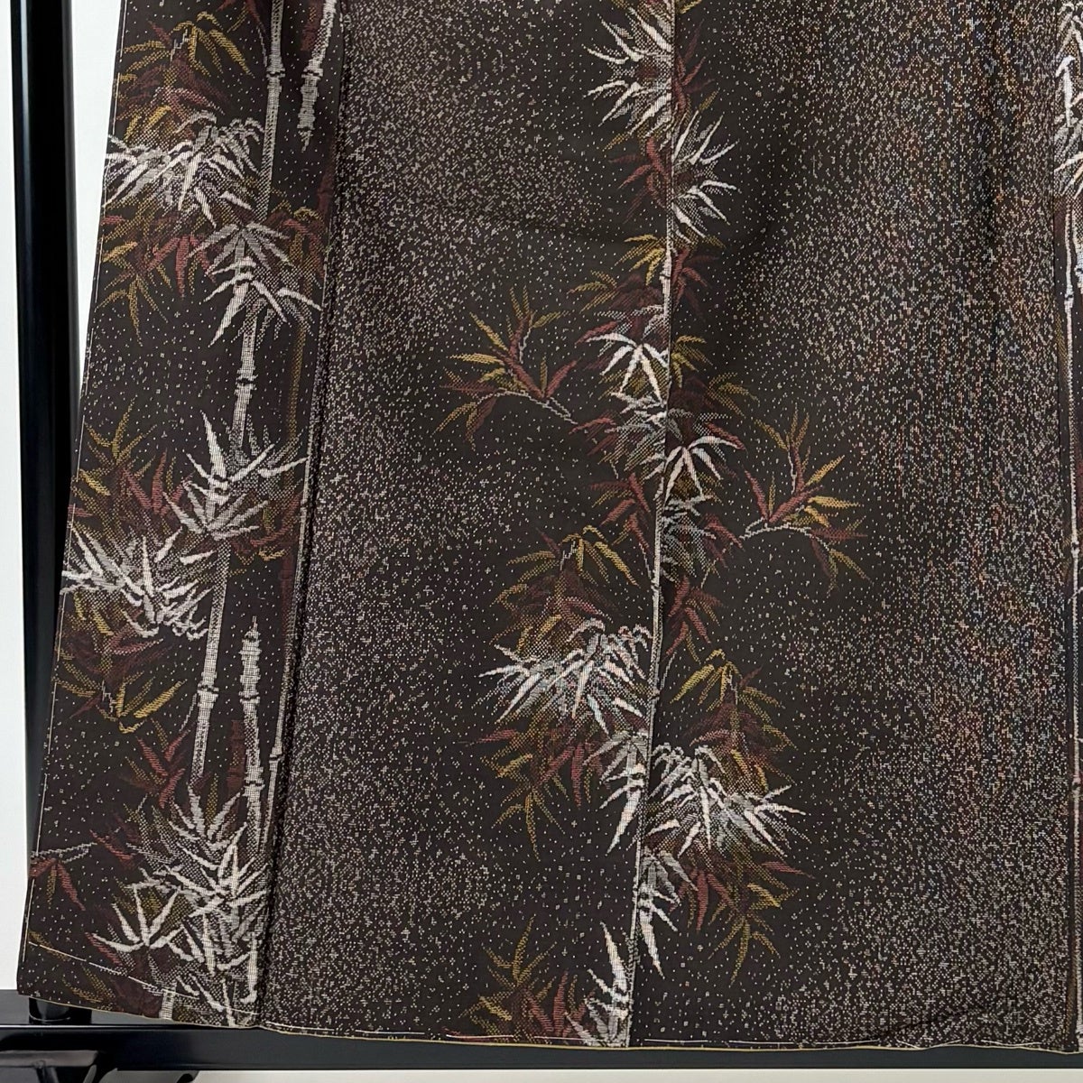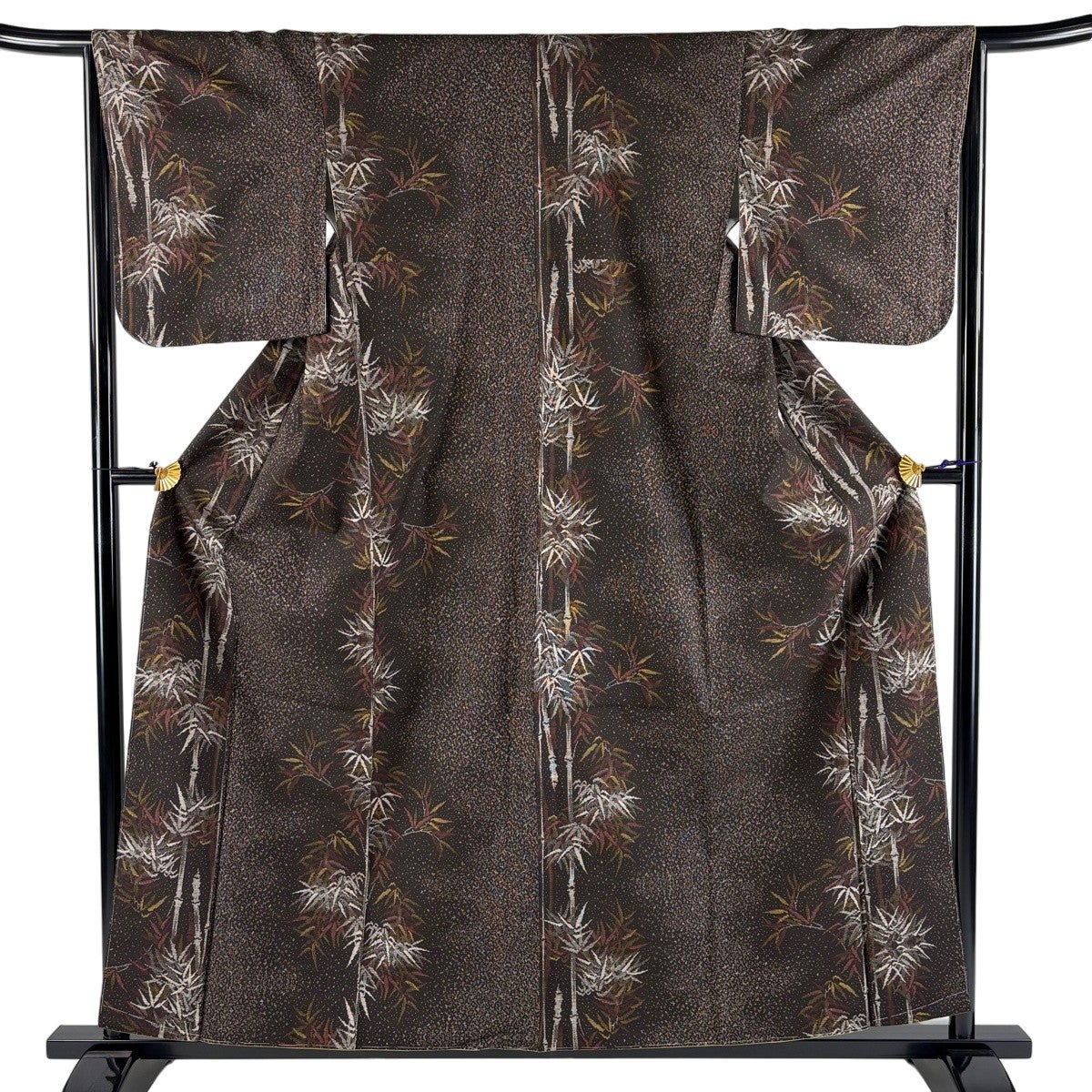 【美品】 紬 身丈158cm 裄丈65.5cm M 袷 竹 幾何学 焦茶色 正絹 秀品