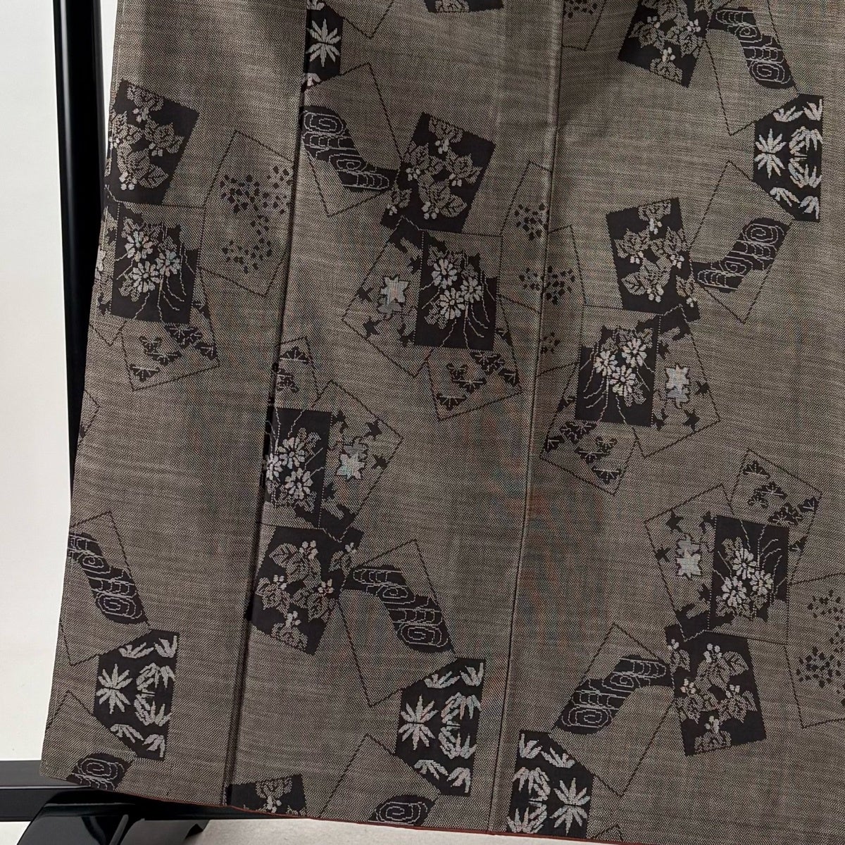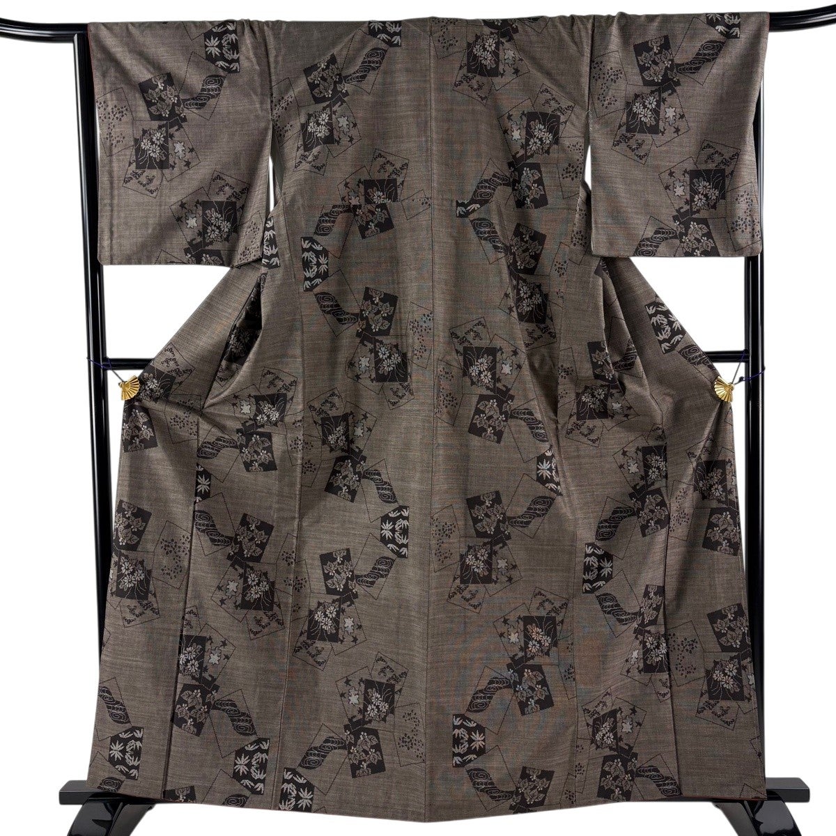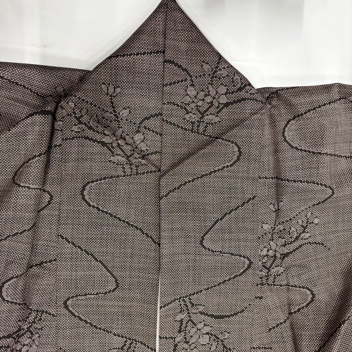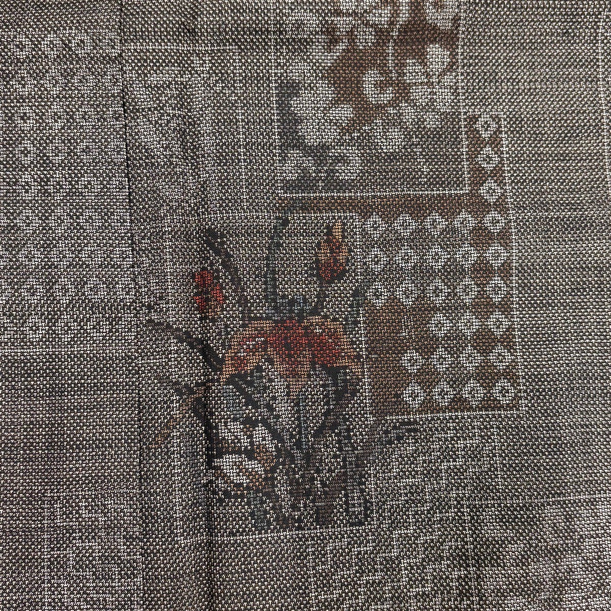 【美品】 紬 身丈161cm 裄丈64cm M 袷 花 幾何学模様 焦茶色 正絹 優品