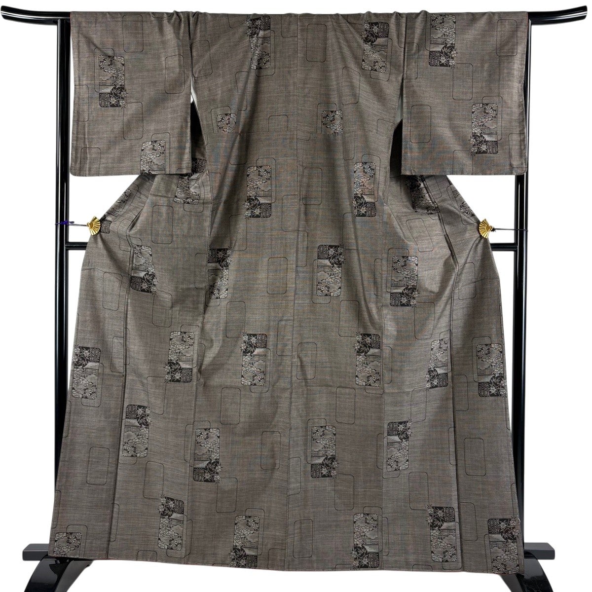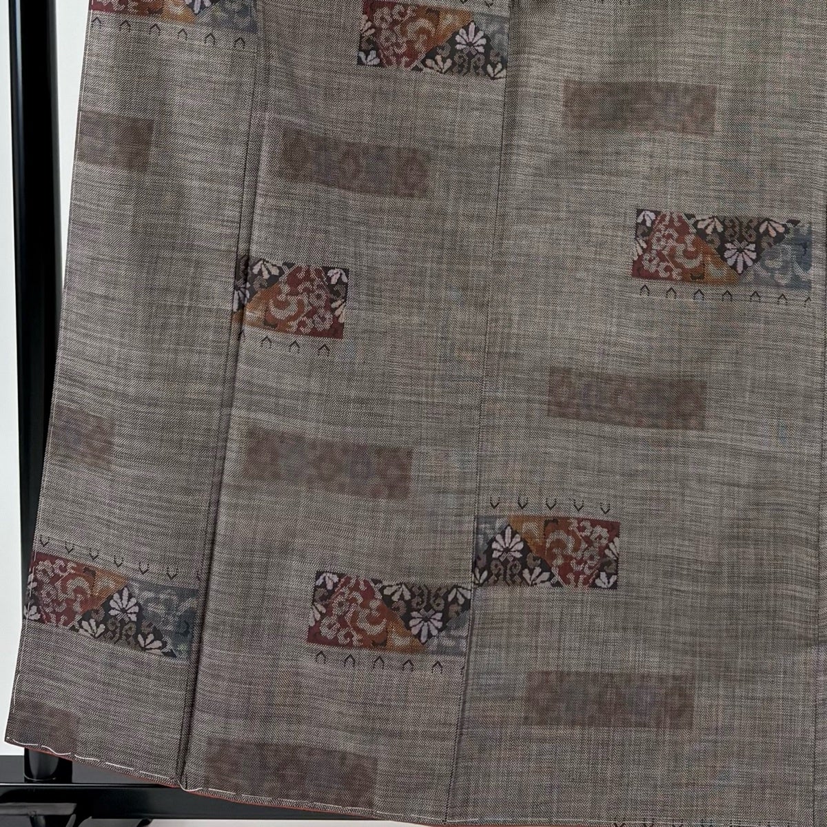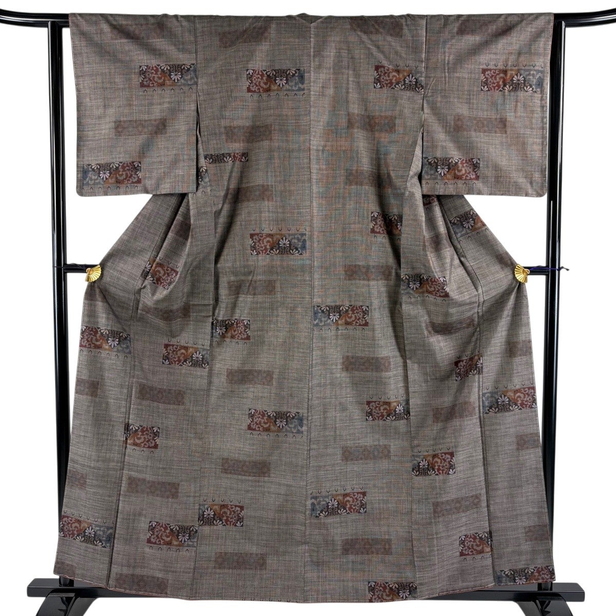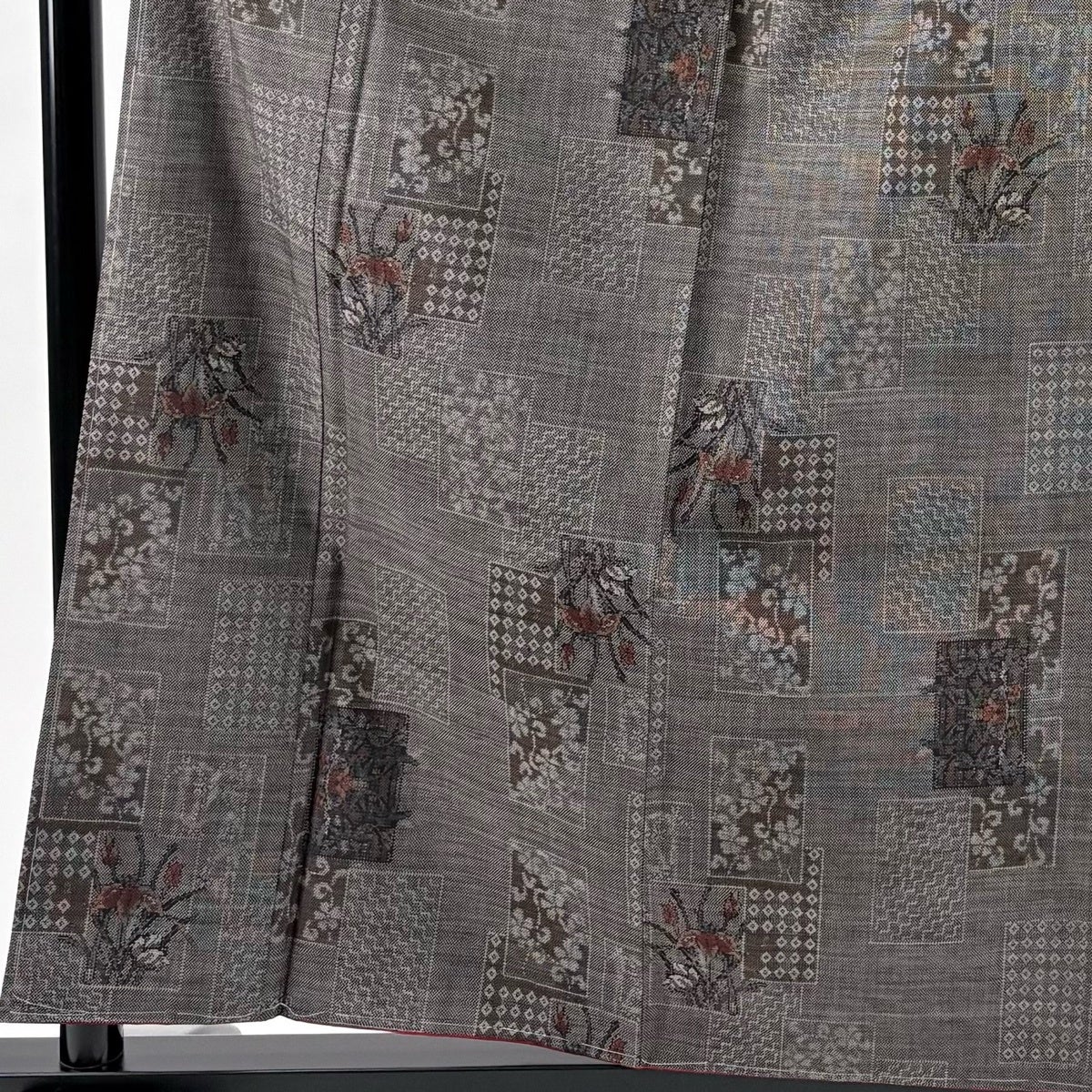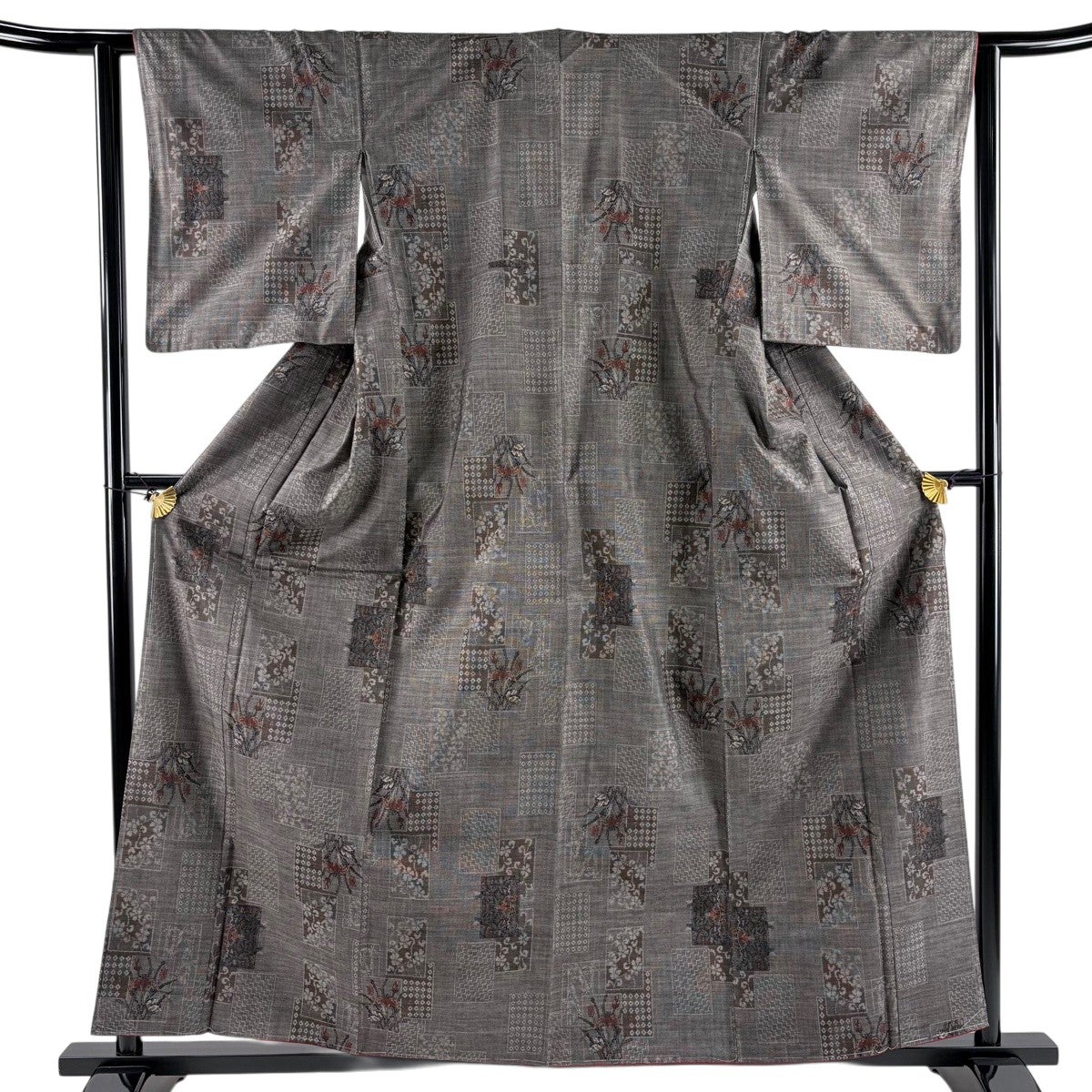 【美品】 紬 身丈161cm 裄丈64cm M 袷 花 幾何学模様 焦茶色 正絹 優品