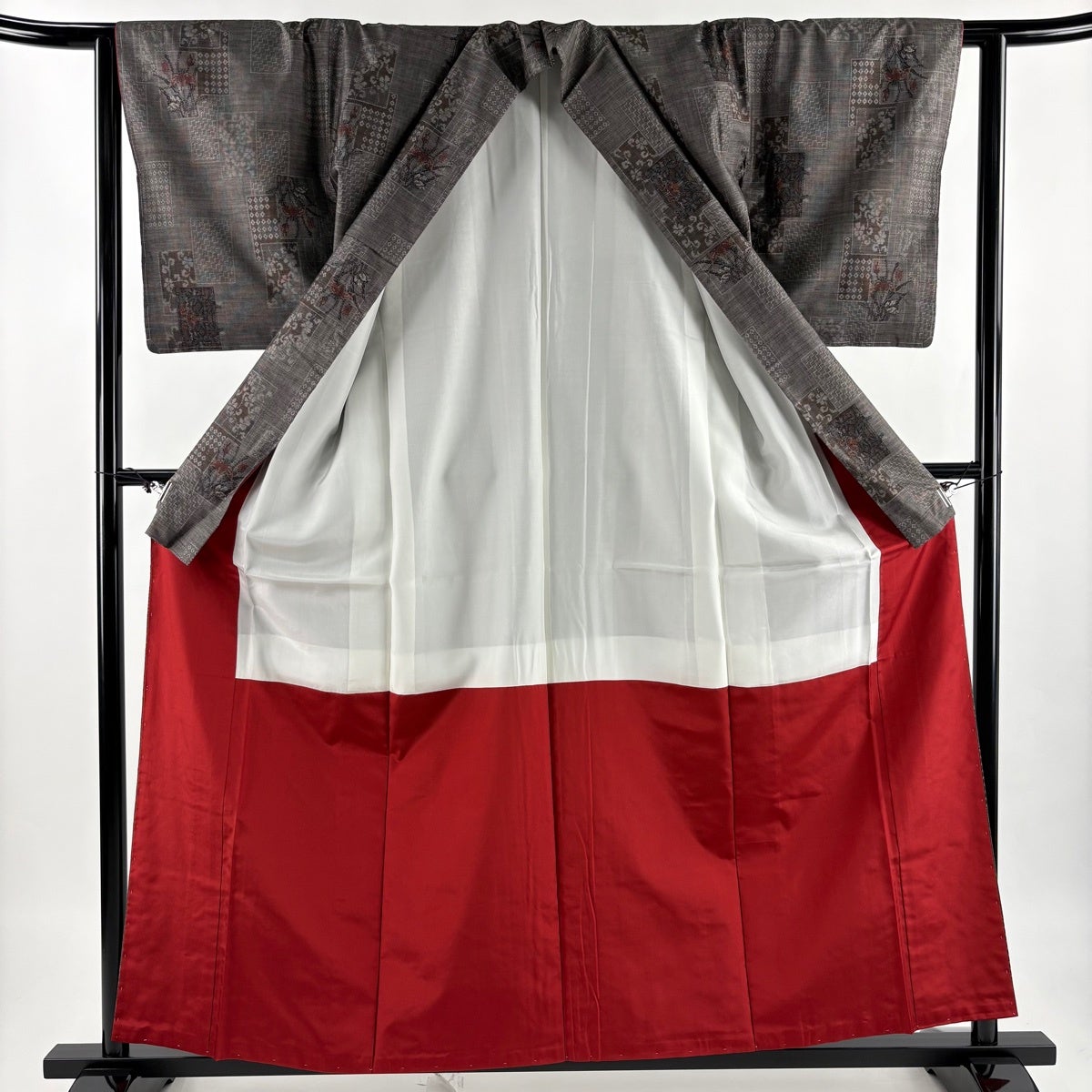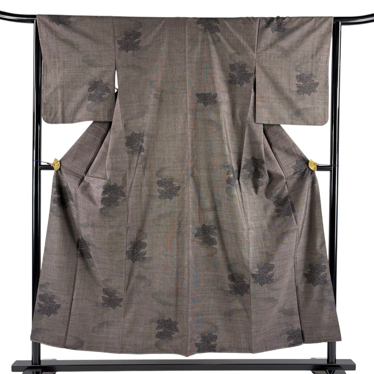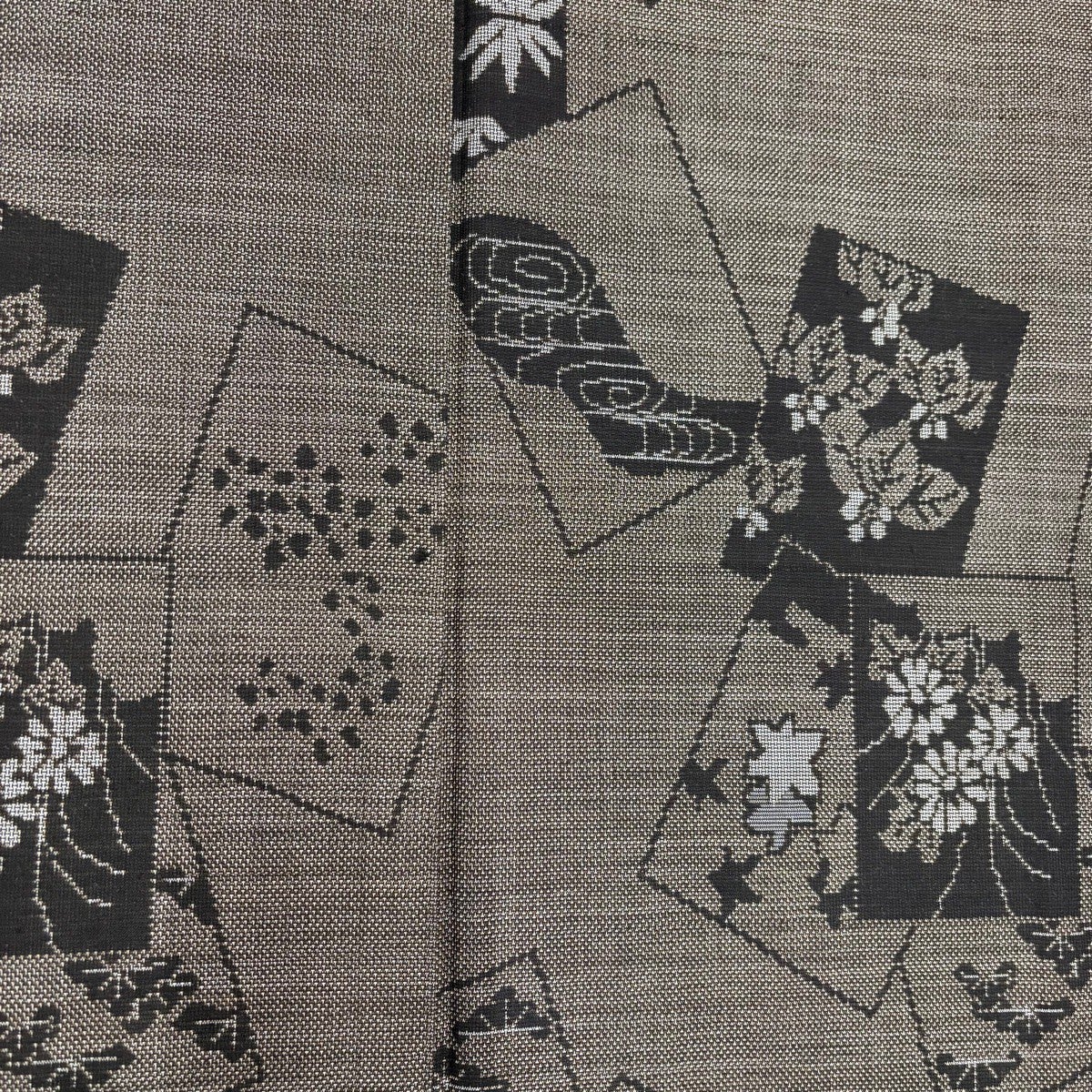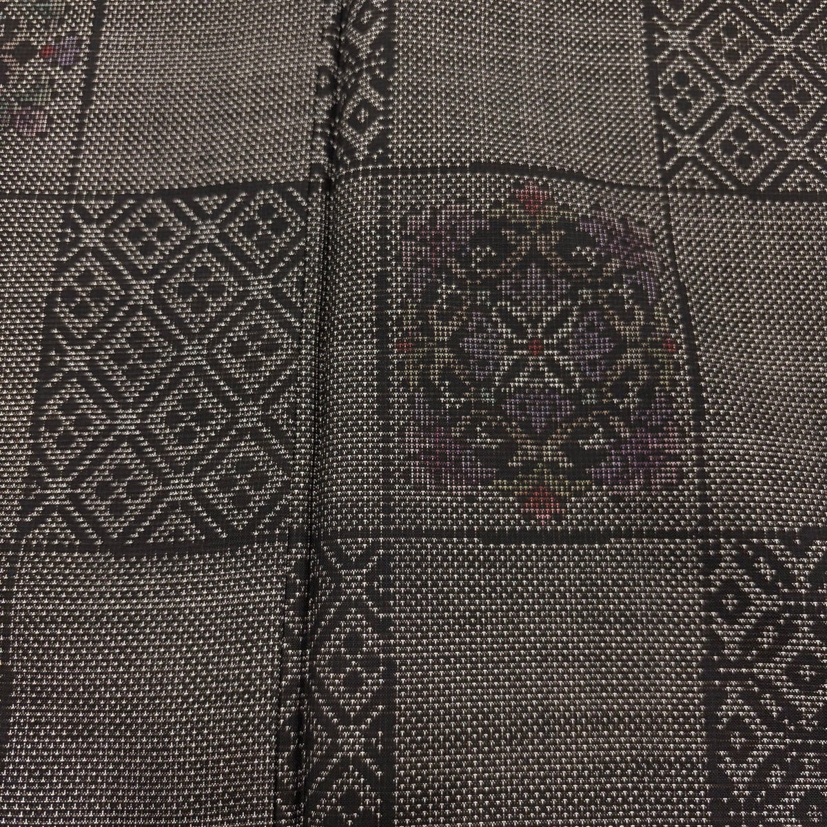 【美品】 紬 身丈161cm 裄丈64cm M 袷 花 幾何学模様 焦茶色 正絹 優品