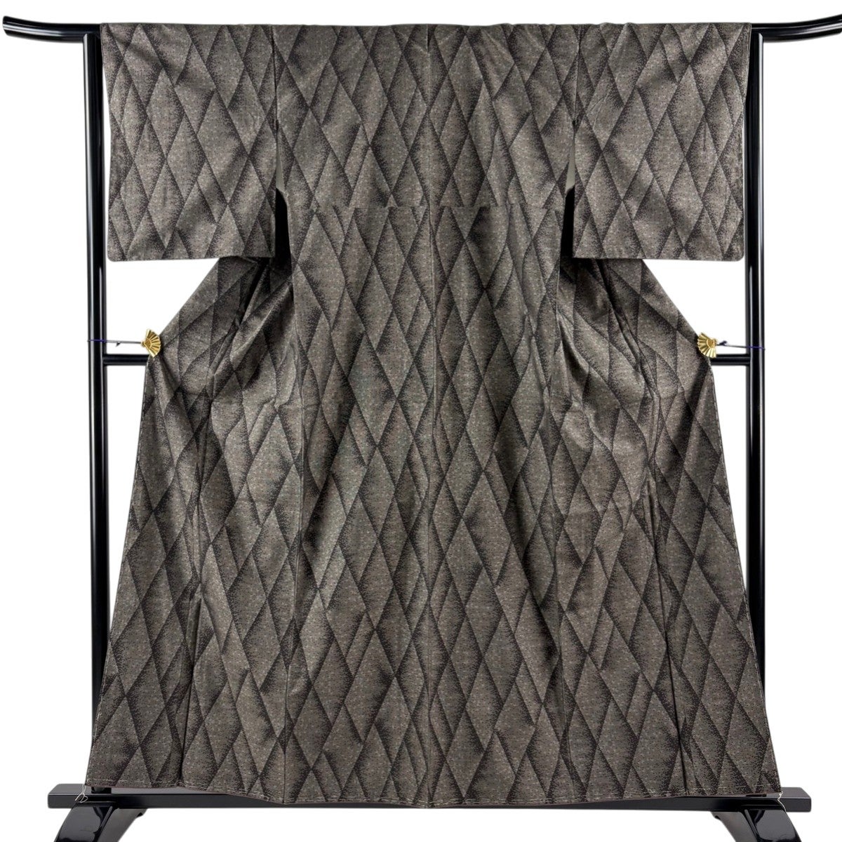 【美品】 紬 身丈158.5cm 裄丈63.5cm S 袷 菱 幾何学 焦茶色 正絹 秀品
