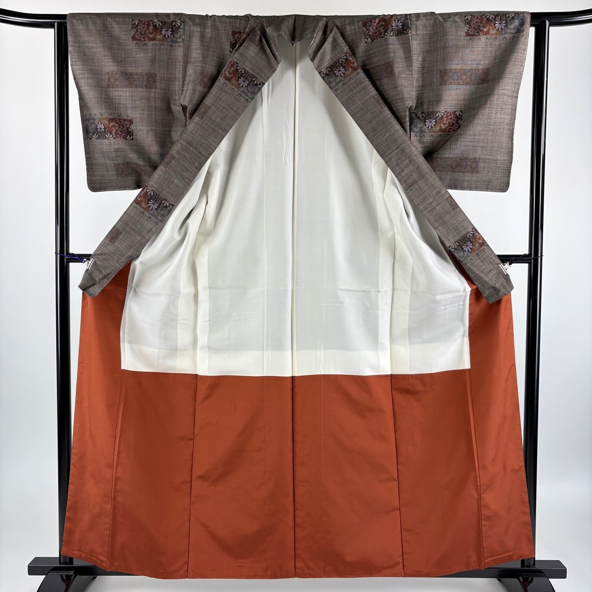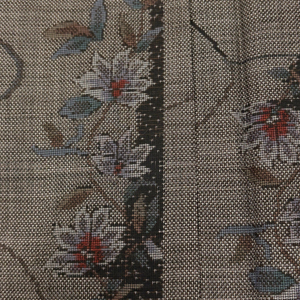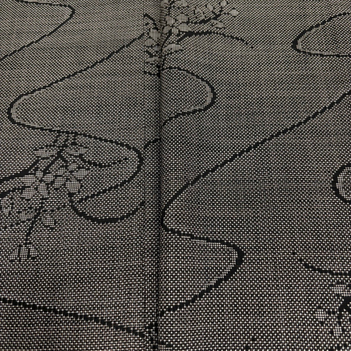 紬 身丈166.5cm 裄丈68.5cm L 袷 名古屋帯セット 草花 焦茶色 正絹 秀品