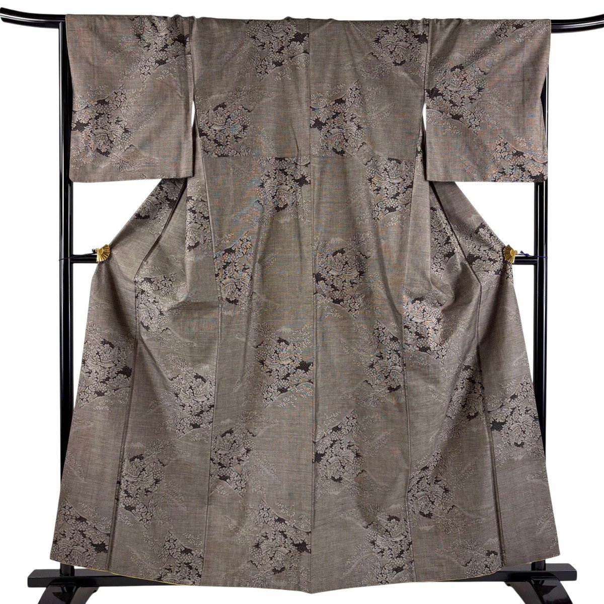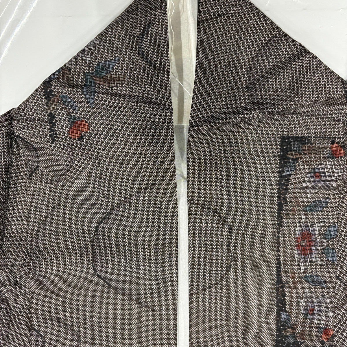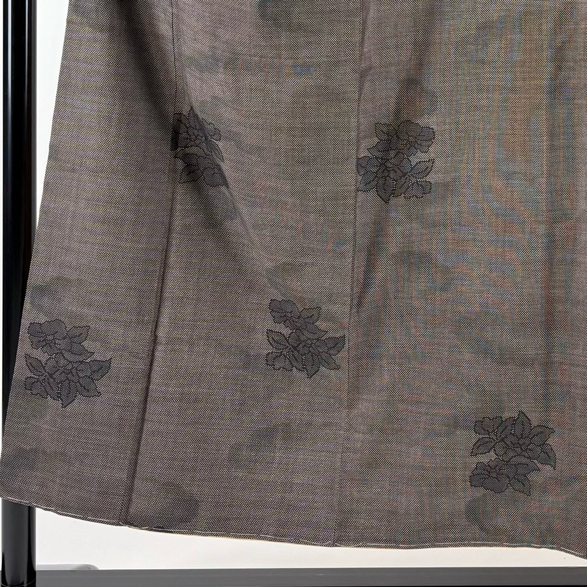付下げ 身丈164cm 裄丈64cm M 袷 紬地 花唐草 刺繍 金糸 焦茶色 正絹 秀品