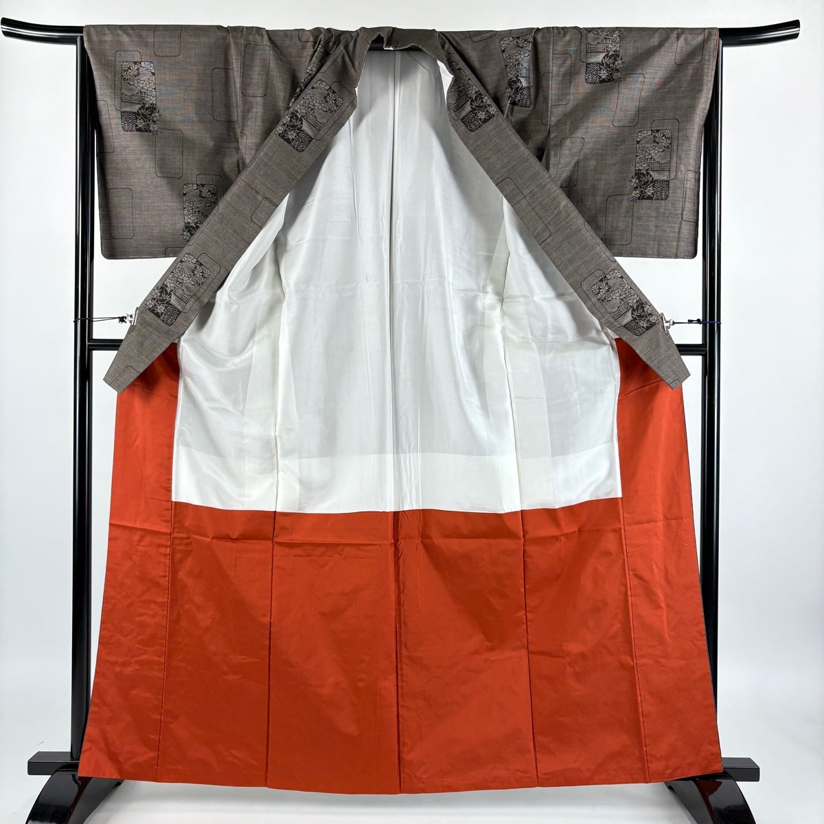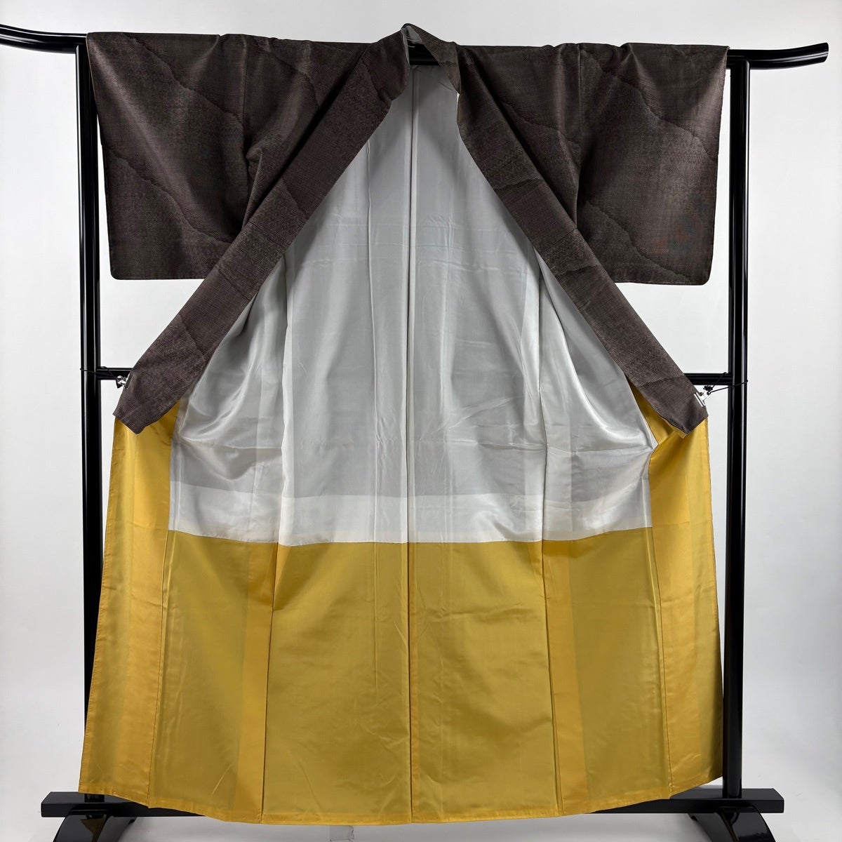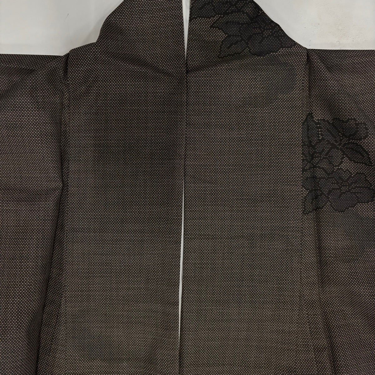 【美品】 紬 身丈161.5cm 裄丈65.5cm M 袷 華文 色紙 焦茶色 正絹 秀品