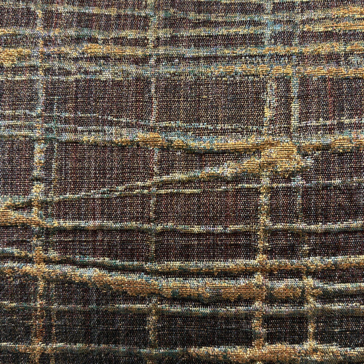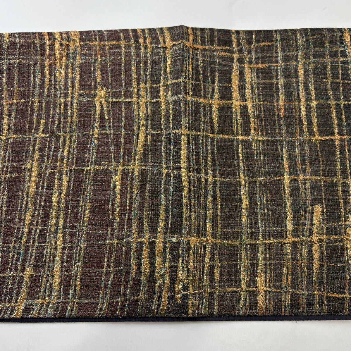 【美品】 袋帯 秀品 じゅらく 落款あり 格子 幾何学 箔 銀糸 焦茶色 六通 正絹