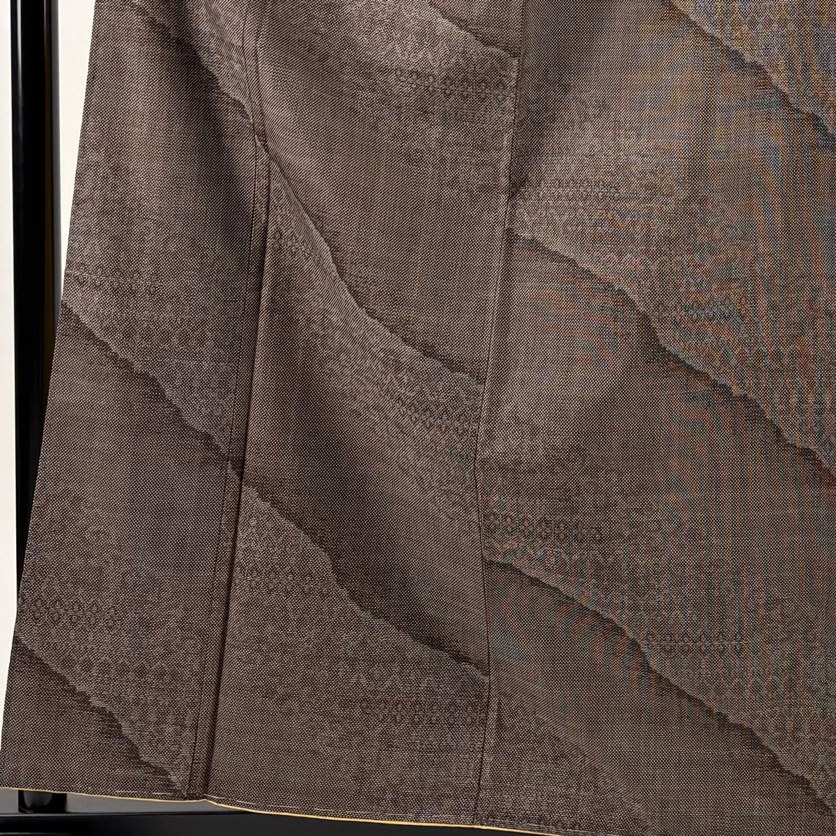 【美品】 紬 身丈157.5cm 裄丈65.5cm M 袷 幾何学模様 焦茶色 正絹 秀品