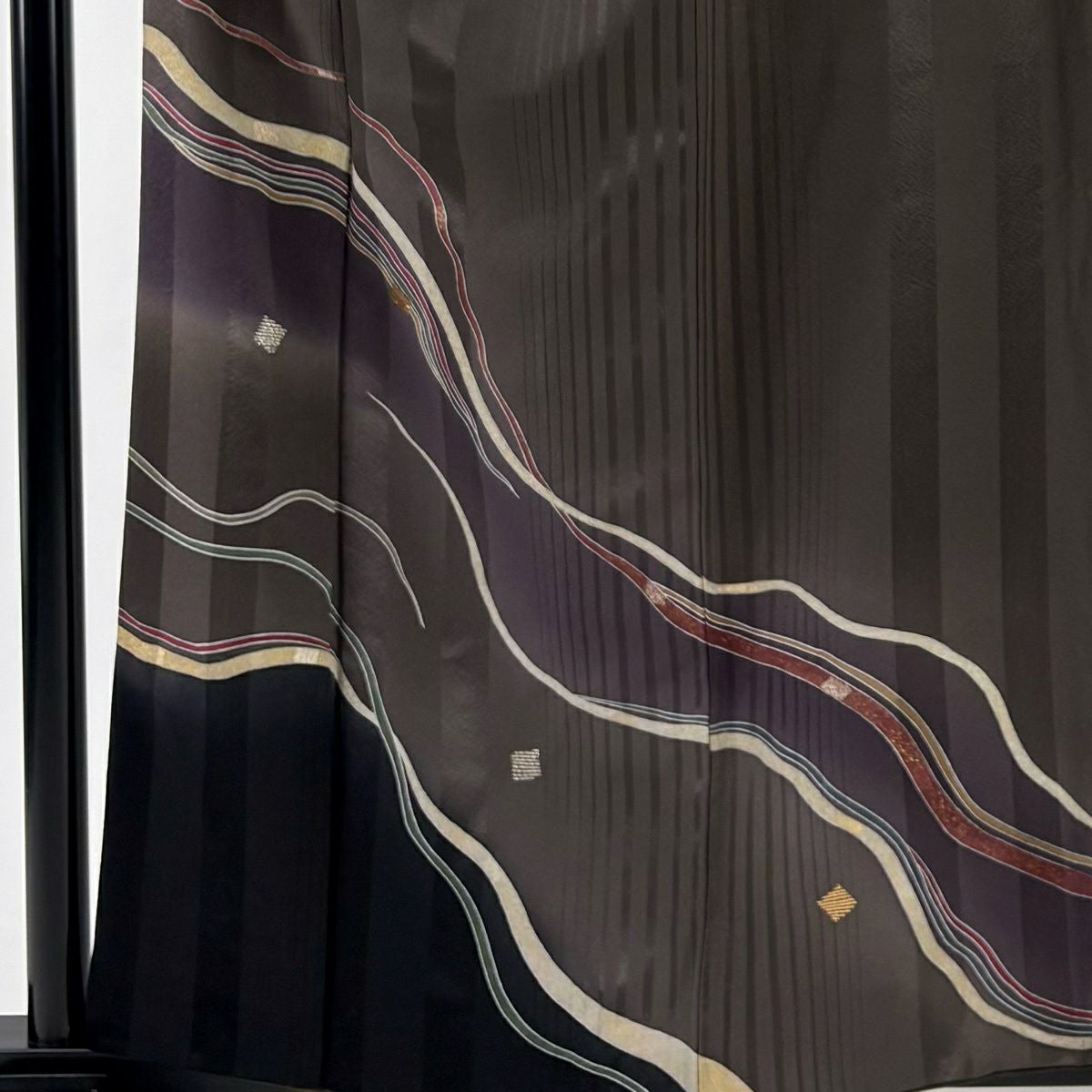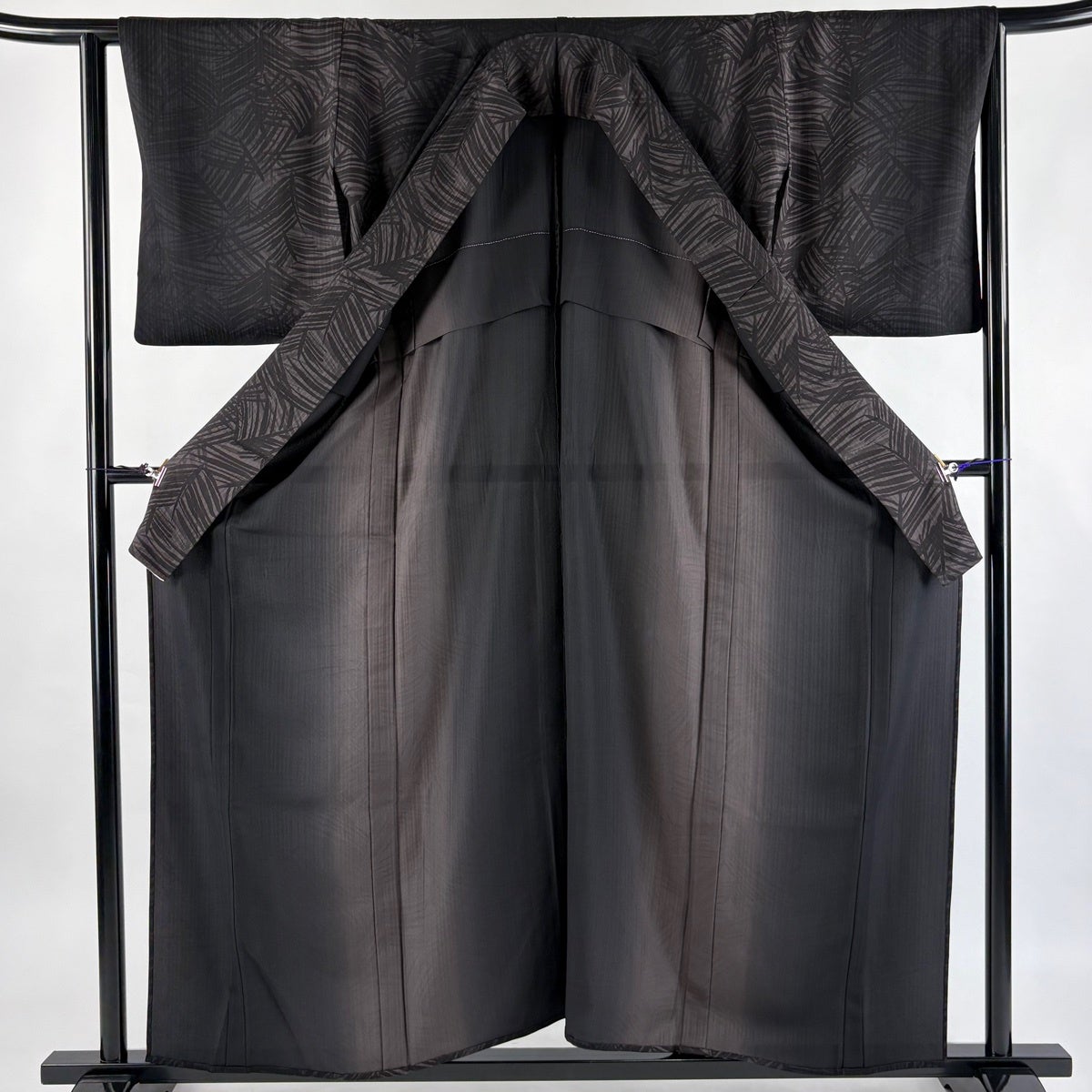 訪問着 身丈165.5cm 裄丈65cm M 袷 霞 地紋 ぼかし 焦茶色 正絹 秀品 一つ紋