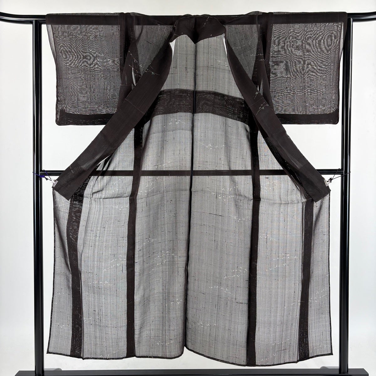 【美品】 小紋 身丈154cm 裄丈63cm S 単衣 紬地 華文 銀彩 焦茶色 正絹 名品