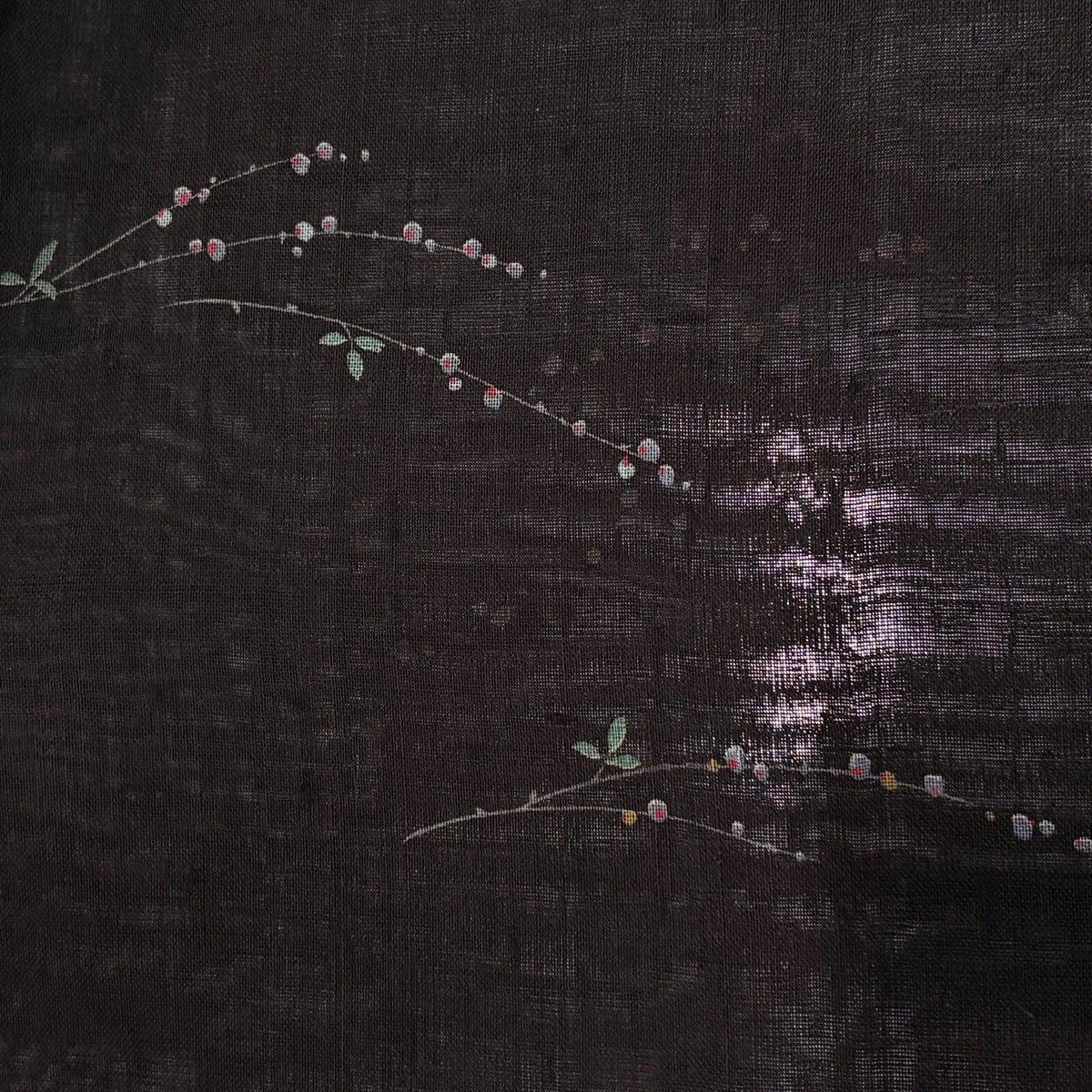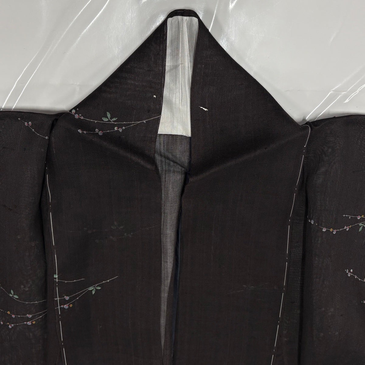 【美品】 小紋 身丈151.5cm 裄丈63.5cm S 薄物 夏紬地 葉と実 焦茶色 正絹 秀品