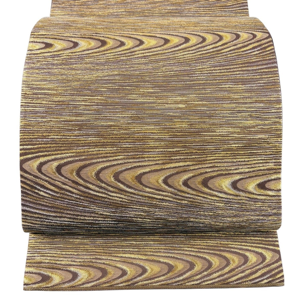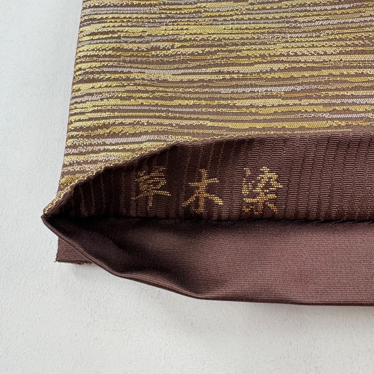 【美品】 袋帯 秀品 箔屋清兵衛 落款あり 草木染 関西仕立て 木目柄 箔 焦茶色 六通 正絹