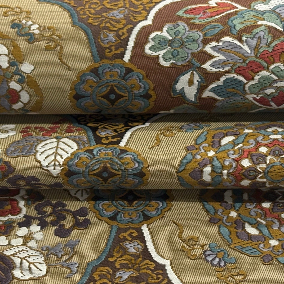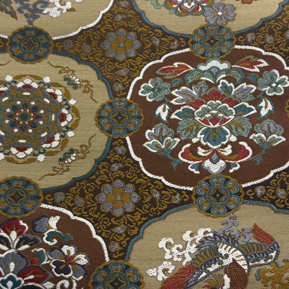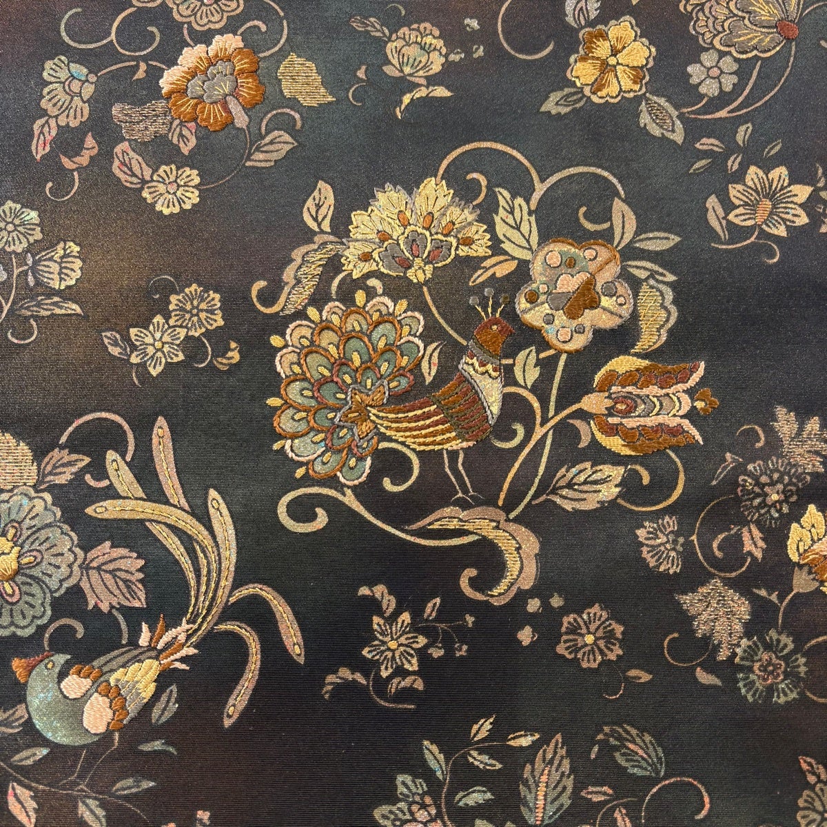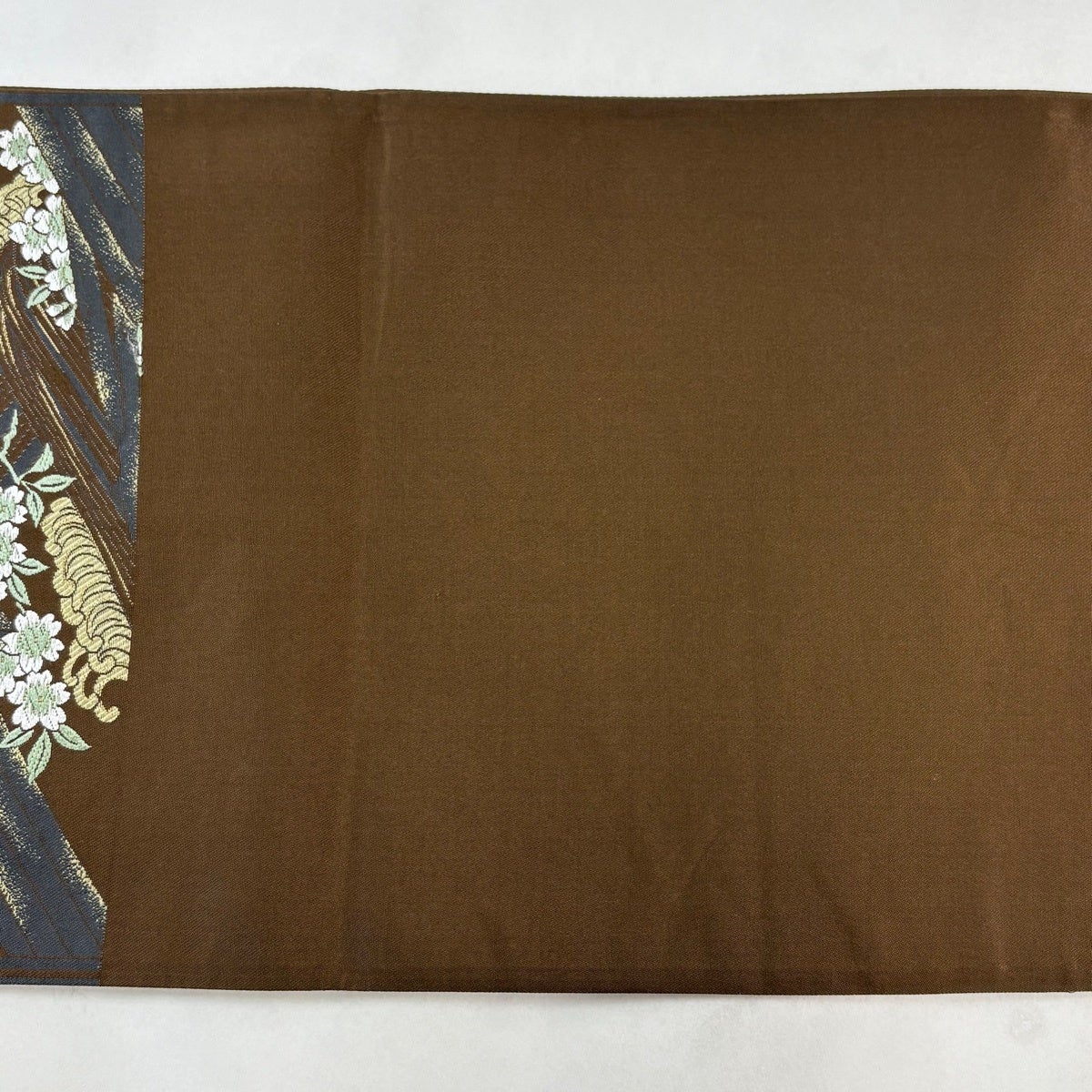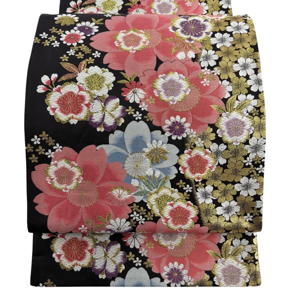 50%OFF 袋帯 秀品 草花 金糸 金彩 焦茶色 お太鼓柄 正絹 K50
