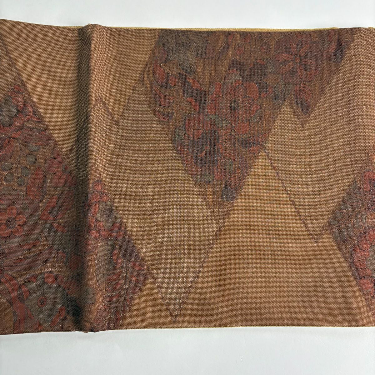 70%OFF 【美品】 袋帯 秀品 縞 菱 焦茶色 六通 正絹 K70