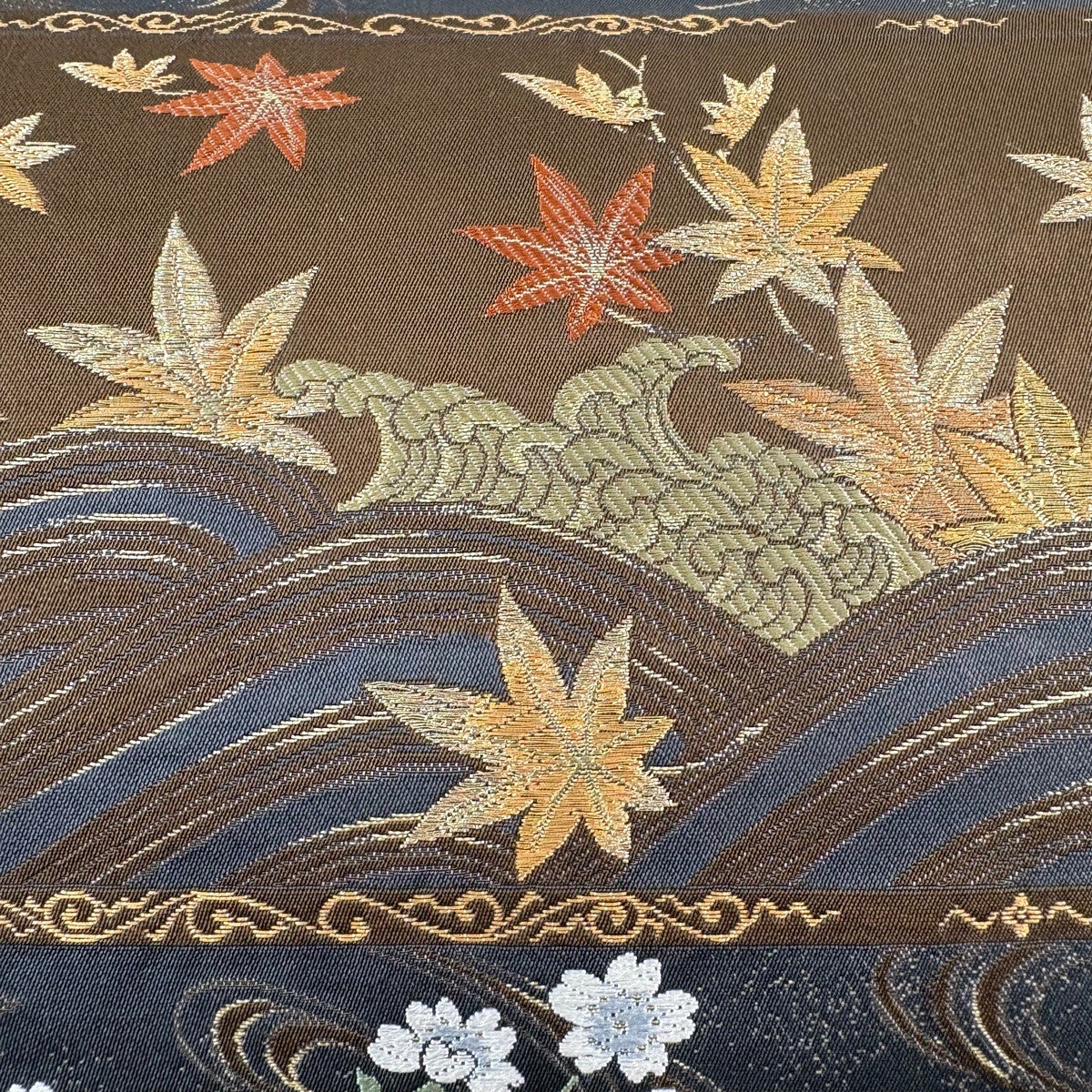 50%OFF 【美品】 袋帯 秀品 波 焦茶色 お太鼓柄 正絹 K50