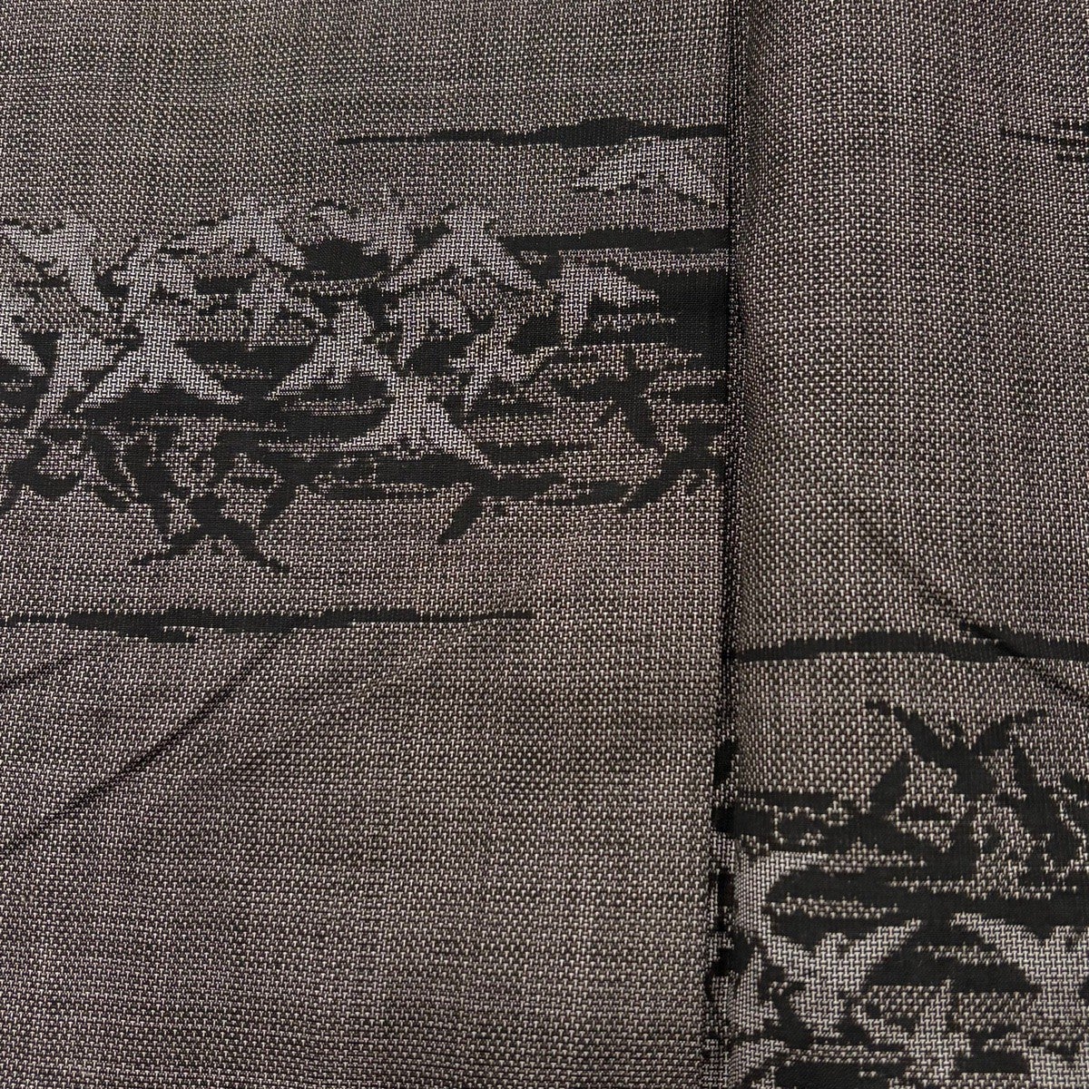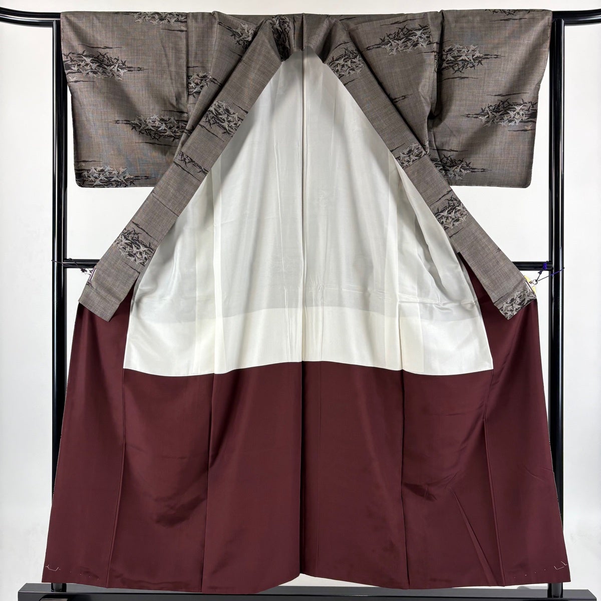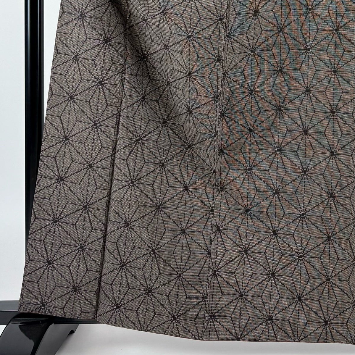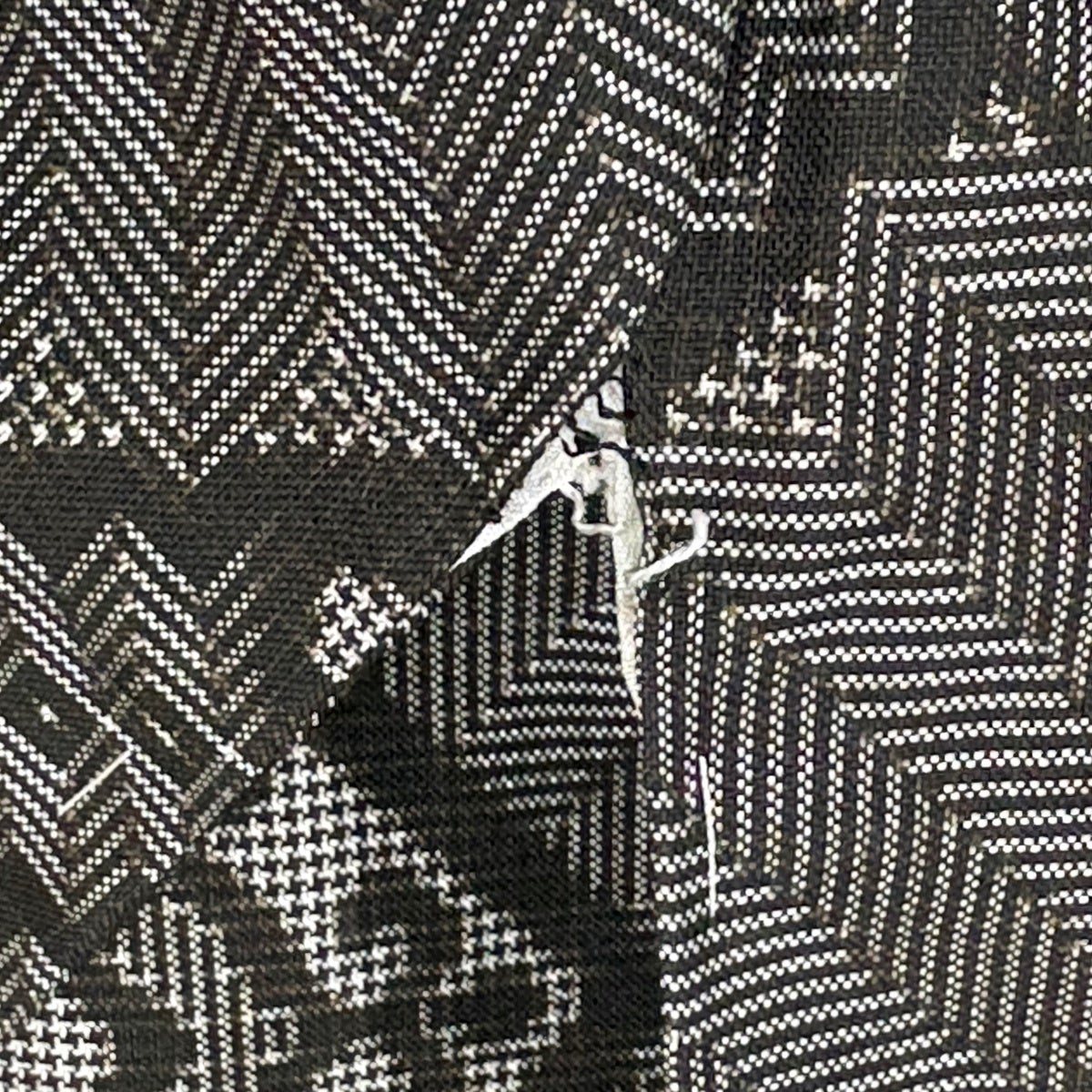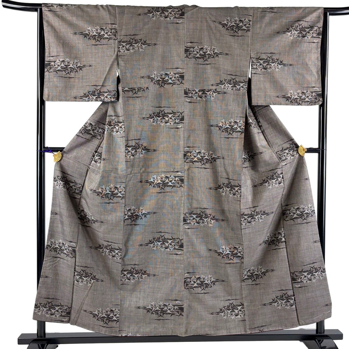 紬 身丈163.5cm 裄丈67.5cm L 袷 麻の葉 焦茶色 正絹 秀品