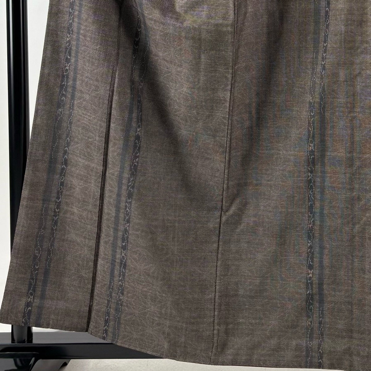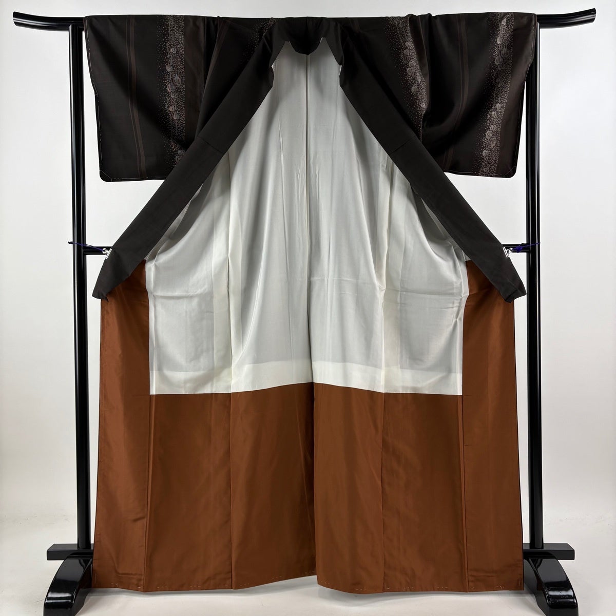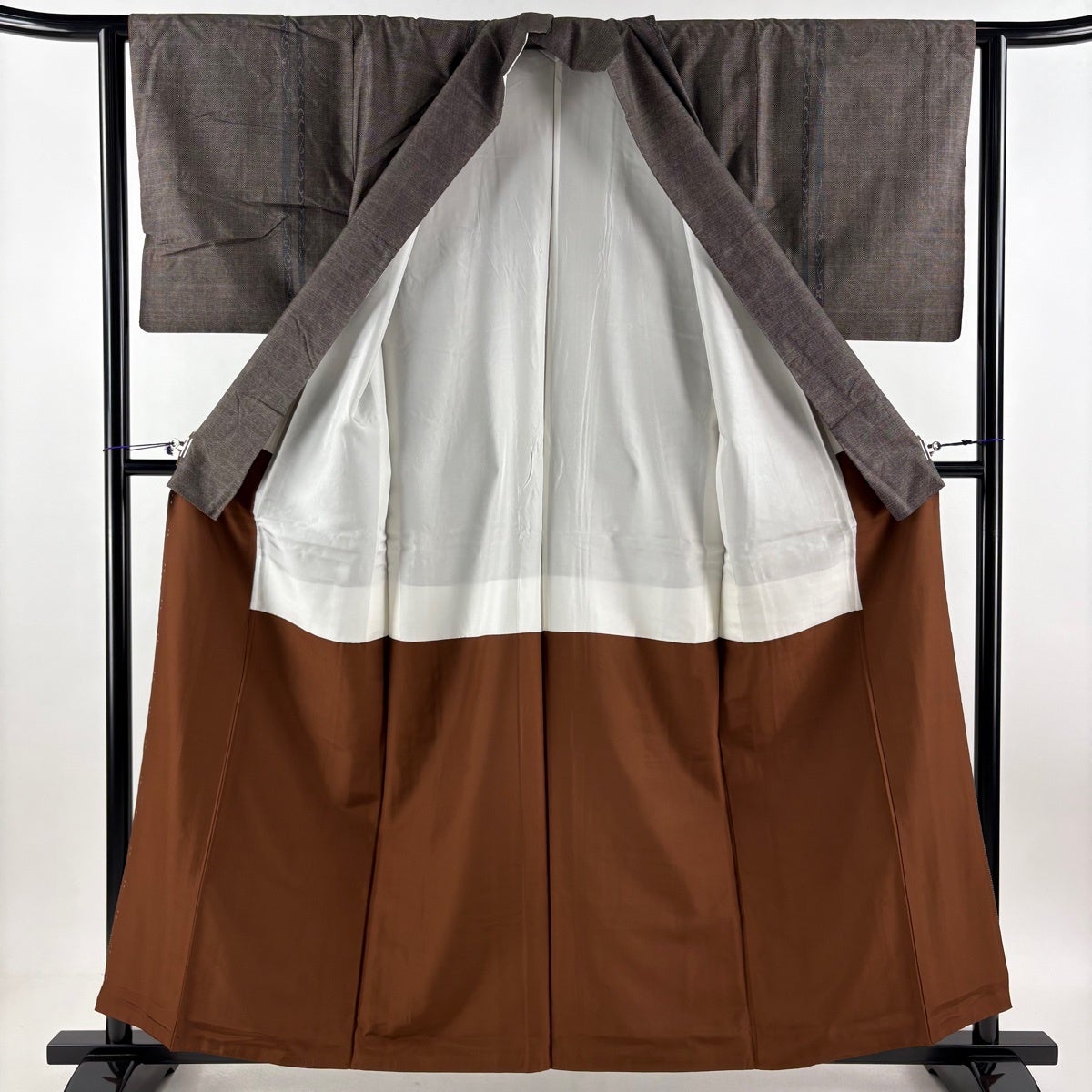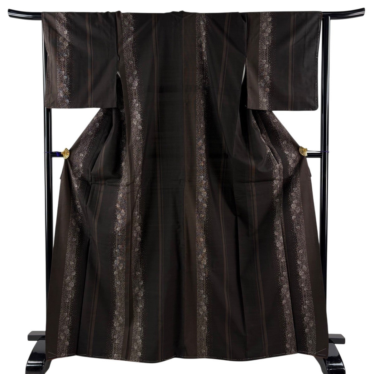 紬 身丈168.5cm 裄丈66cm M 袷 蔦 縦縞 焦茶色 正絹 秀品