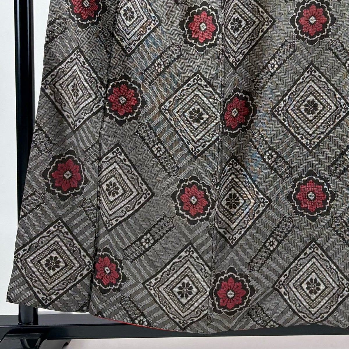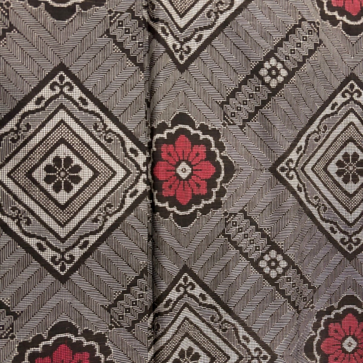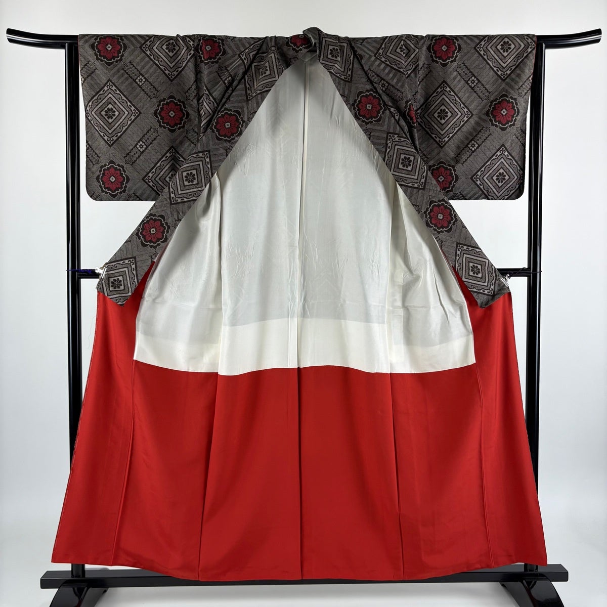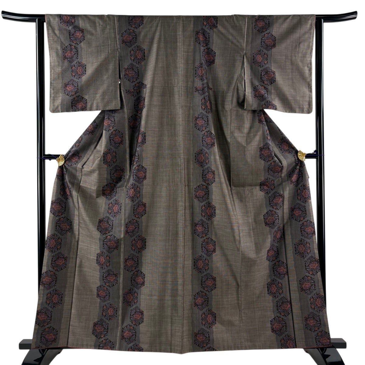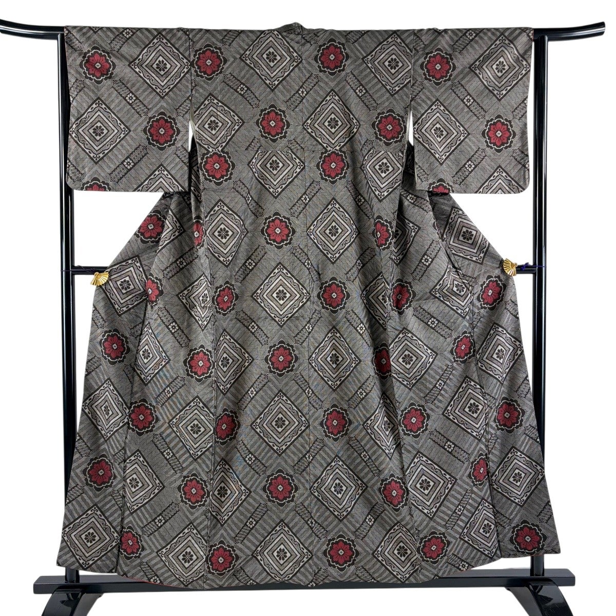 紬 身丈157cm 裄丈64cm M 袷 華文 菱文 焦茶色 正絹 秀品