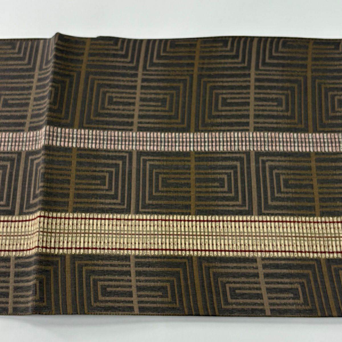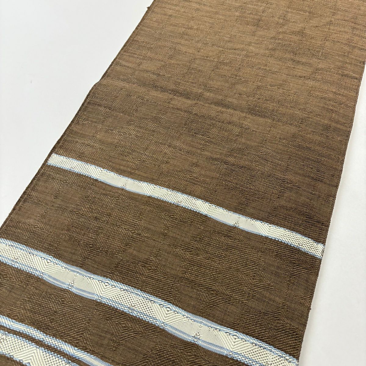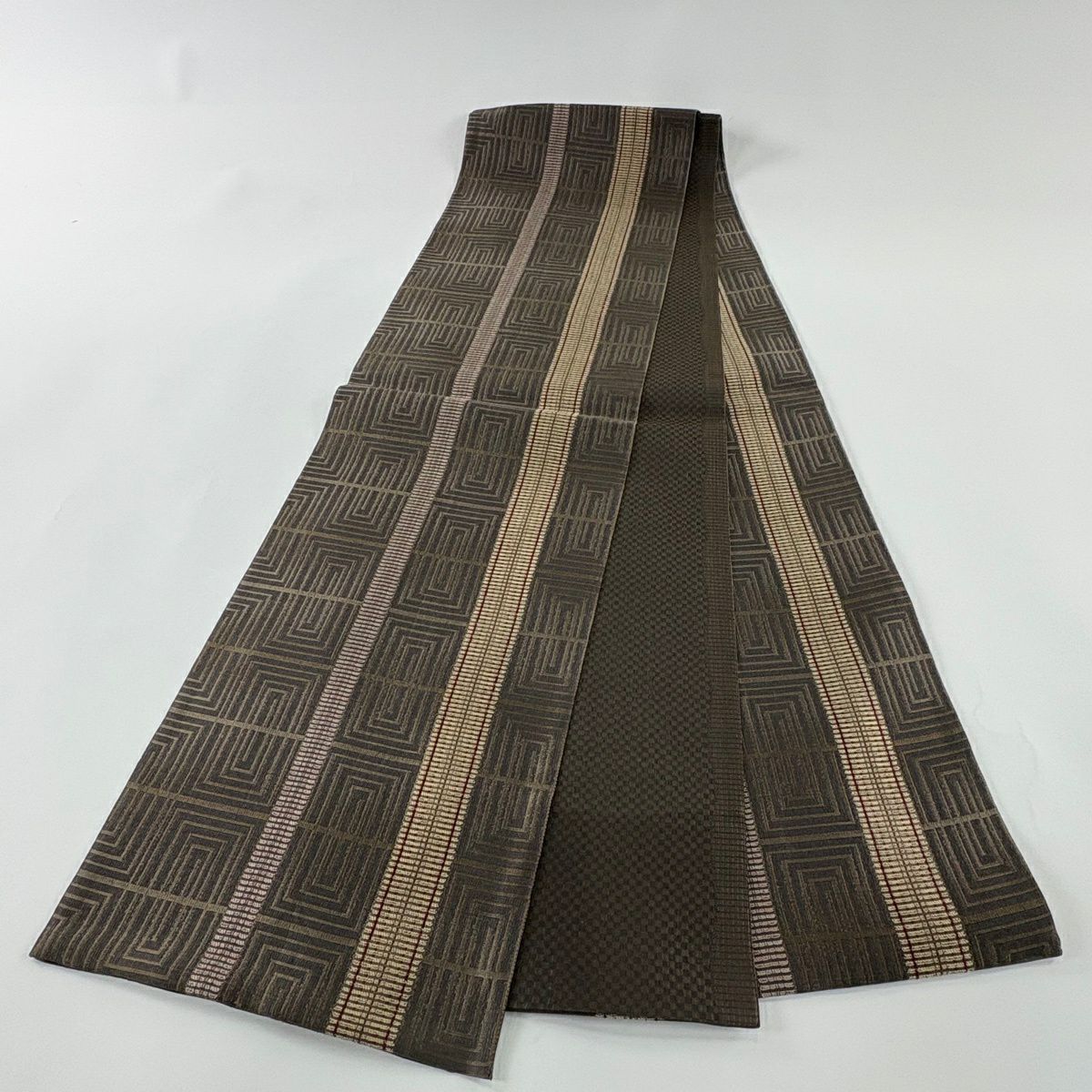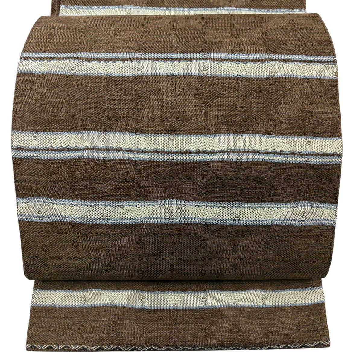 20%OFF 名古屋帯 逸品 夏帯 縞 幾何学模様 焦茶色 正絹 K30