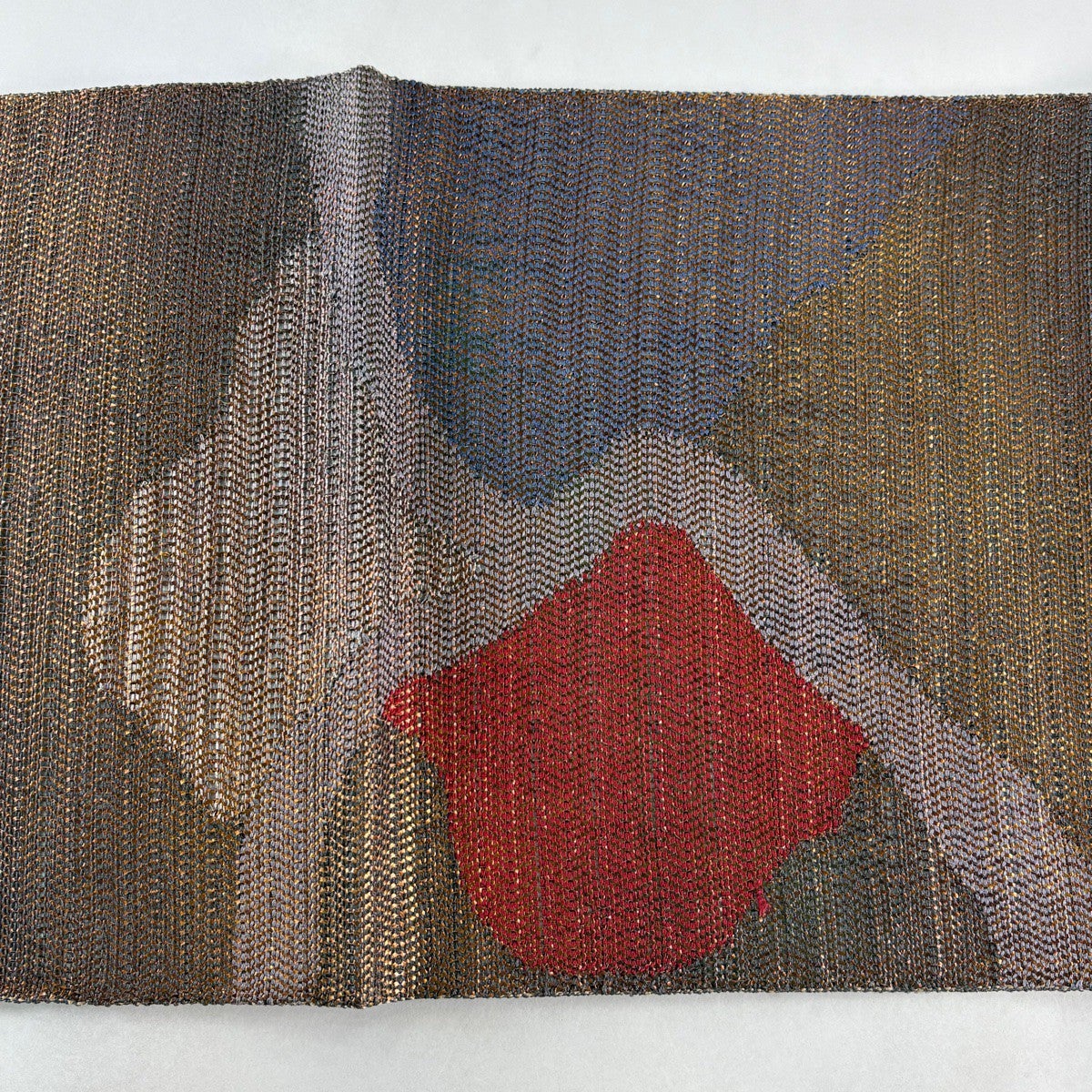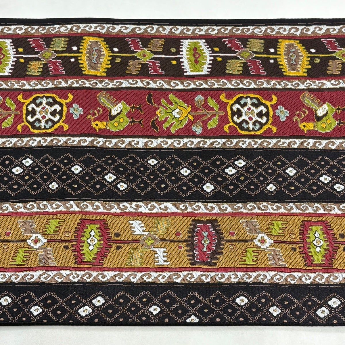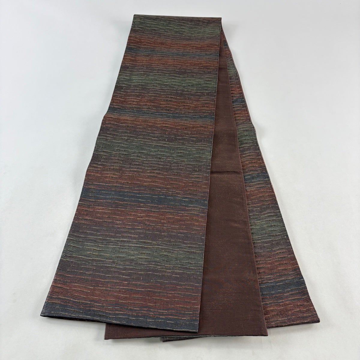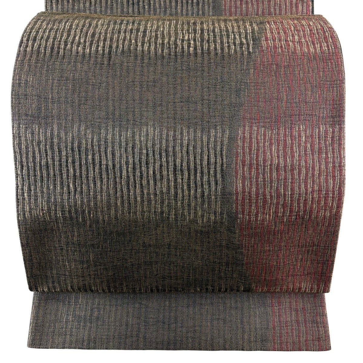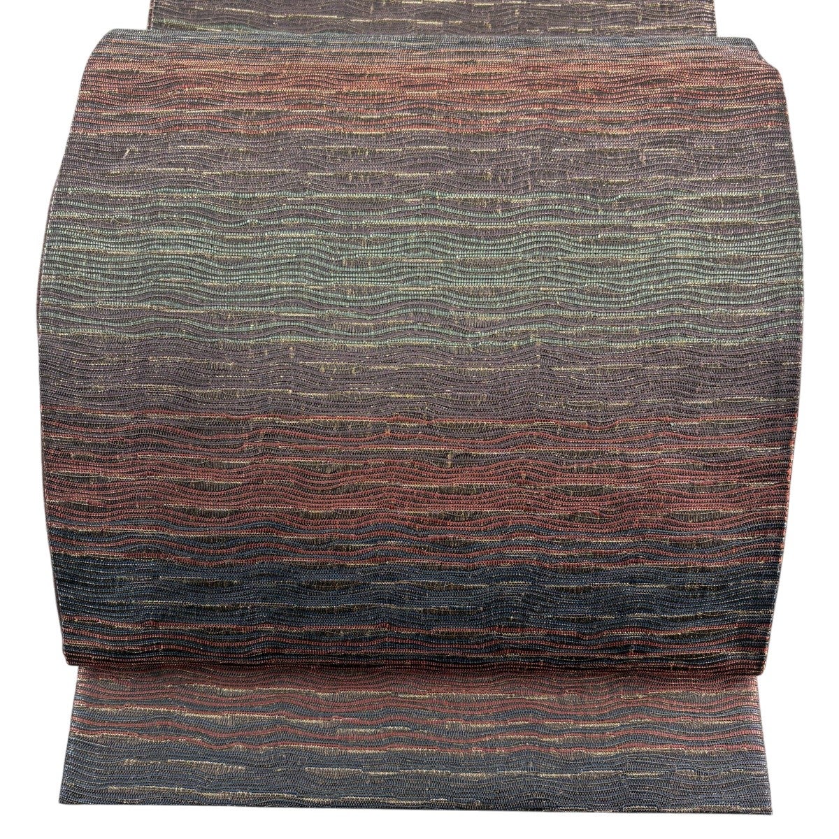 20%OFF 名古屋帯 逸品 夏帯 縞 幾何学模様 焦茶色 正絹 K30