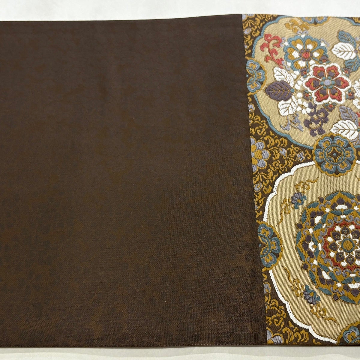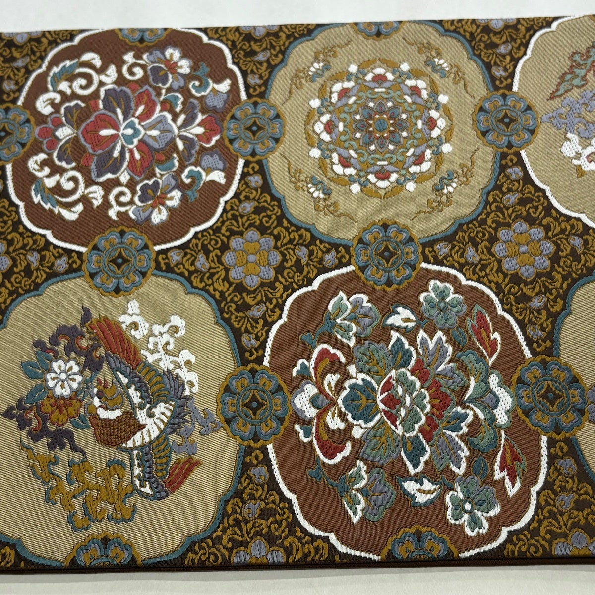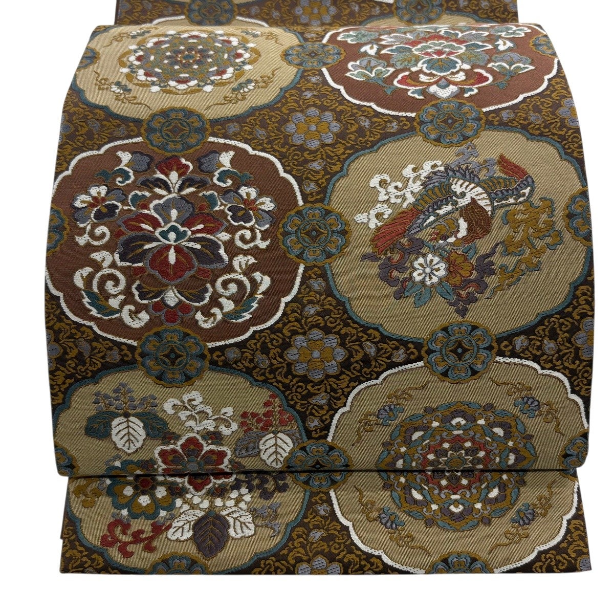 30%OFF 【美品】 名古屋帯 秀品 丸紋 秋草 焦茶色 正絹 K30