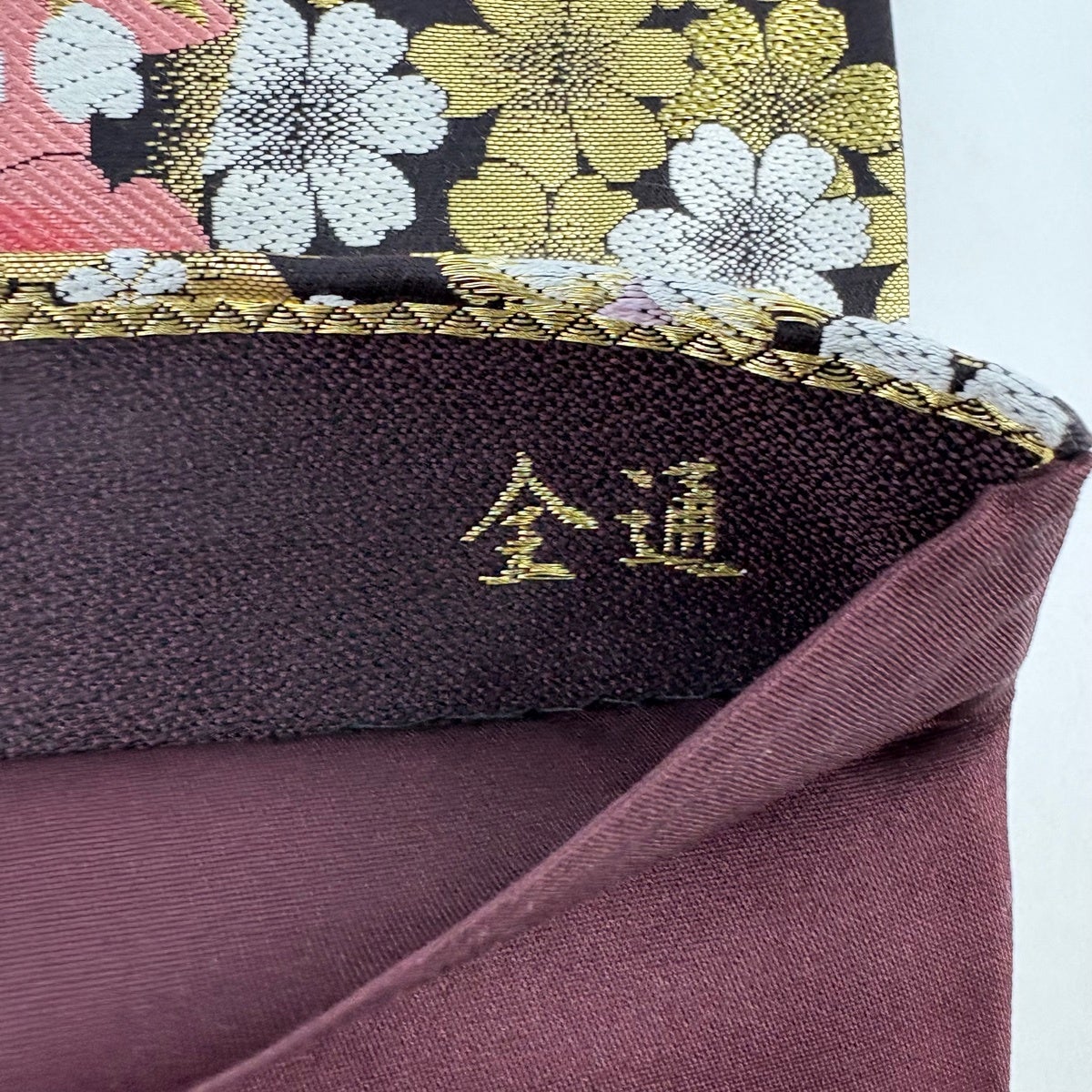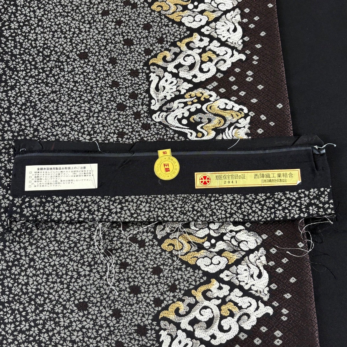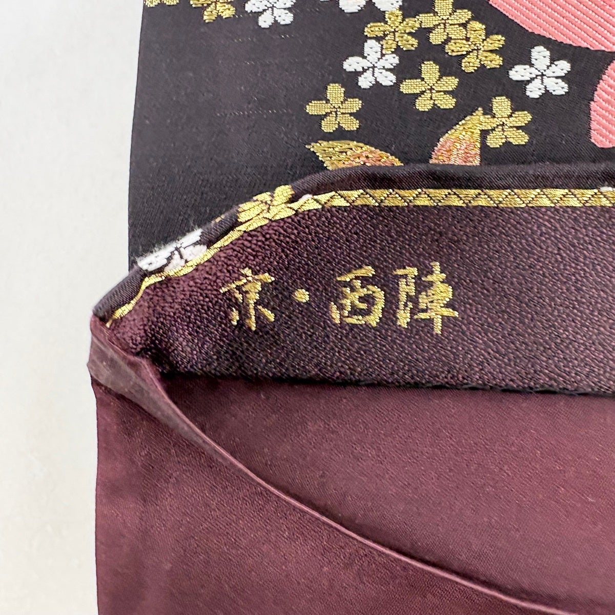 30%OFF 袋帯 名品 証紙あり 雪輪 桜 焦茶色 全通 正絹 K30