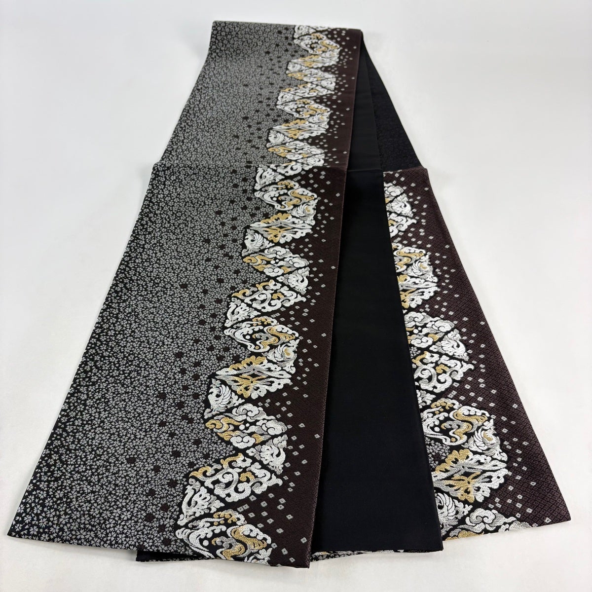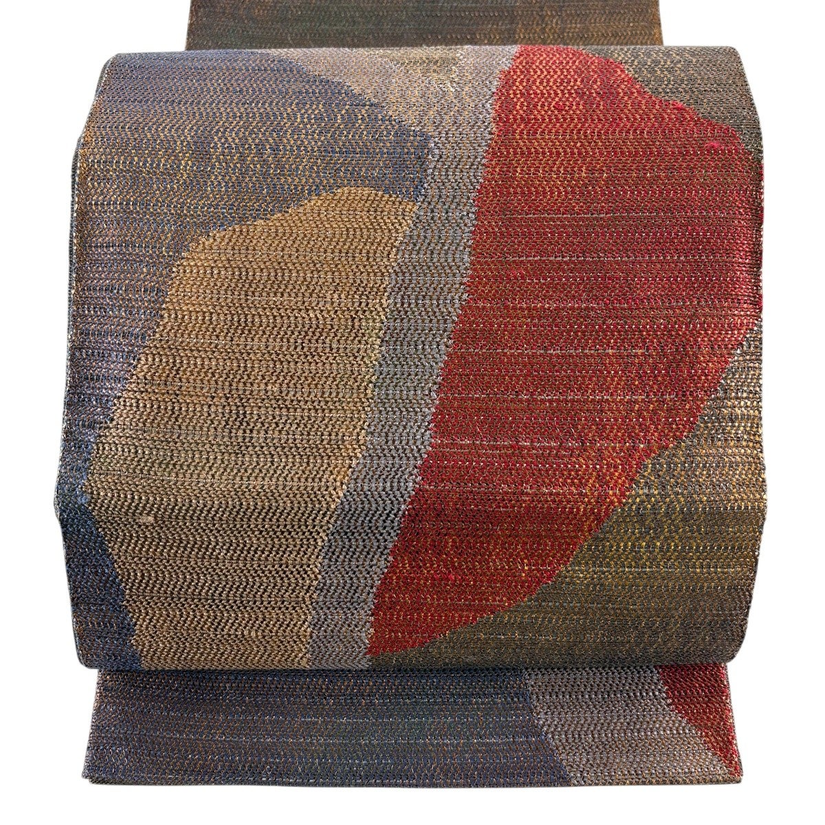 70%OFF 【美品】 袋帯 秀品 霞 箔 焦茶色 六通 正絹 K70