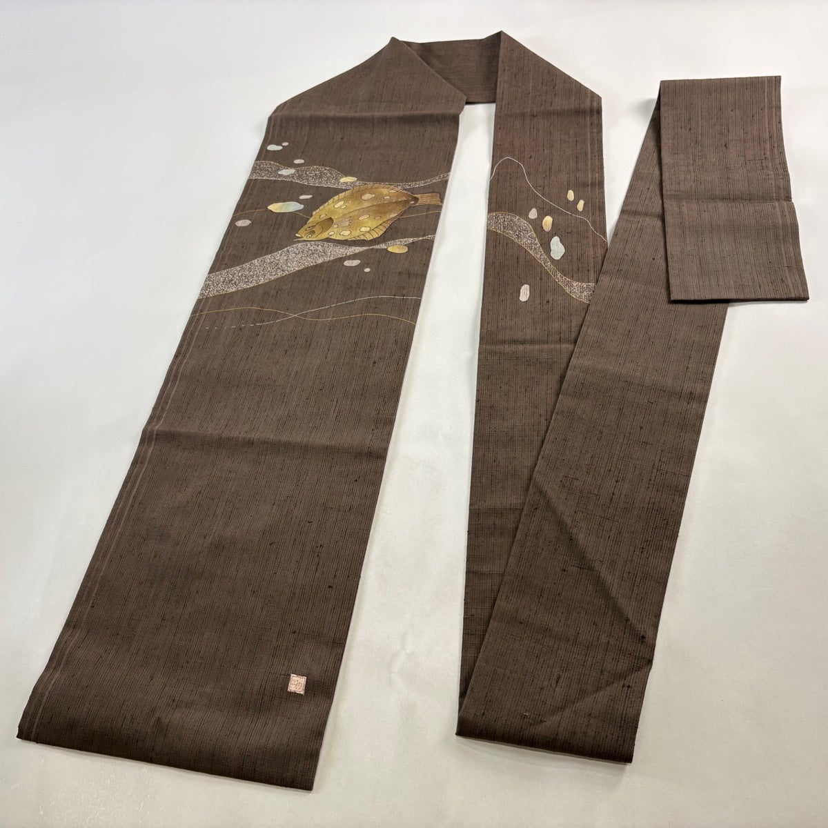 50%OFF 【美品】 名古屋帯 秀品 桔梗 萩 焦茶色 正絹 K50