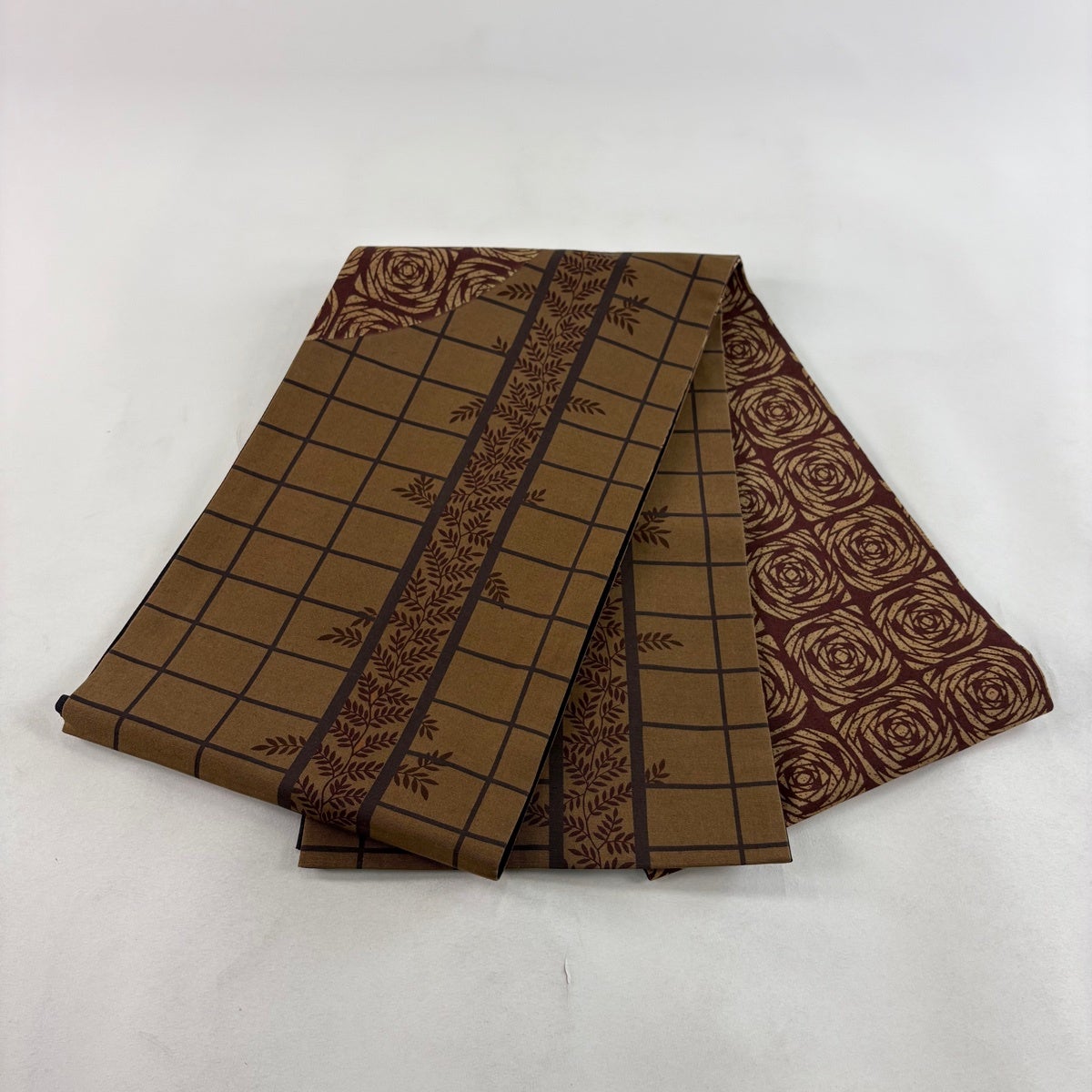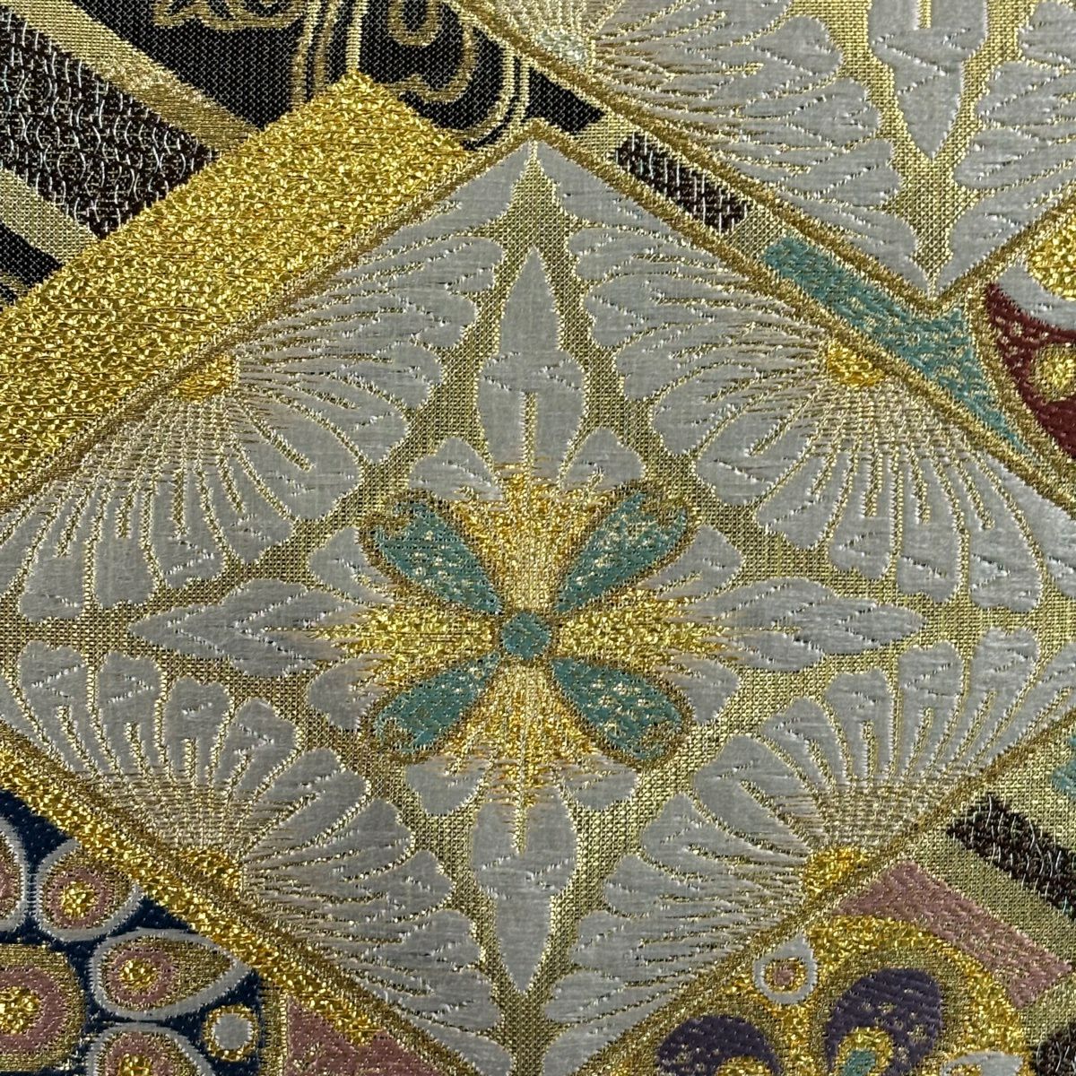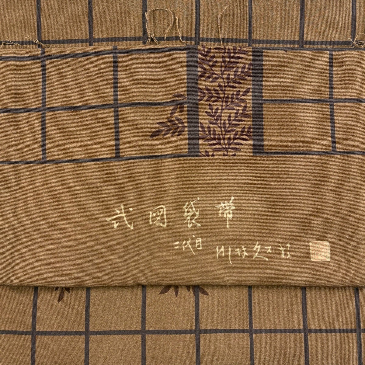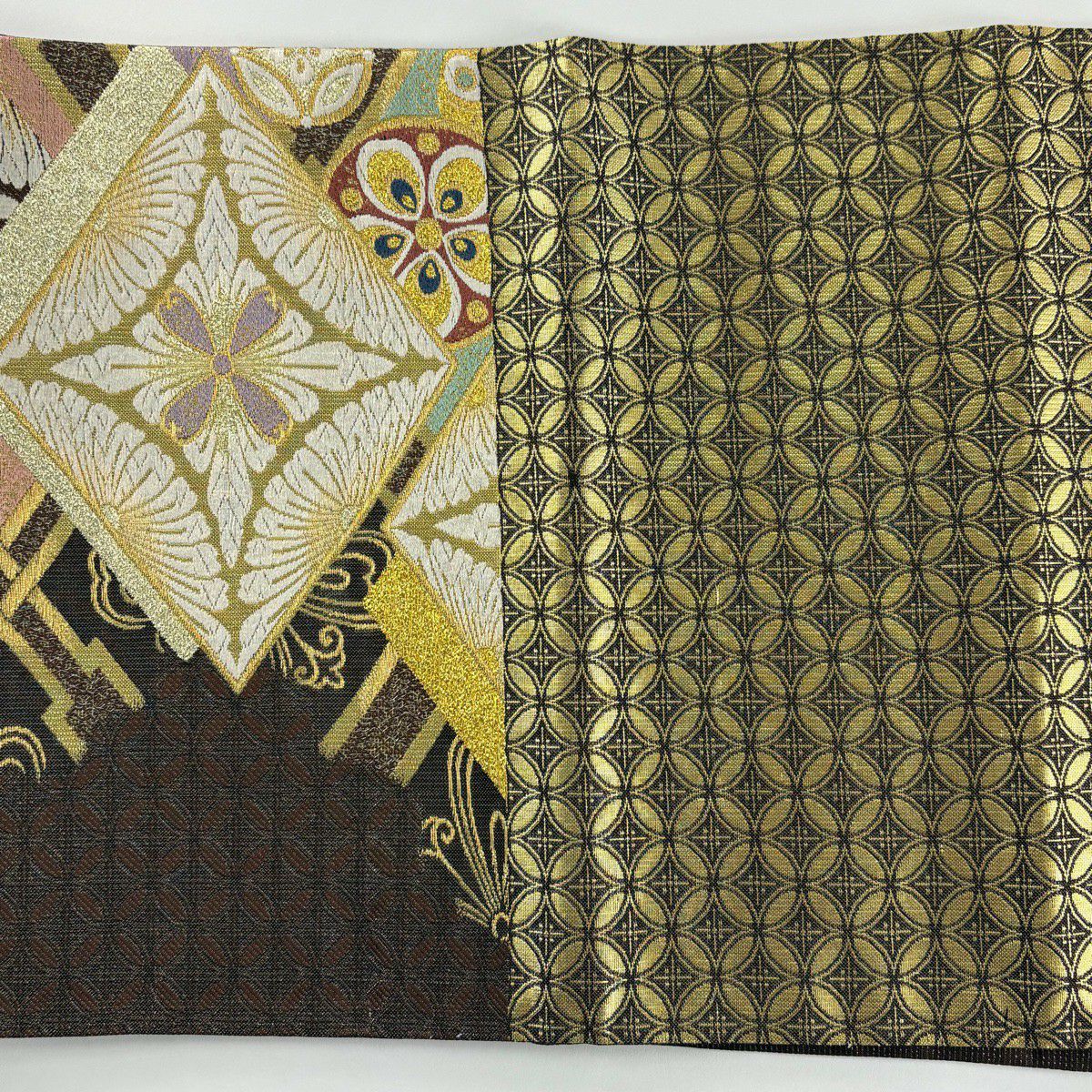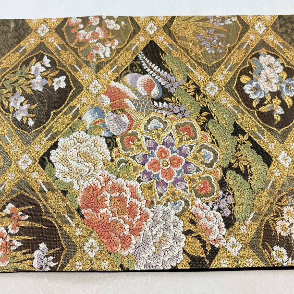 50%OFF 袋帯 秀品 梅竹 格子 箔 焦茶色 六通 正絹 K50
