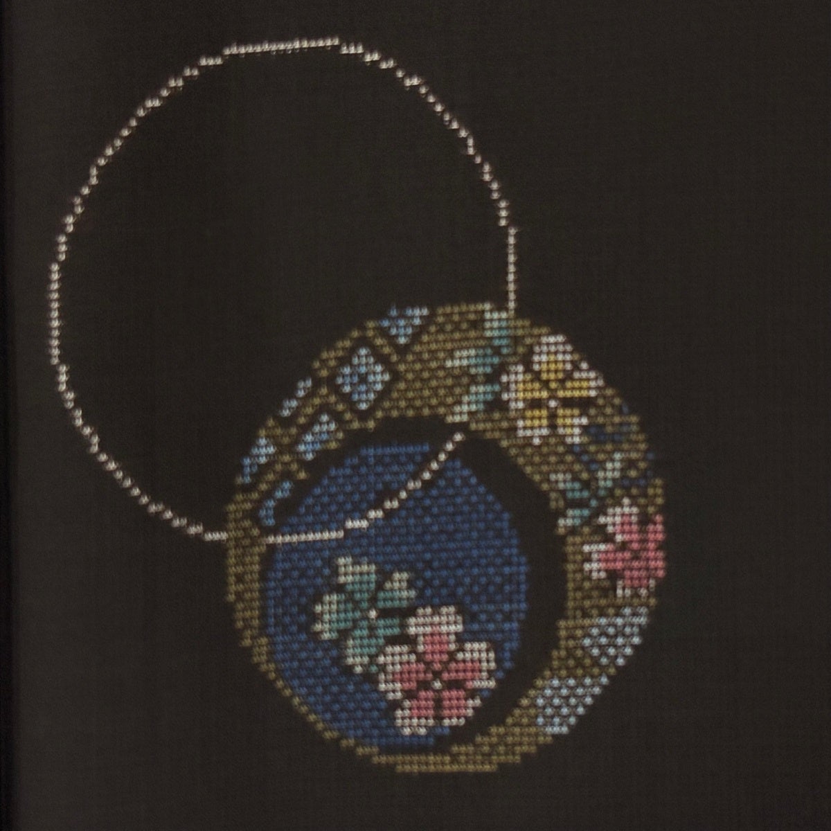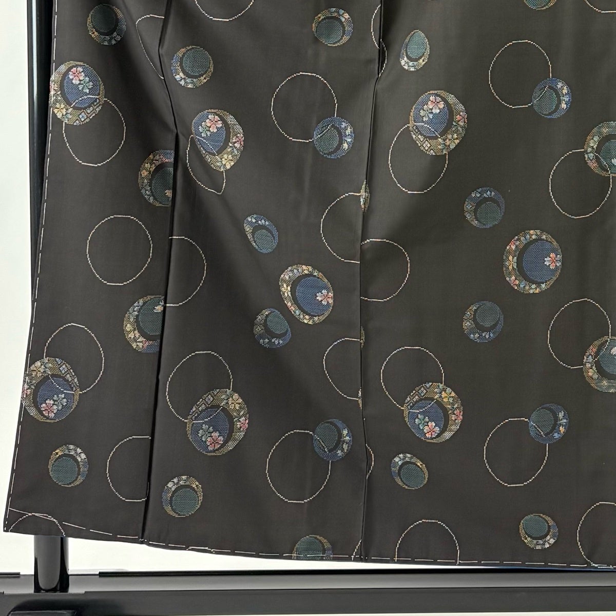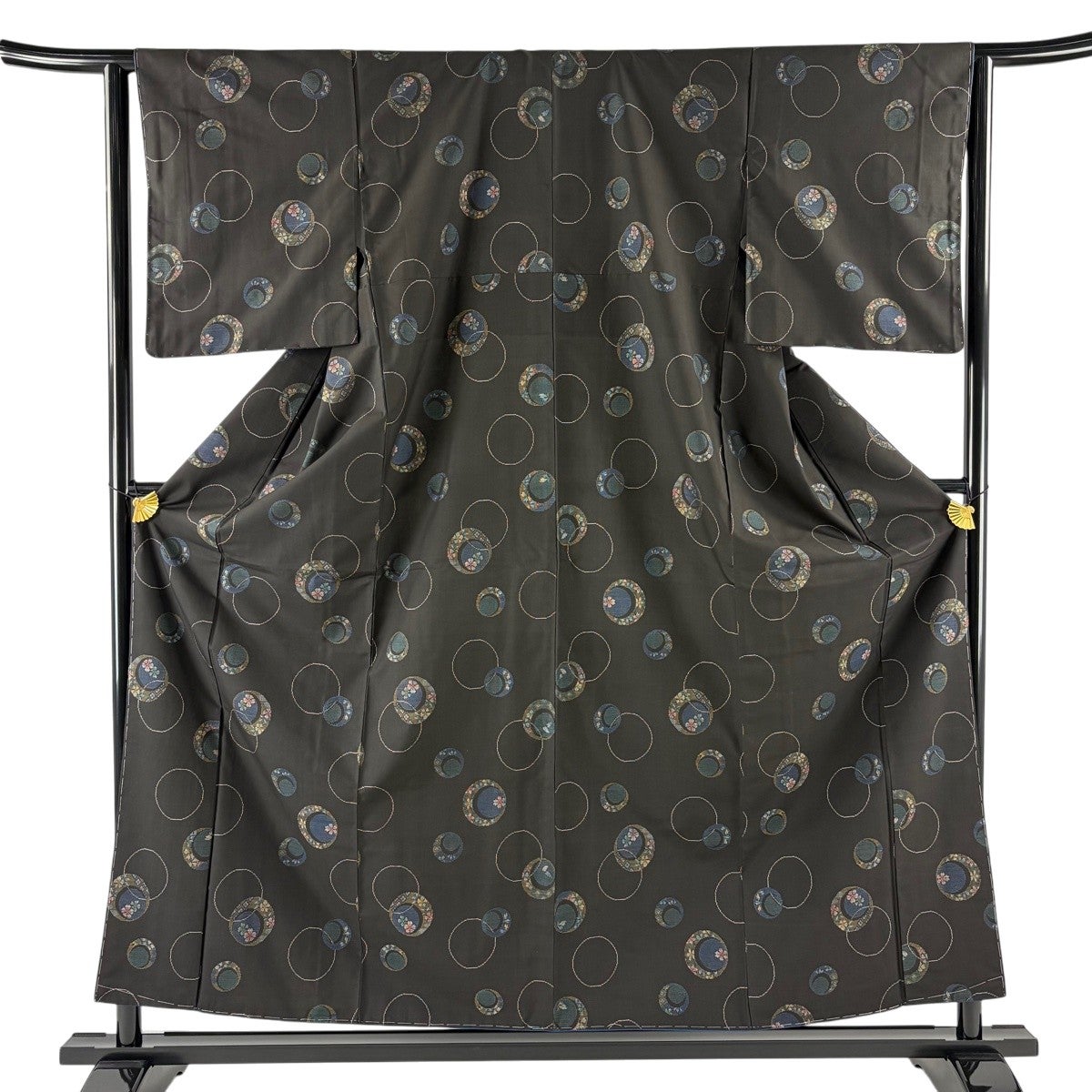 紬 身丈156cm 裄丈63.5cm S 袷 花 丸文 焦茶色 正絹 秀品