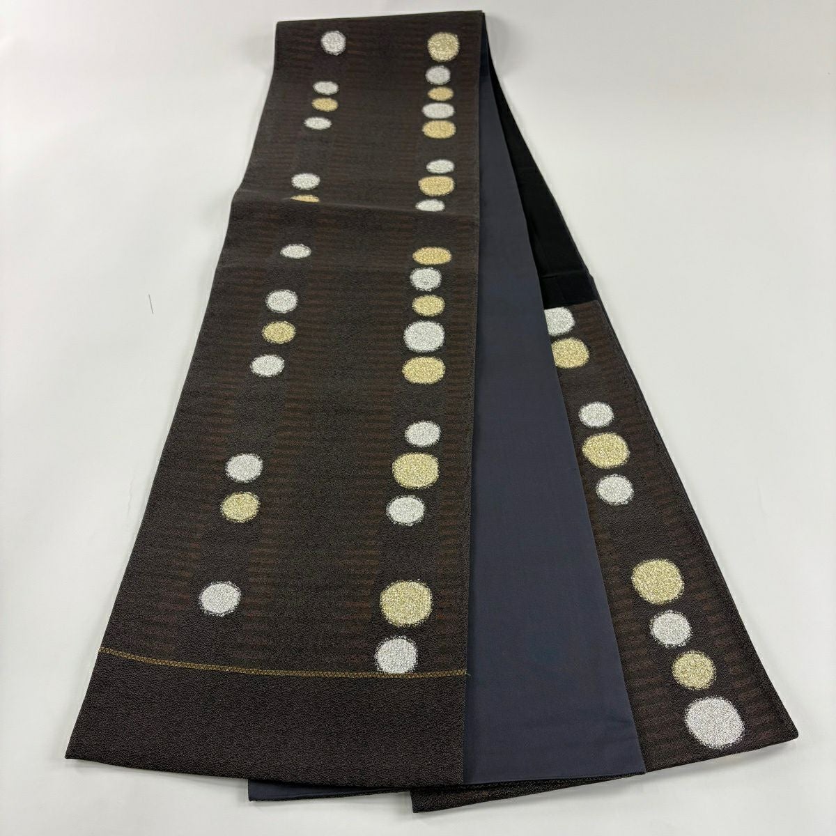 30%OFF 【美品】 袋帯 秀品 斜縞 箔 焦茶色 六通 正絹 K30