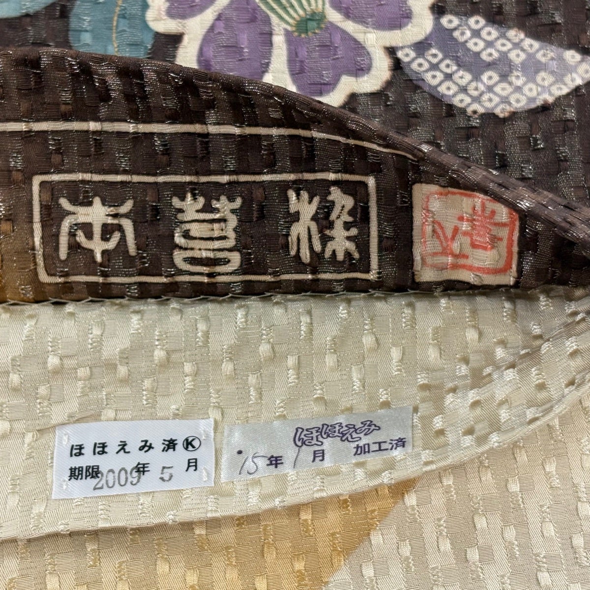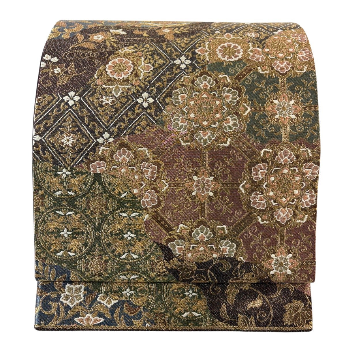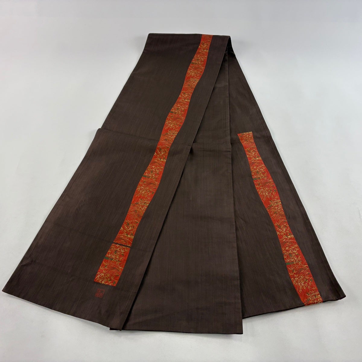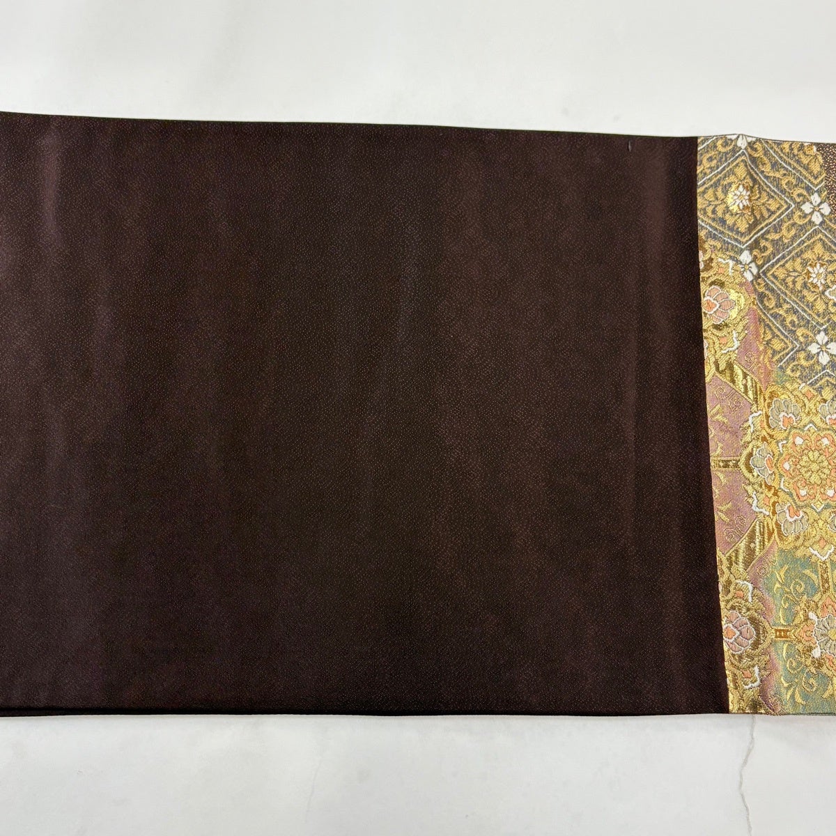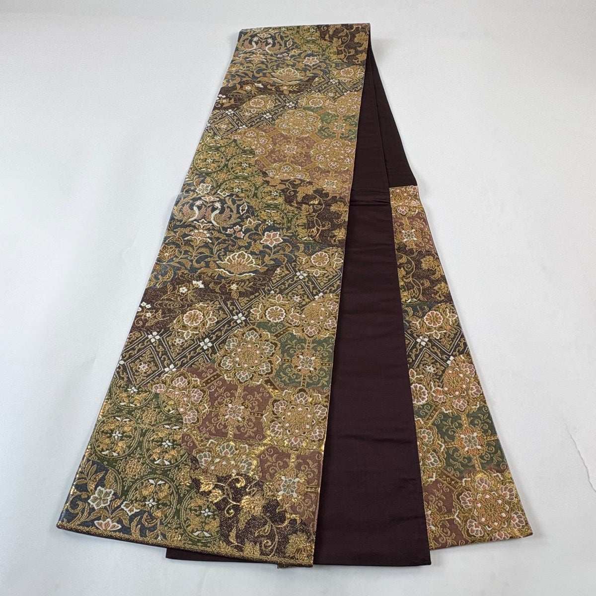 50%OFF 【美品】 袋帯 秀品 草花 幾何学 焦茶色 全通 正絹 K50