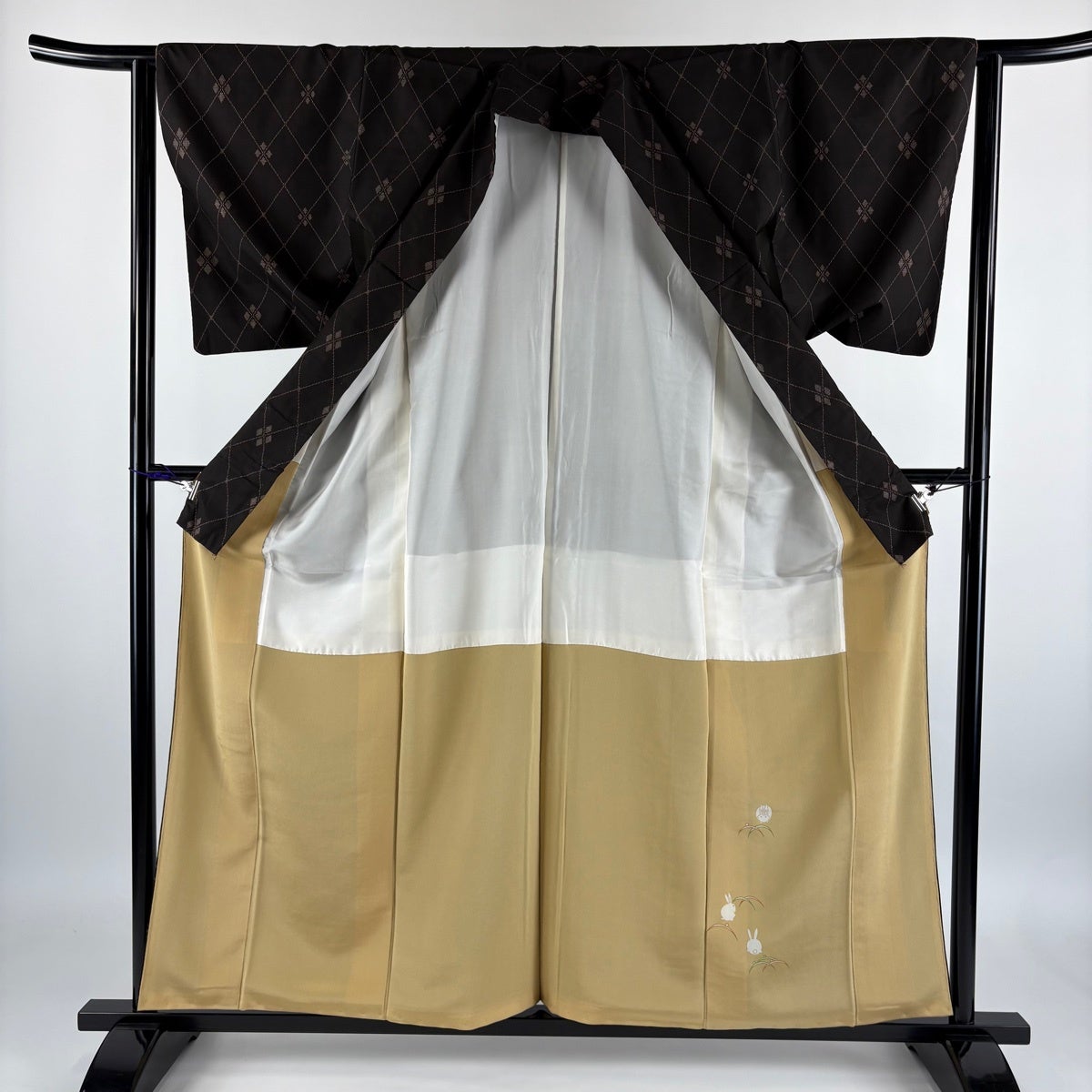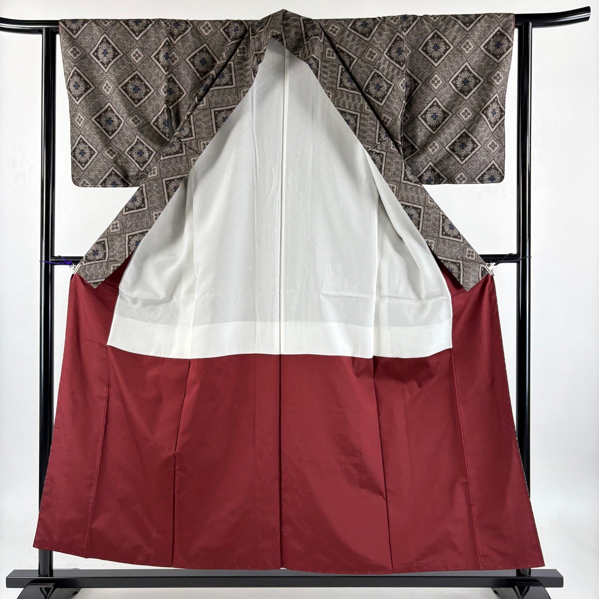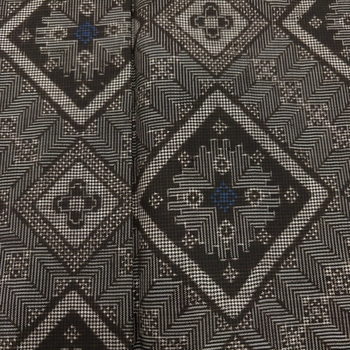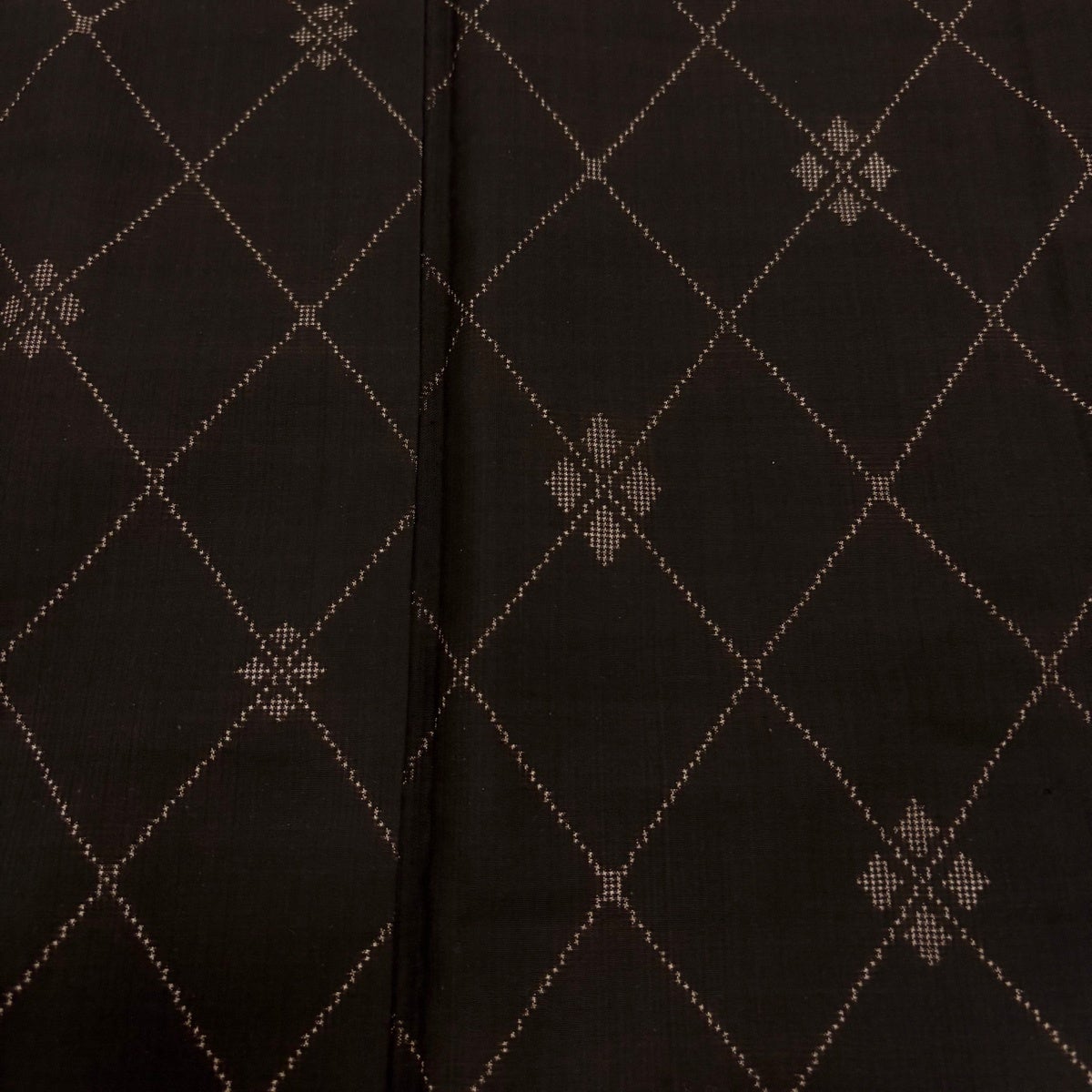 紬 身丈157.5cm 裄丈62.5cm S 袷 斜め格子 菱 焦茶色 正絹 秀品