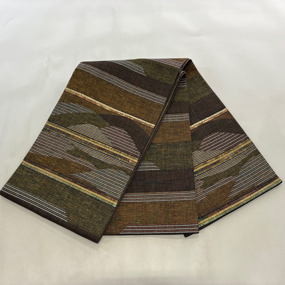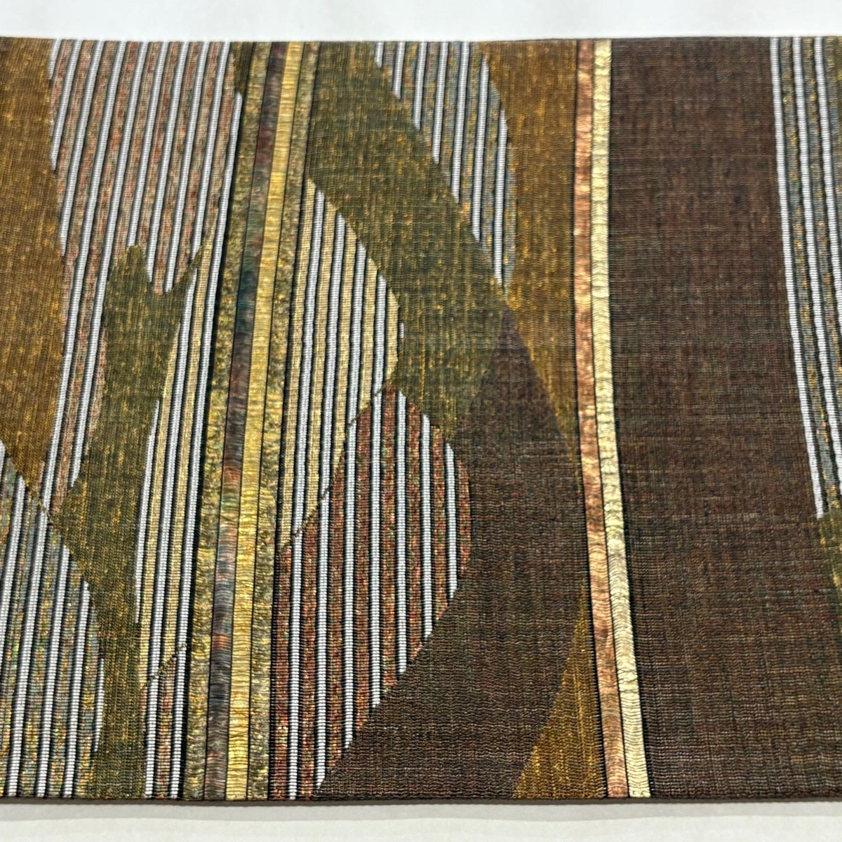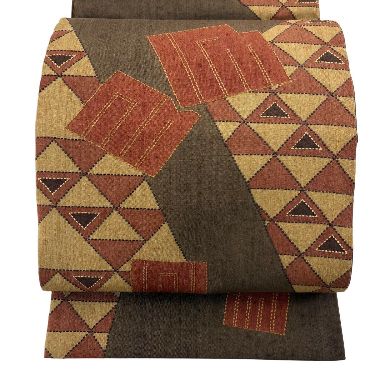 50%OFF 【美品】 袋帯 秀品 横段 幾何学 焦茶色 全通 正絹 K50