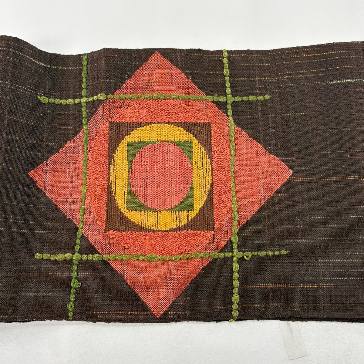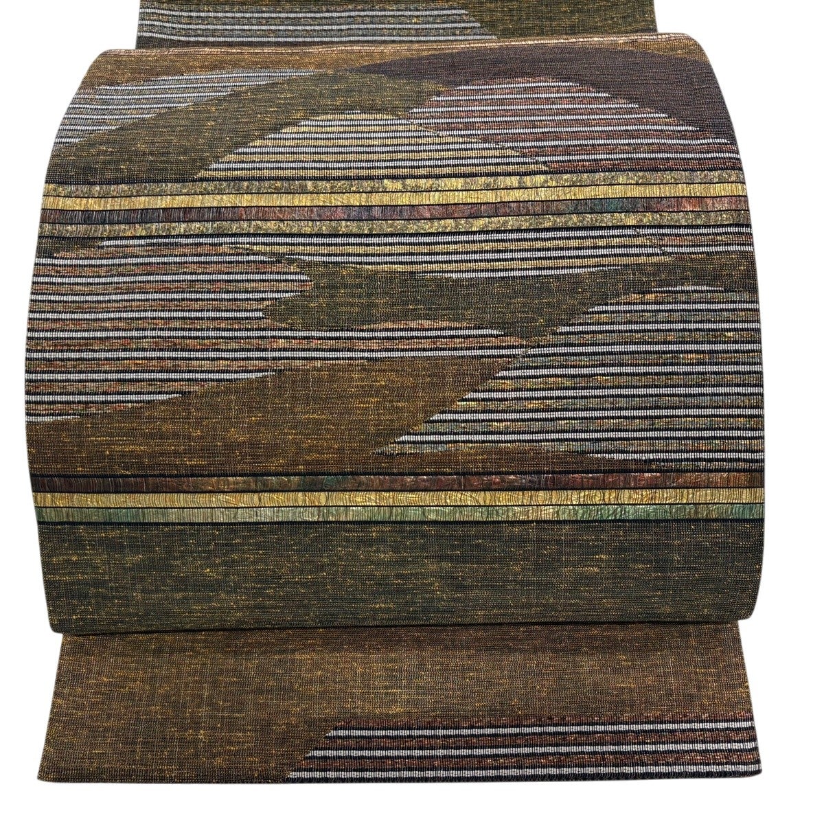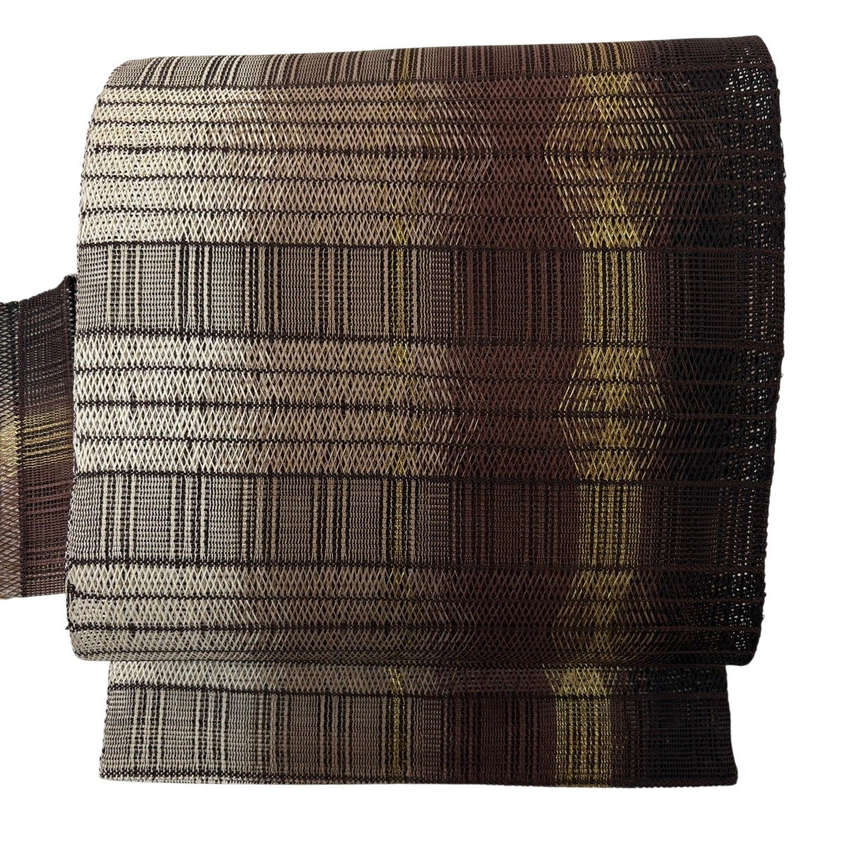50%OFF 【美品】 袋帯 秀品 横段 幾何学 焦茶色 全通 正絹 K50