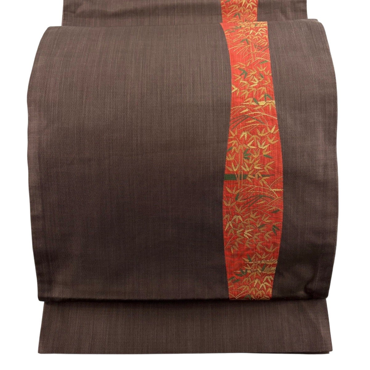 70%OFF 【美品】 名古屋帯 秀品 紬地 葉 霞 焦茶色 正絹 K70