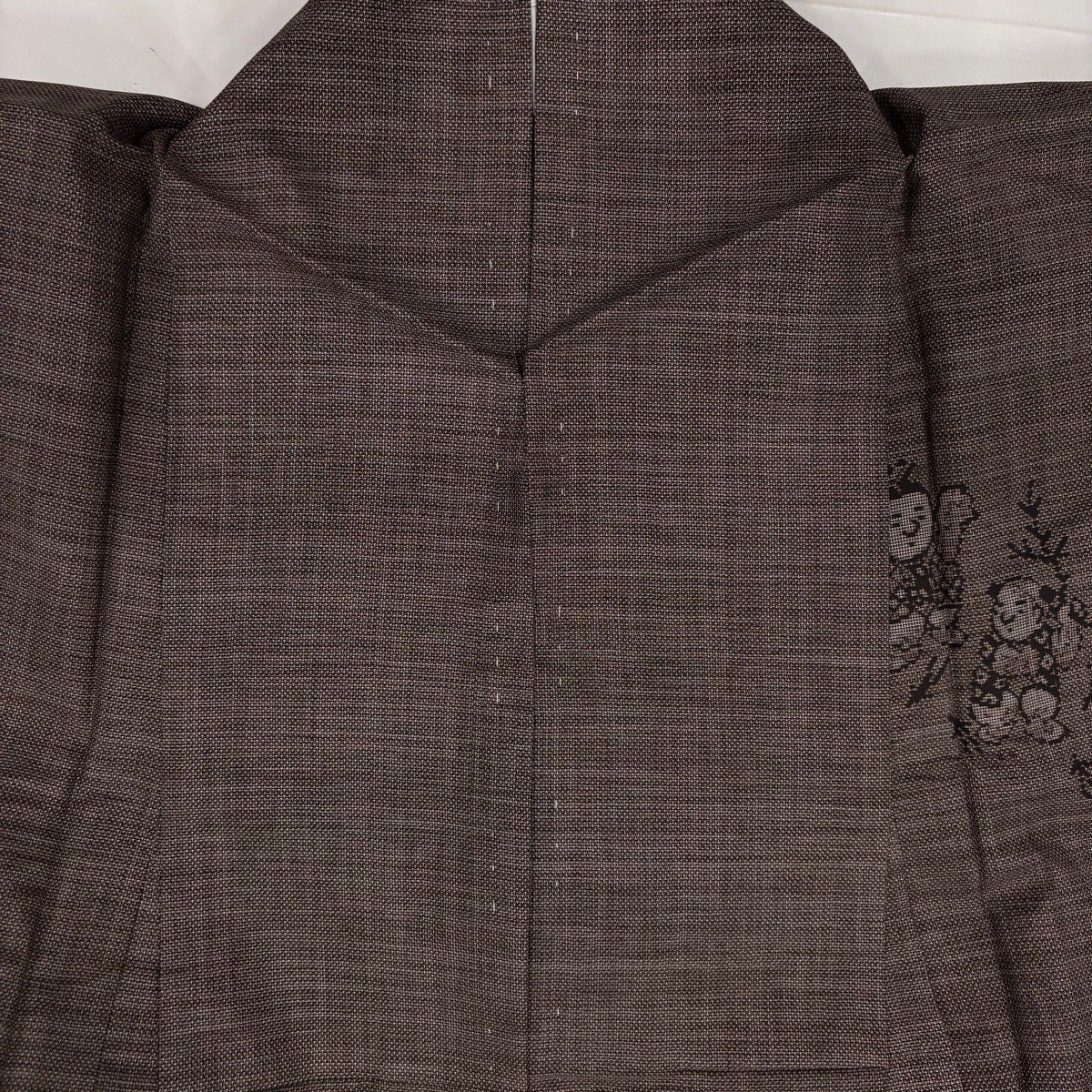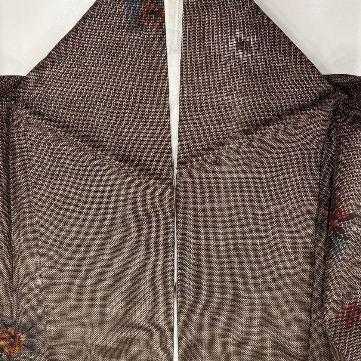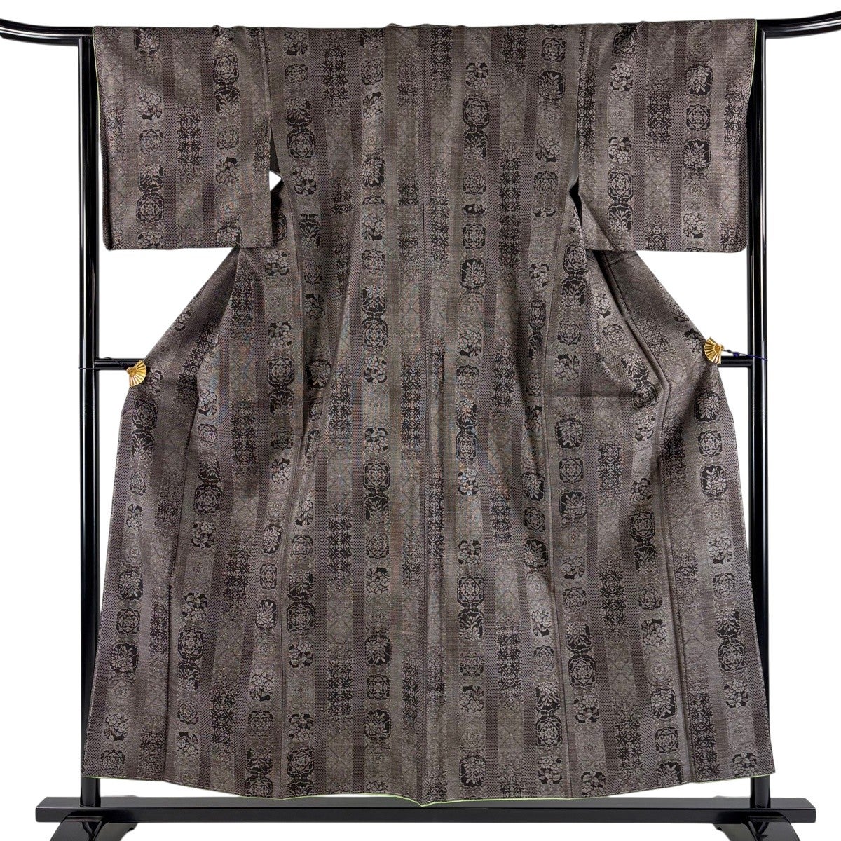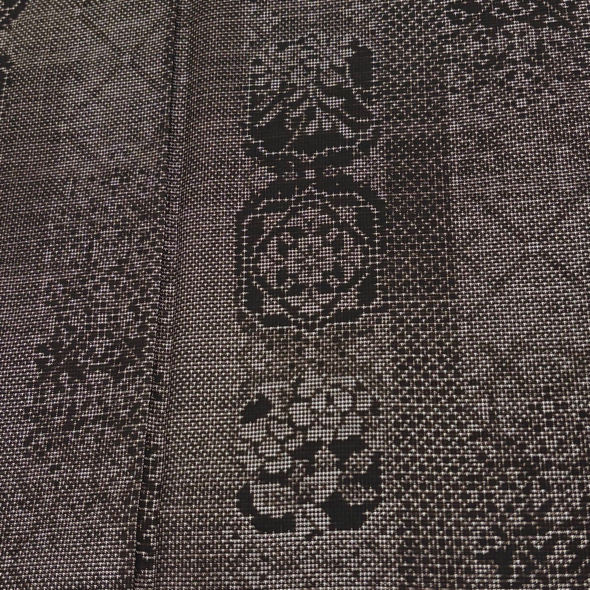お召 身丈165cm 裄丈67.5cm L 袷 縦縞 十字絣 焦茶色 正絹 逸品
