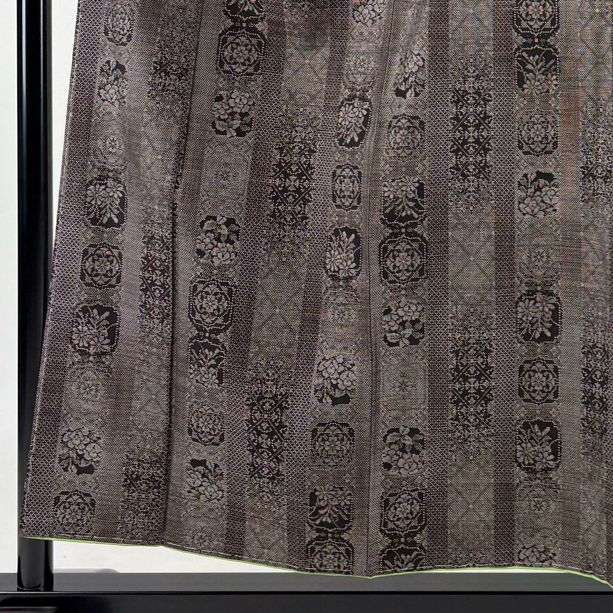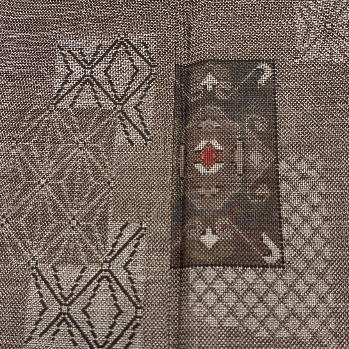 50%OFF 【美品】 名古屋帯 名品 格子 幾何学模様 焦茶色 正絹 K50