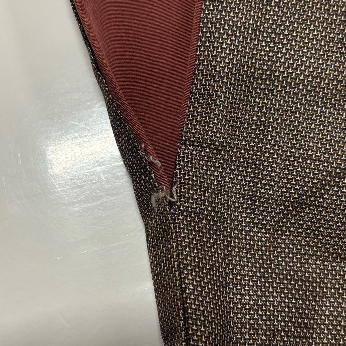 【美品】 紬 身丈156cm 裄丈62cm S 袷 童 松葉 焦茶色 正絹 秀品