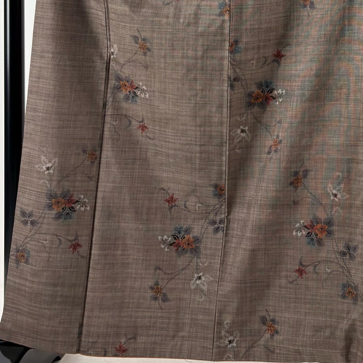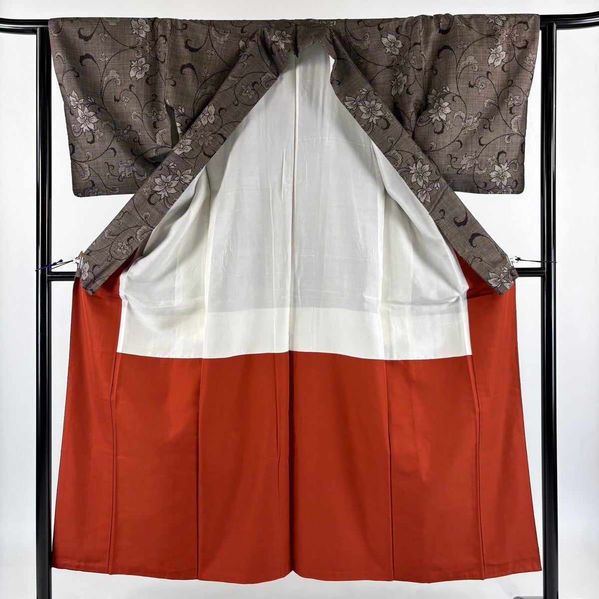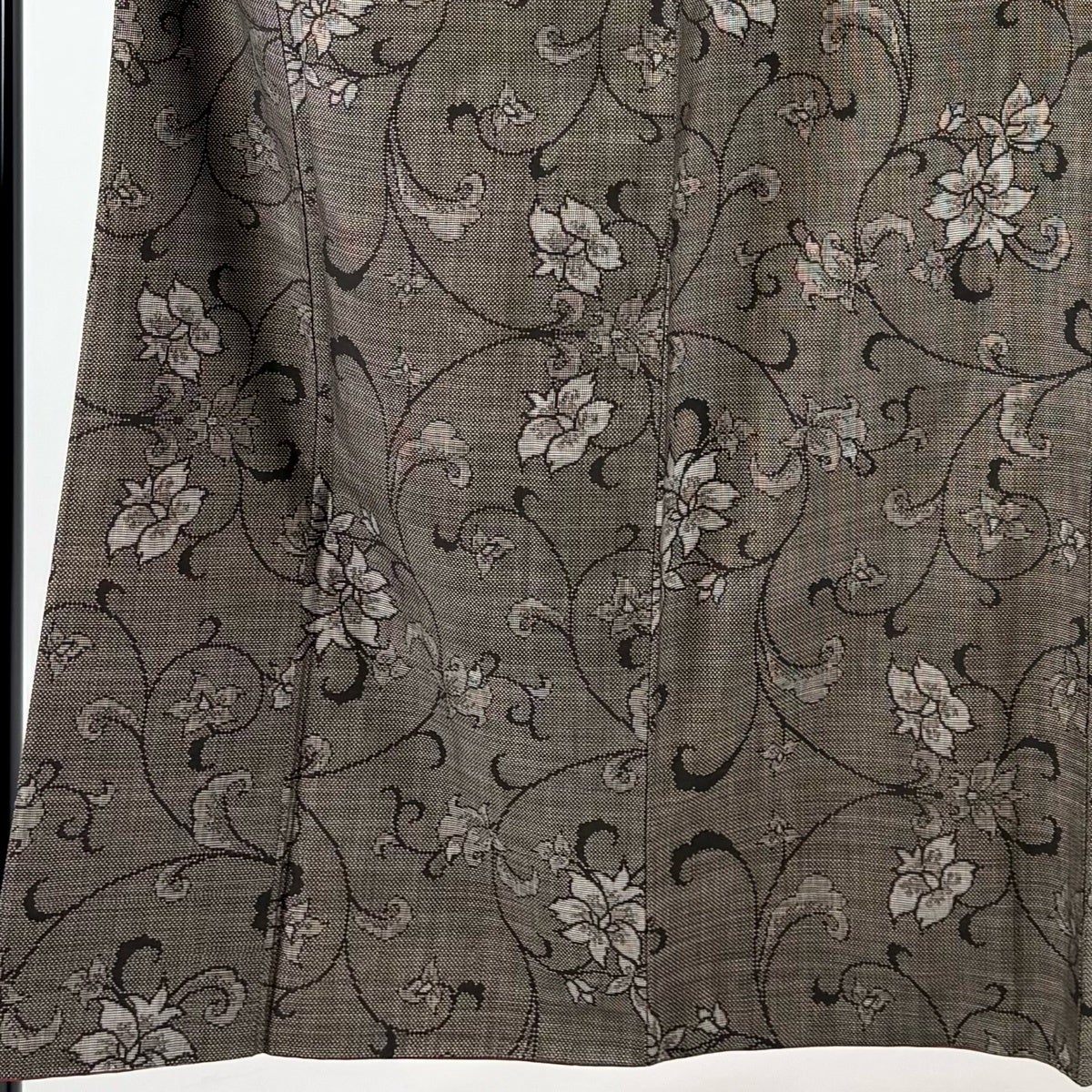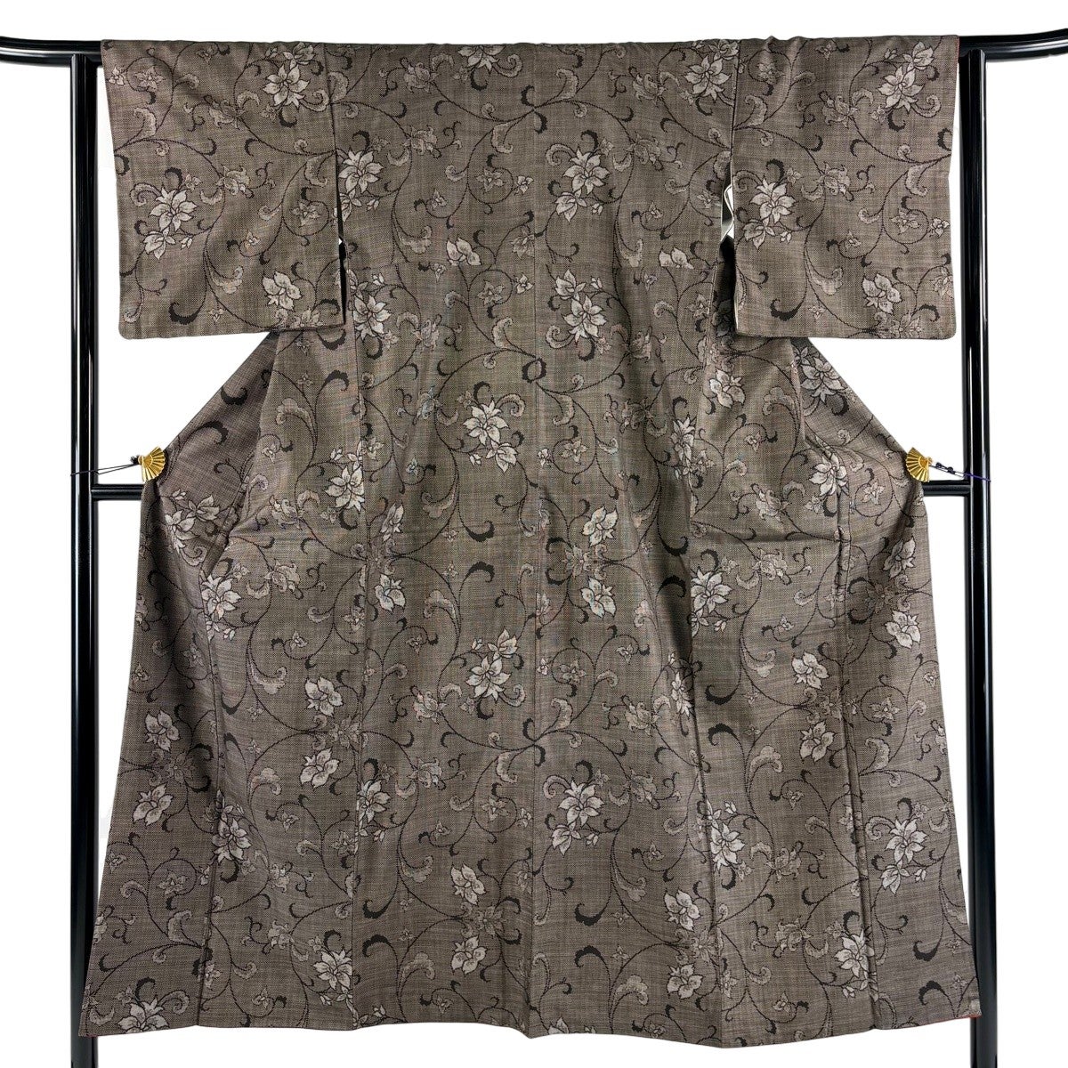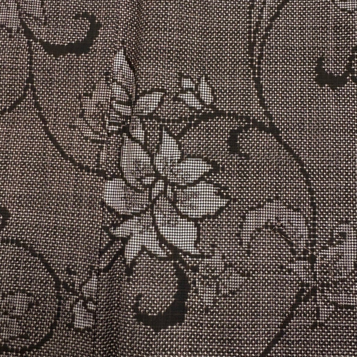 【美品】 紬 身丈151cm 裄丈63cm S 袷 花唐草 焦茶色 正絹 秀品