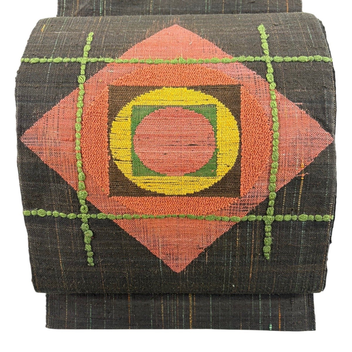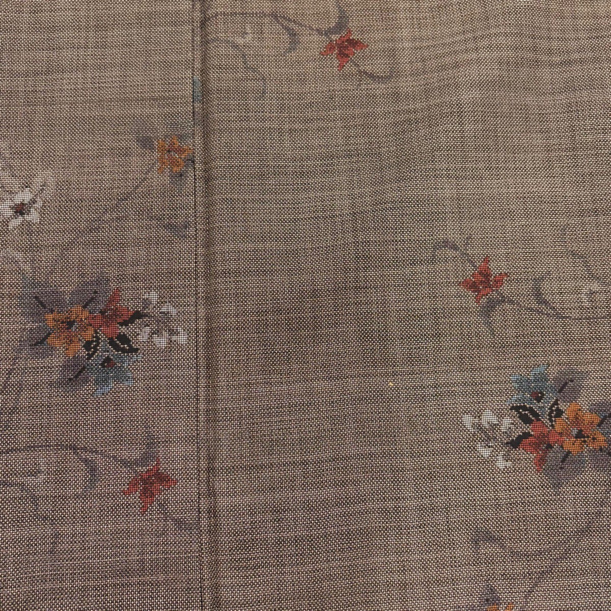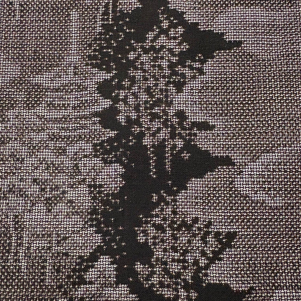 30%OFF 名古屋帯 秀品 紬地 草花 幾何学 刺繍 焦茶色 正絹 K30