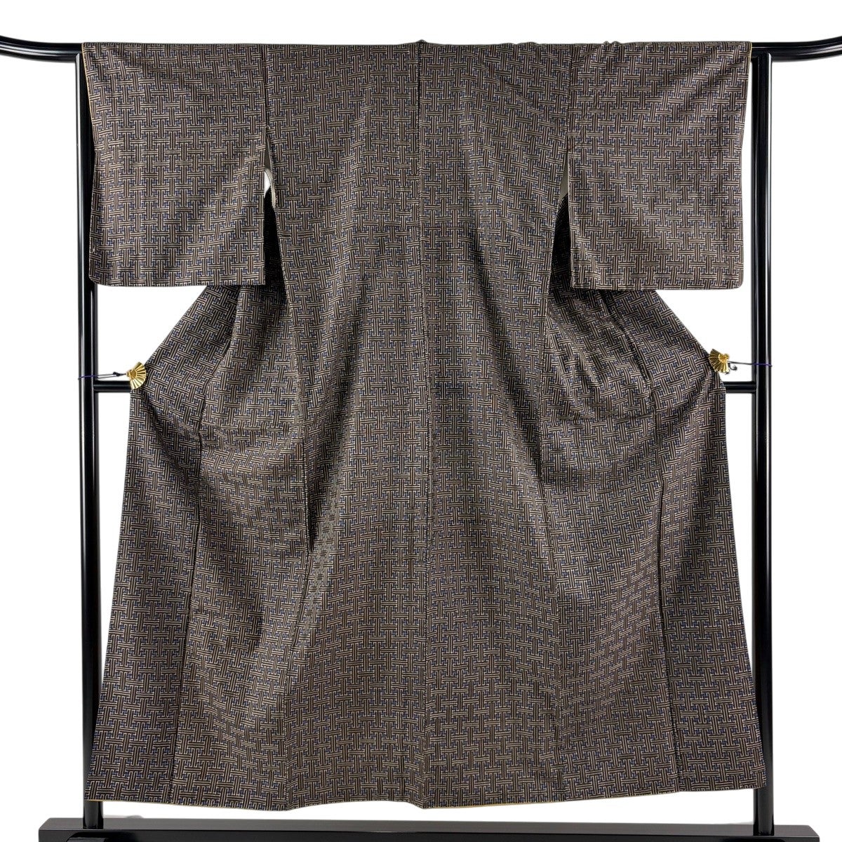 【美品】 紬 身丈160cm 裄丈64cm M 袷 幾何学 焦茶色 正絹 秀品